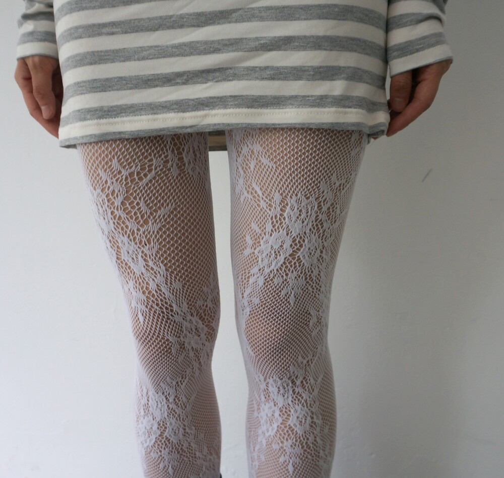 - 플라워 패턴의 컬러 메쉬 스타킹.