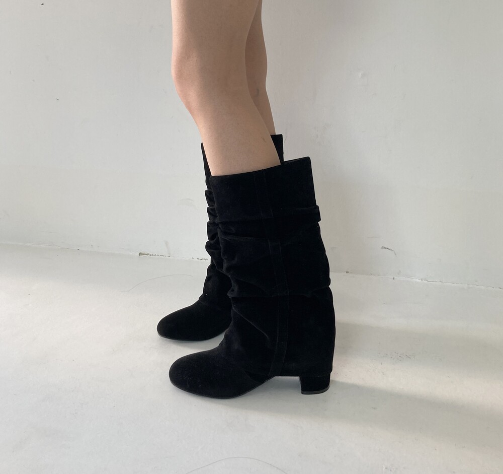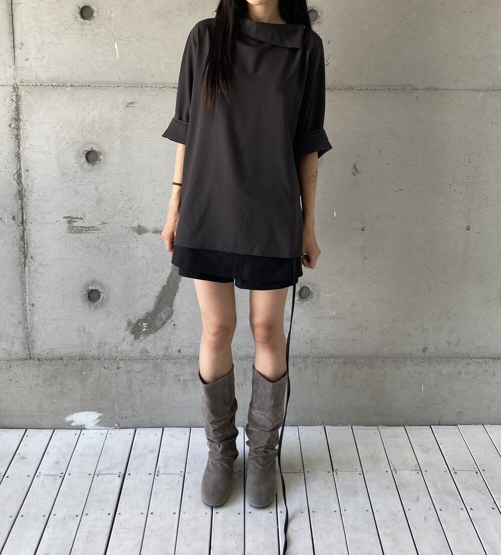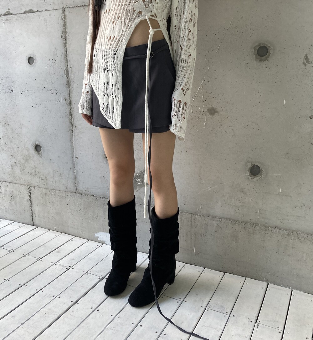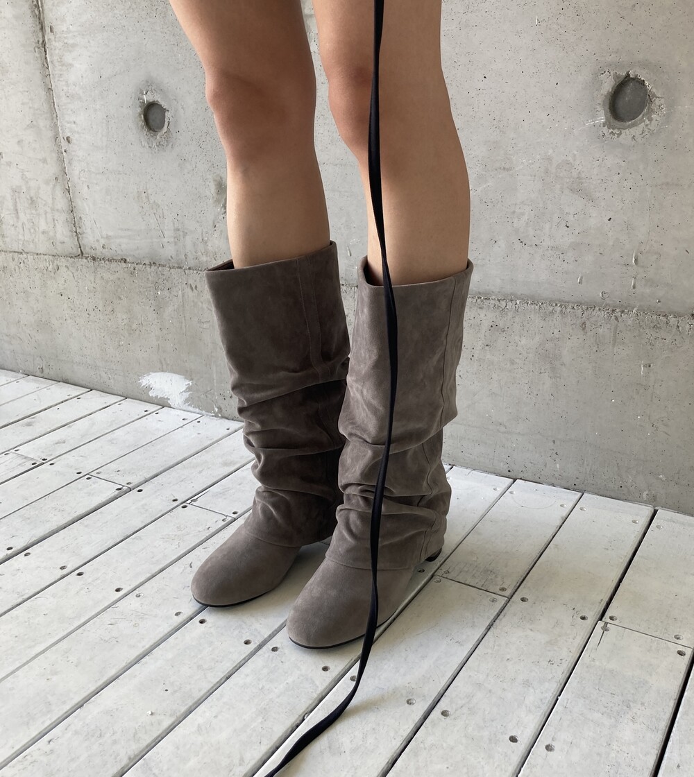 - 흘러내리는 듯한 주름, 굽을 가리는 밑단 디테일.
