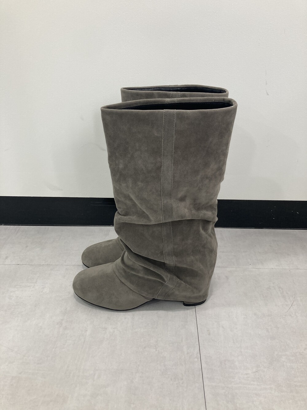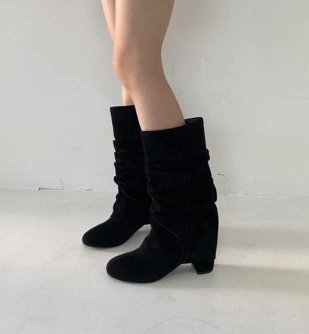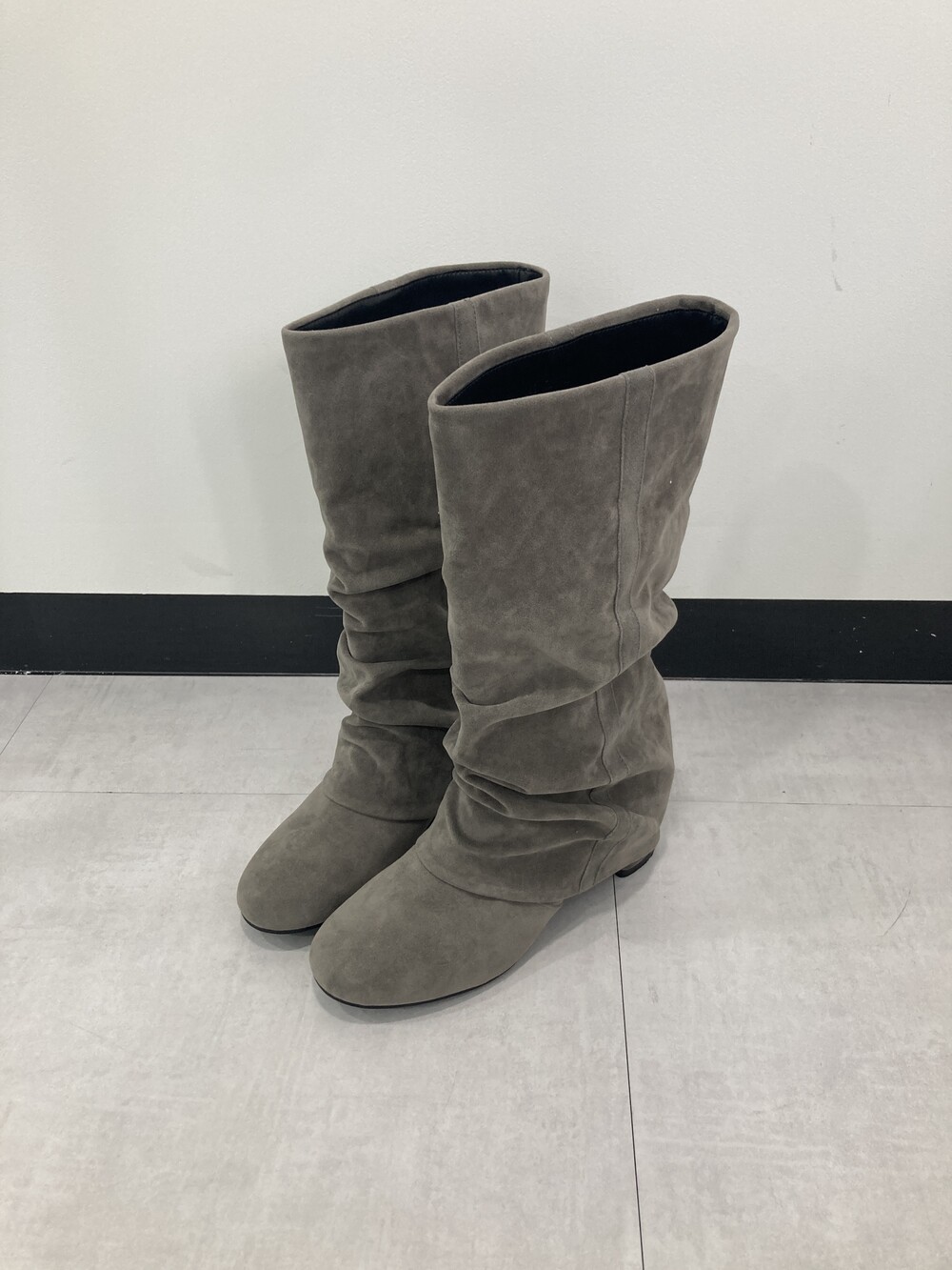 - 흘러내리는 듯한 주름, 굽을 가리는 밑단 디테일.