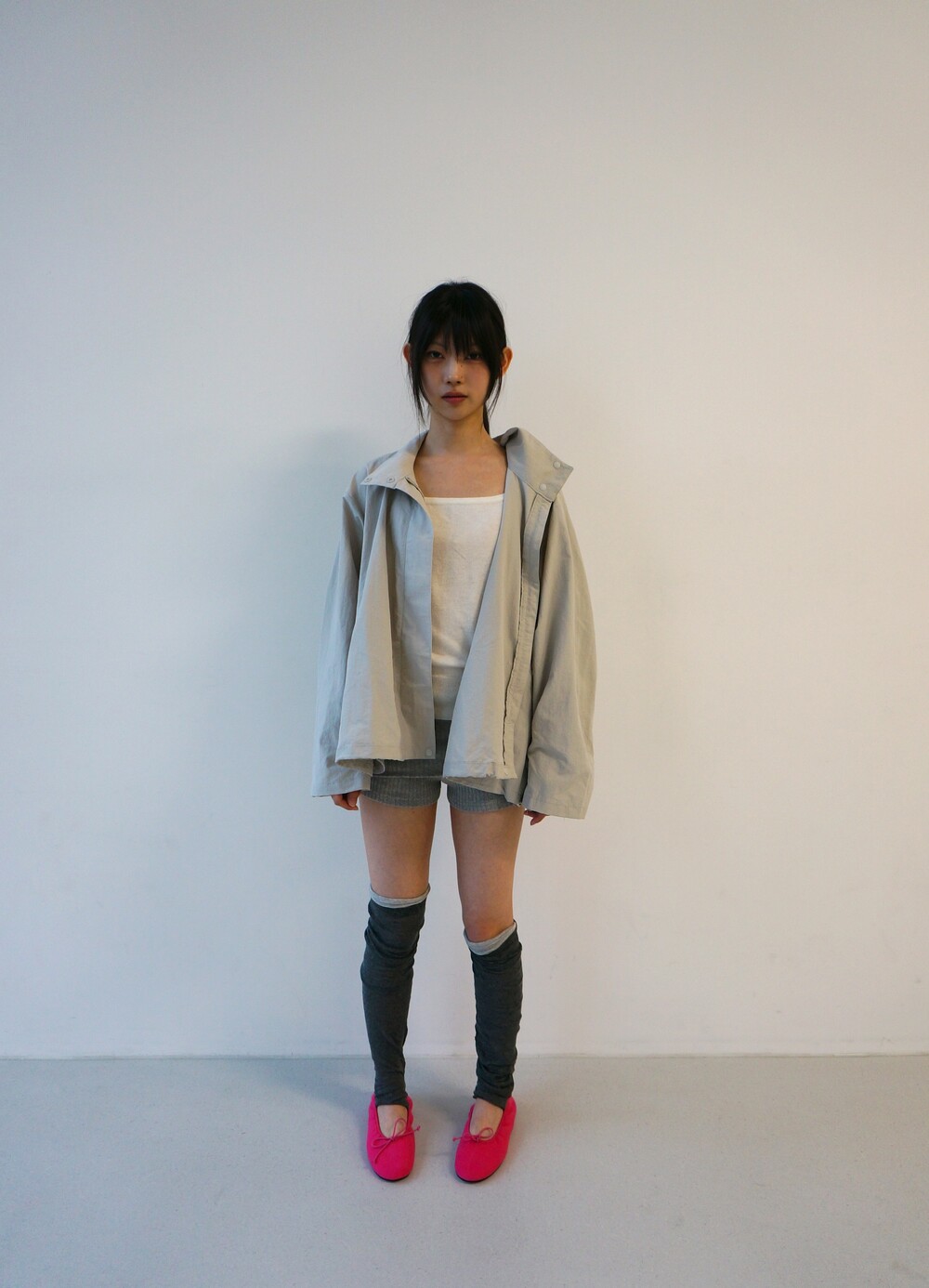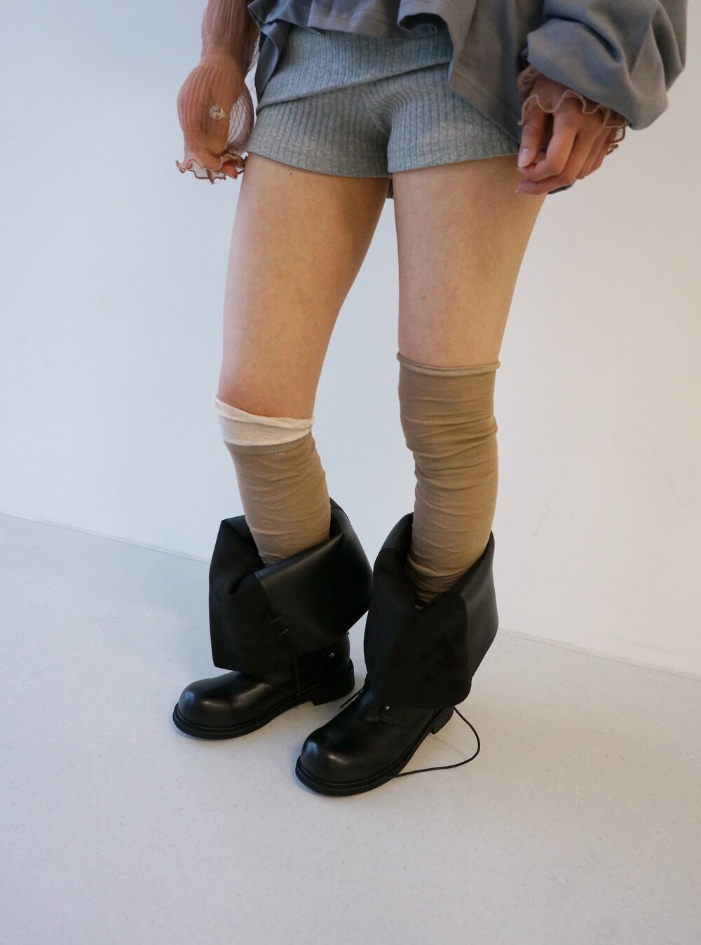 - 배색 디테일의 레그워머.