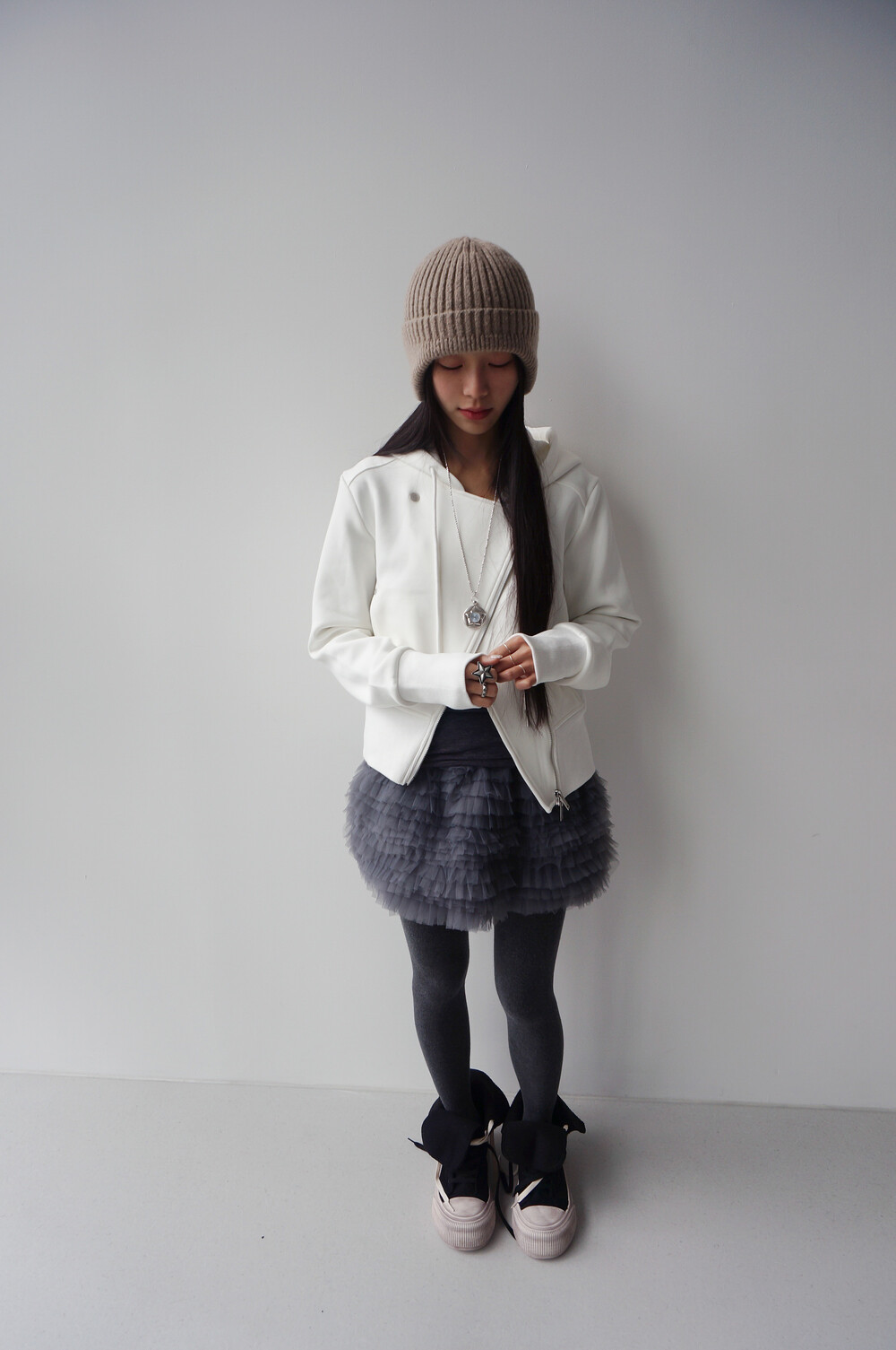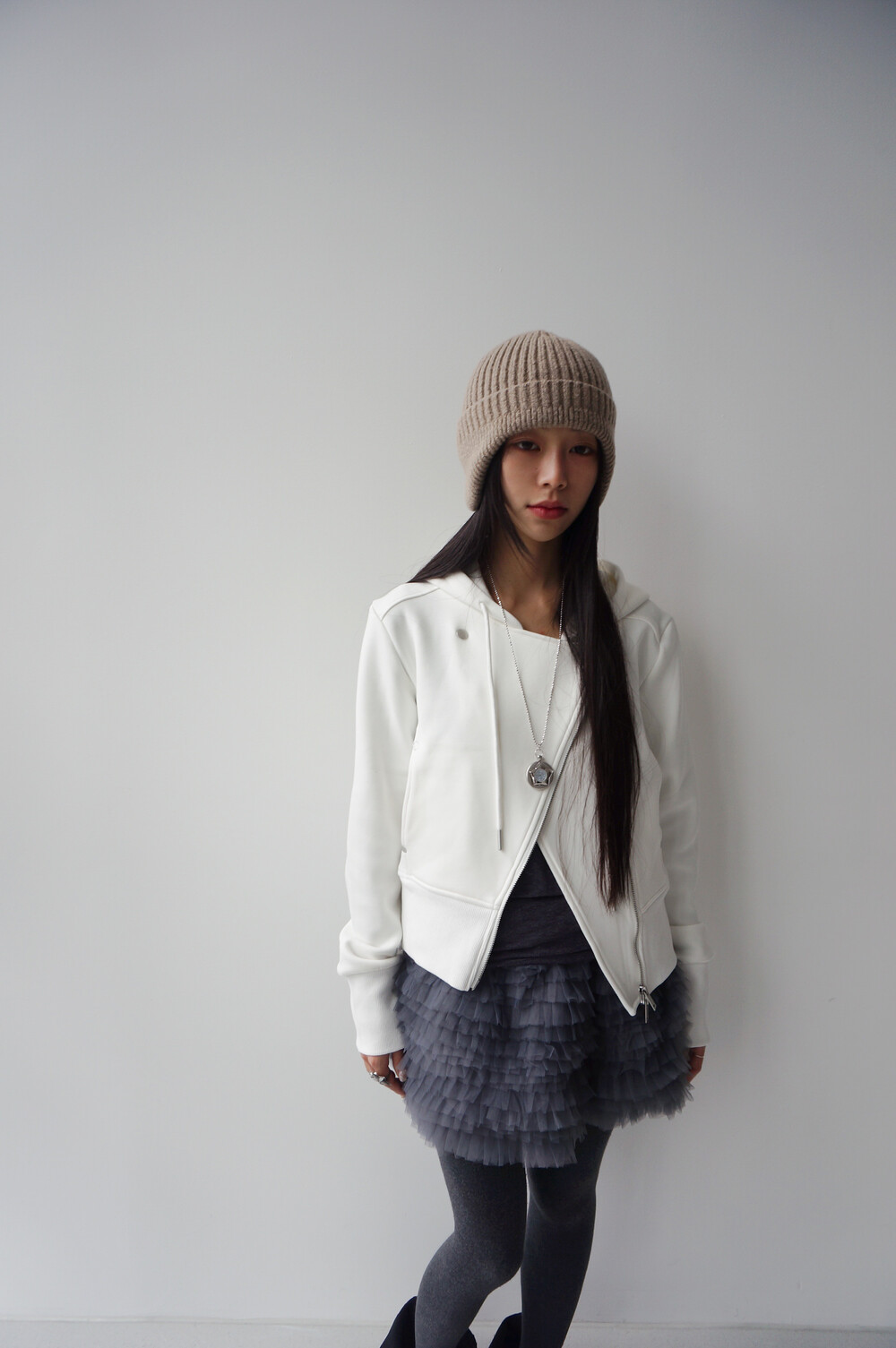 - 무광 투웨이 지퍼, 리벳 디테일.