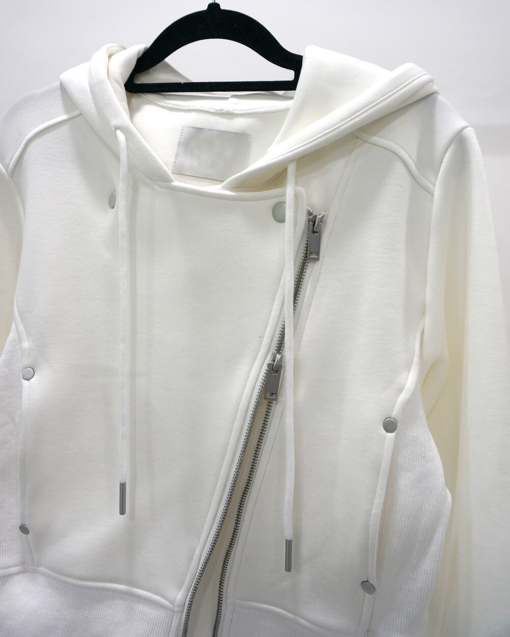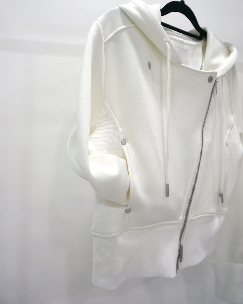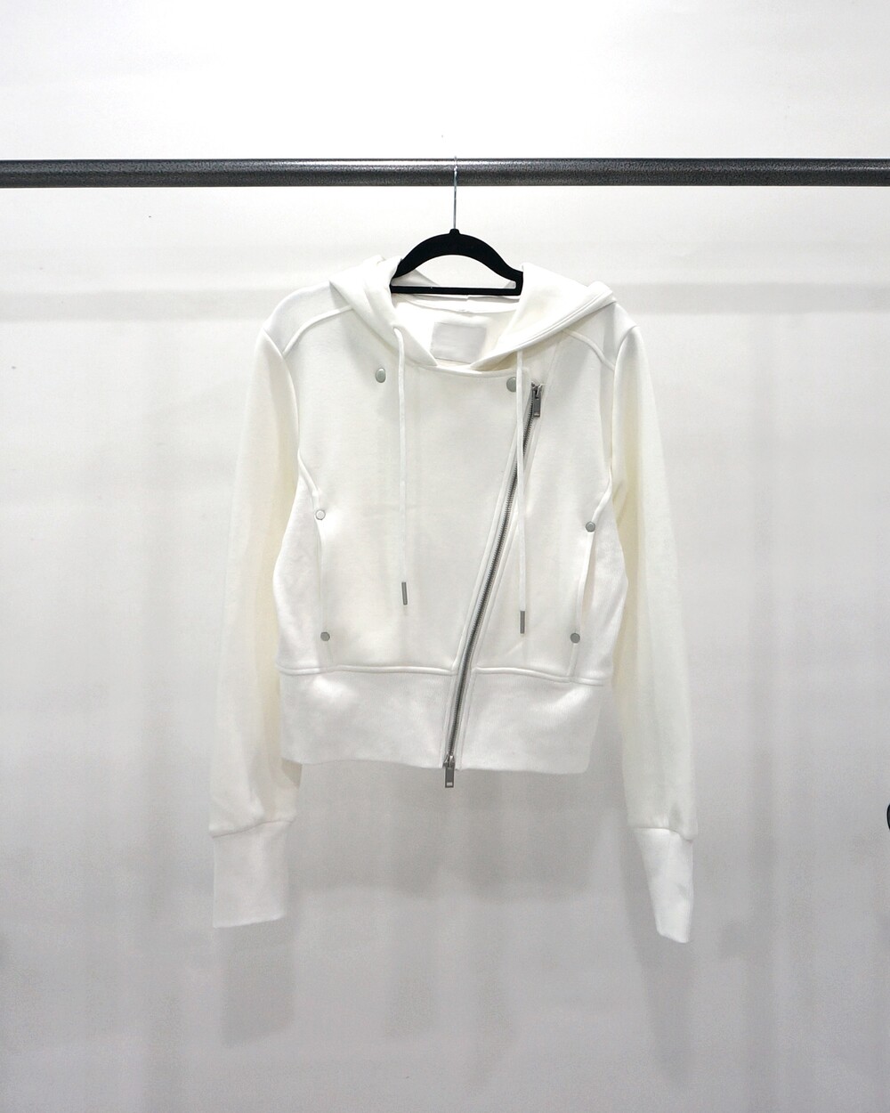 - 독특한 라이더자켓 디테일의 후드집업.