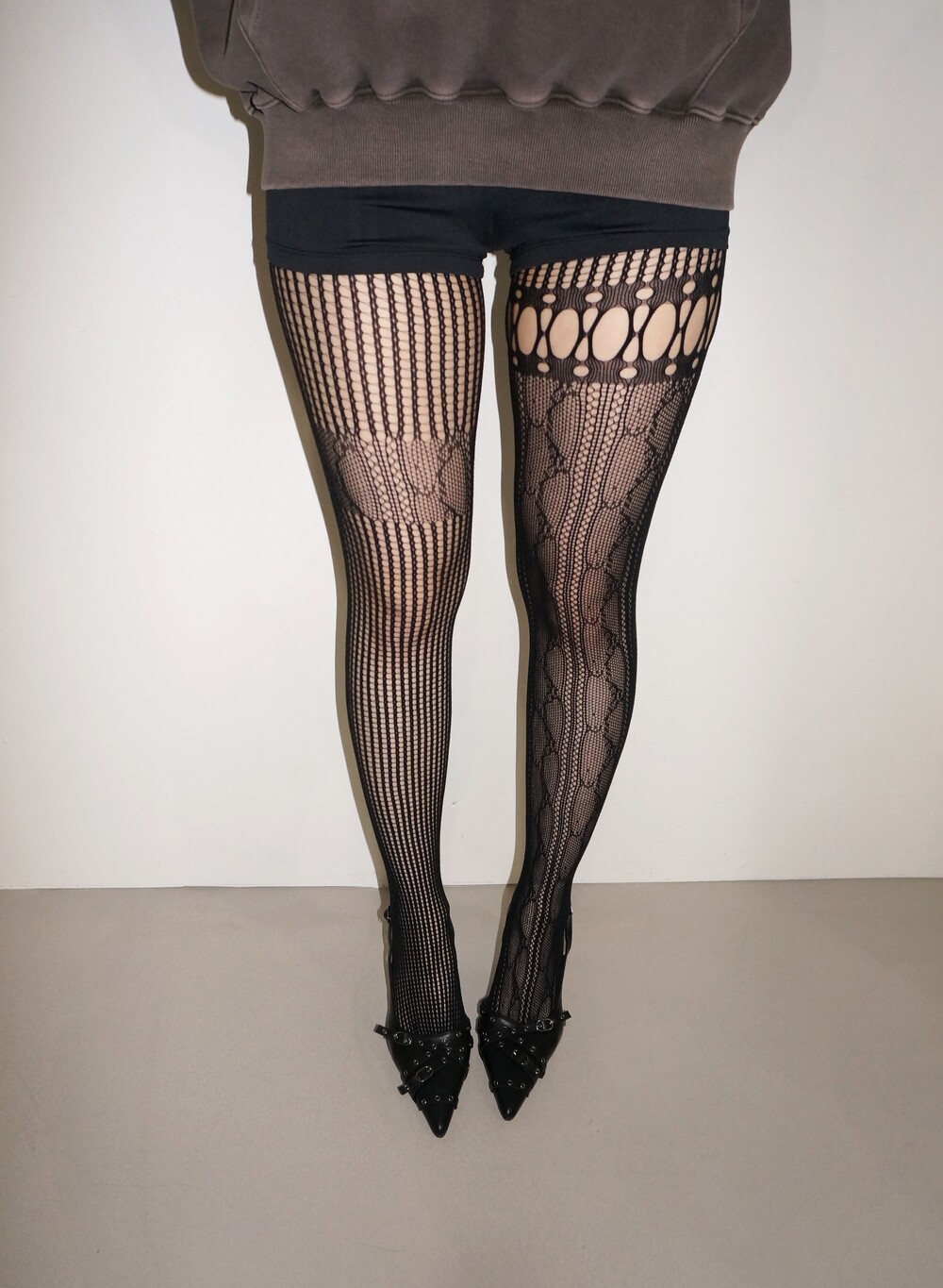 * 독특한 패턴이 믹스된 레이스 망사 스타킹.