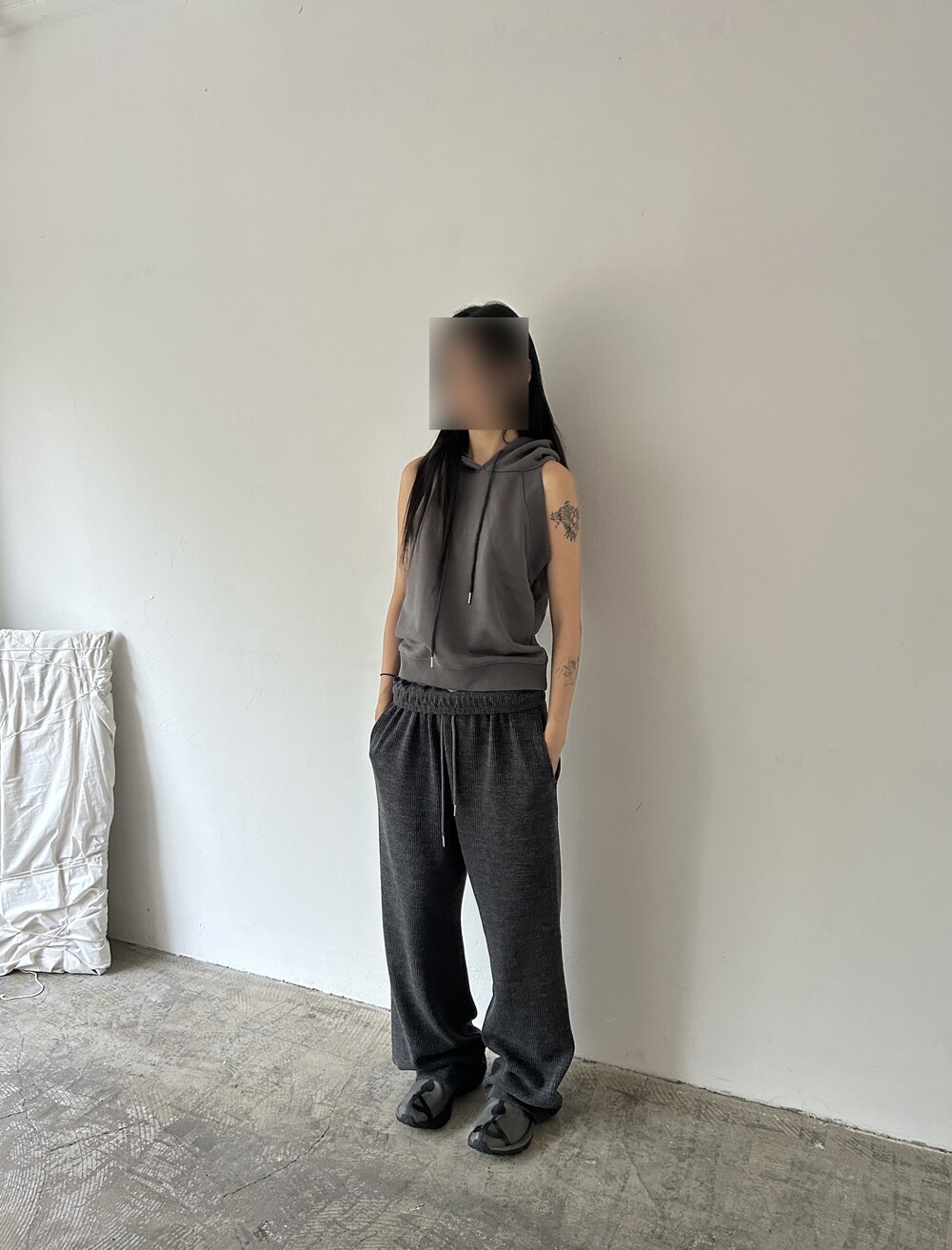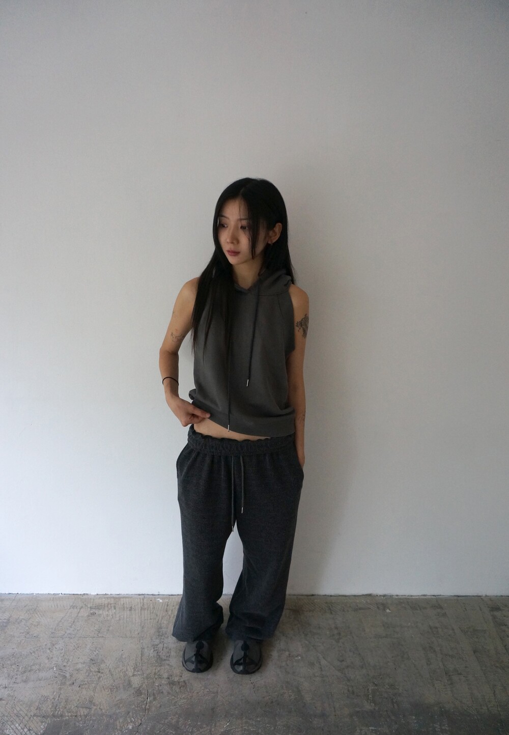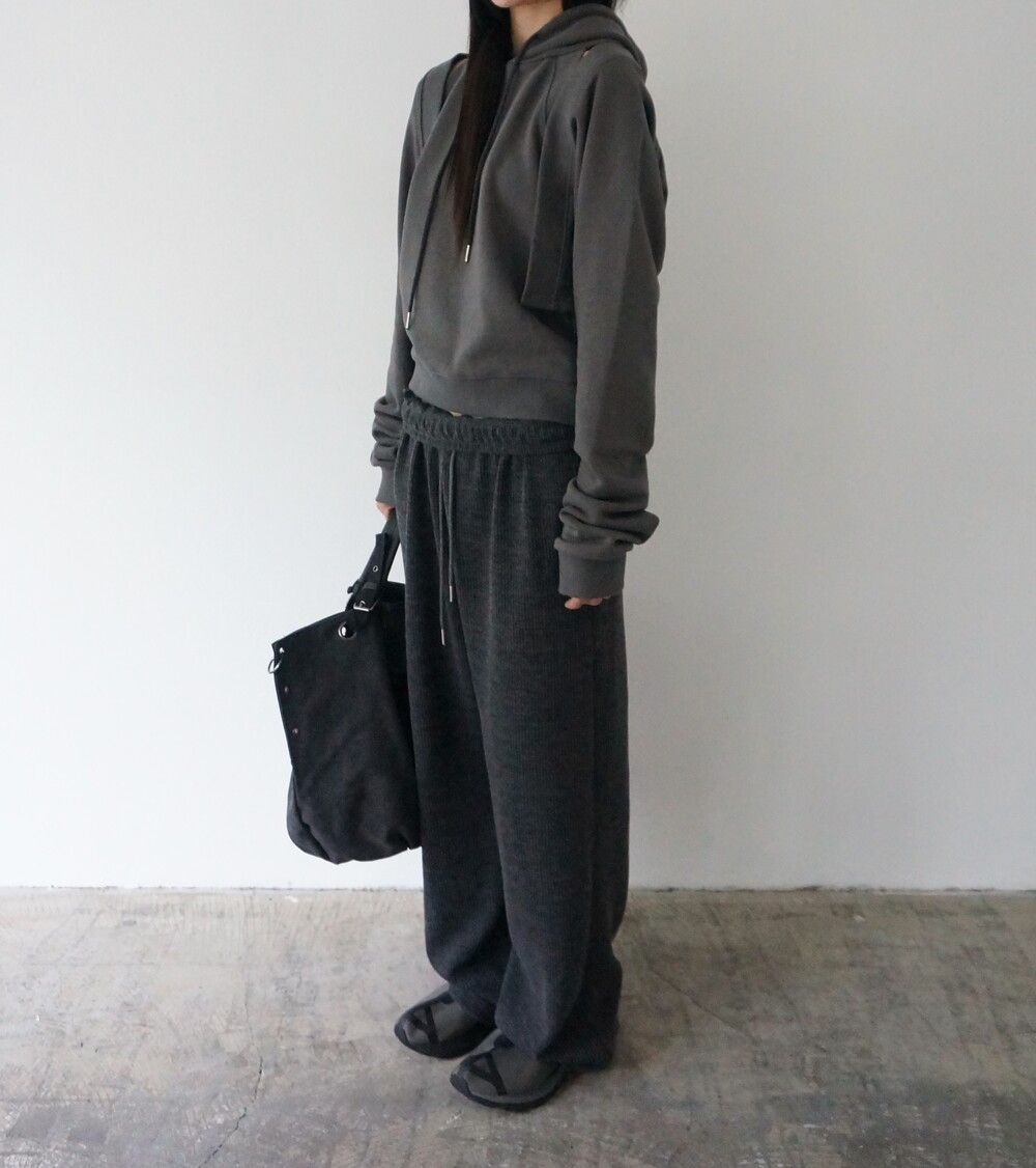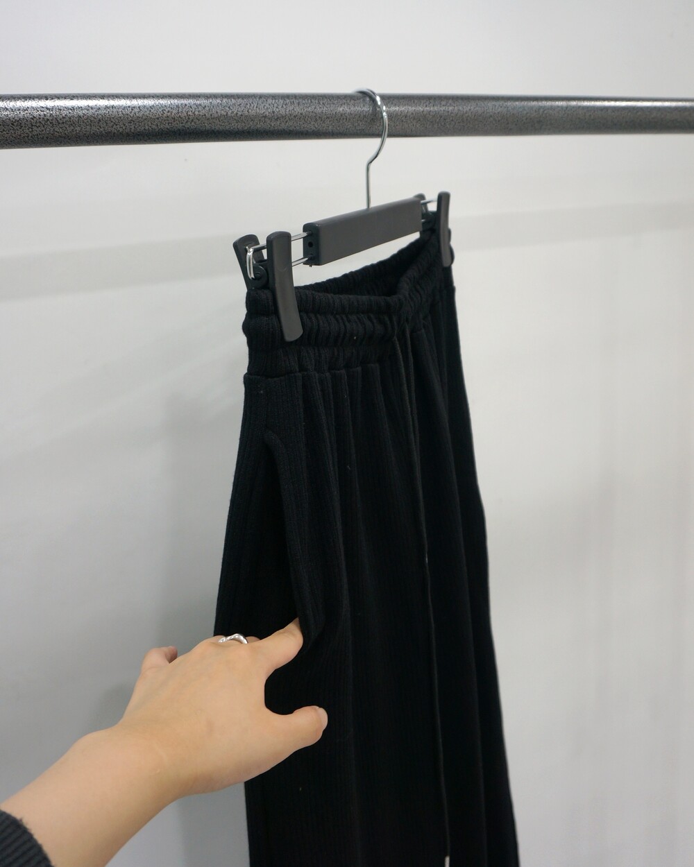- 굵은 골지 니트 원단의 트레이닝팬츠.