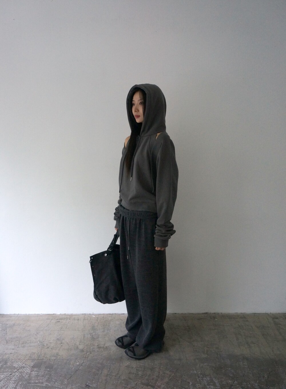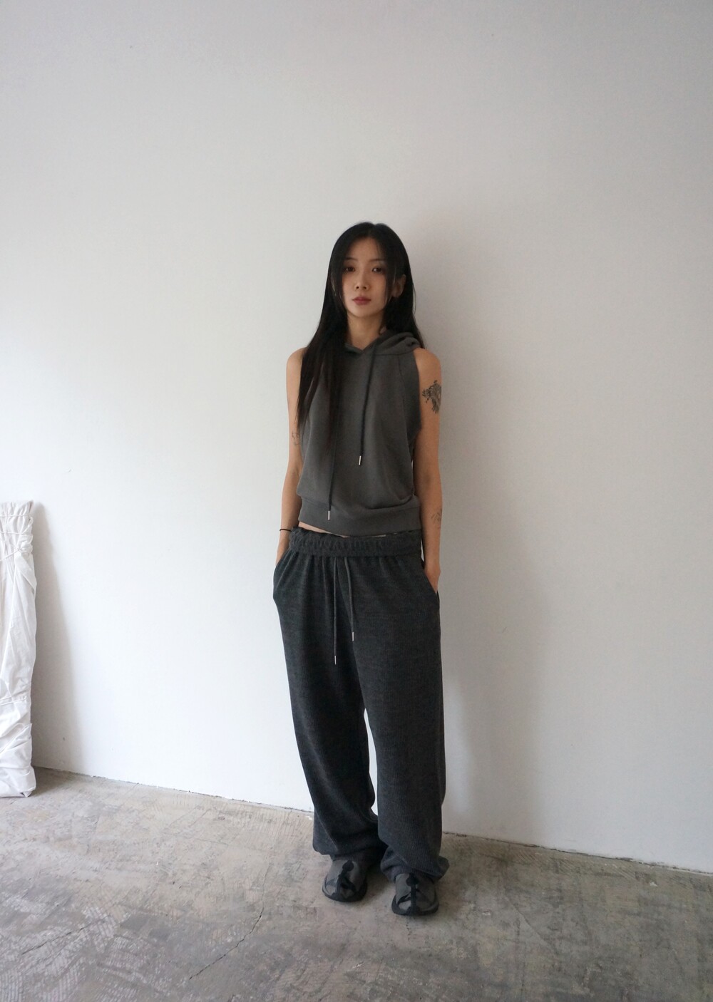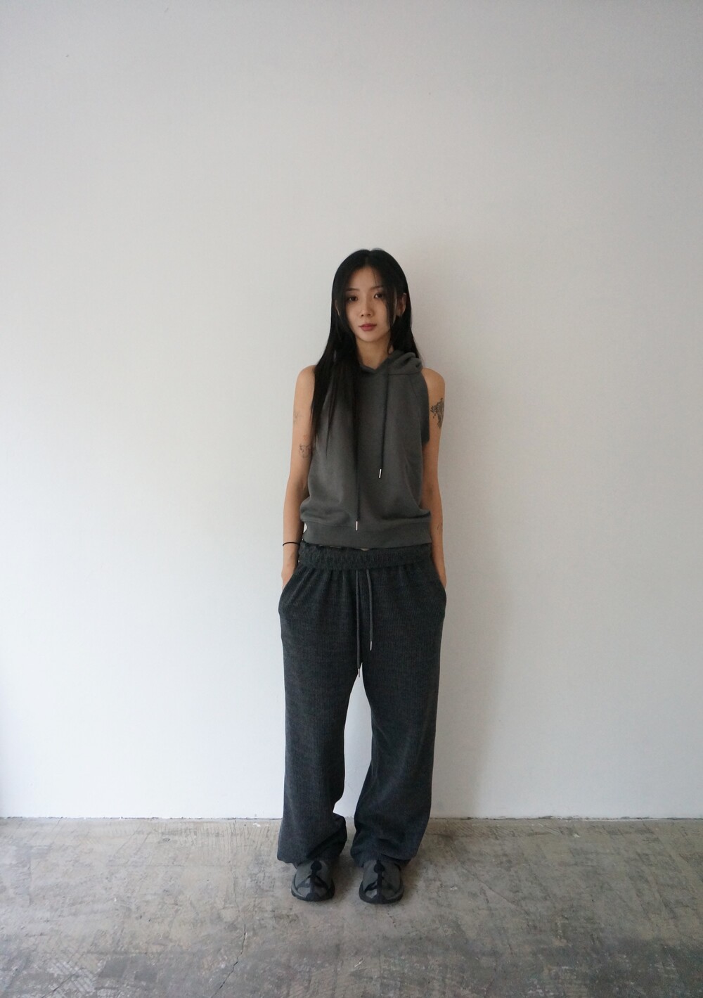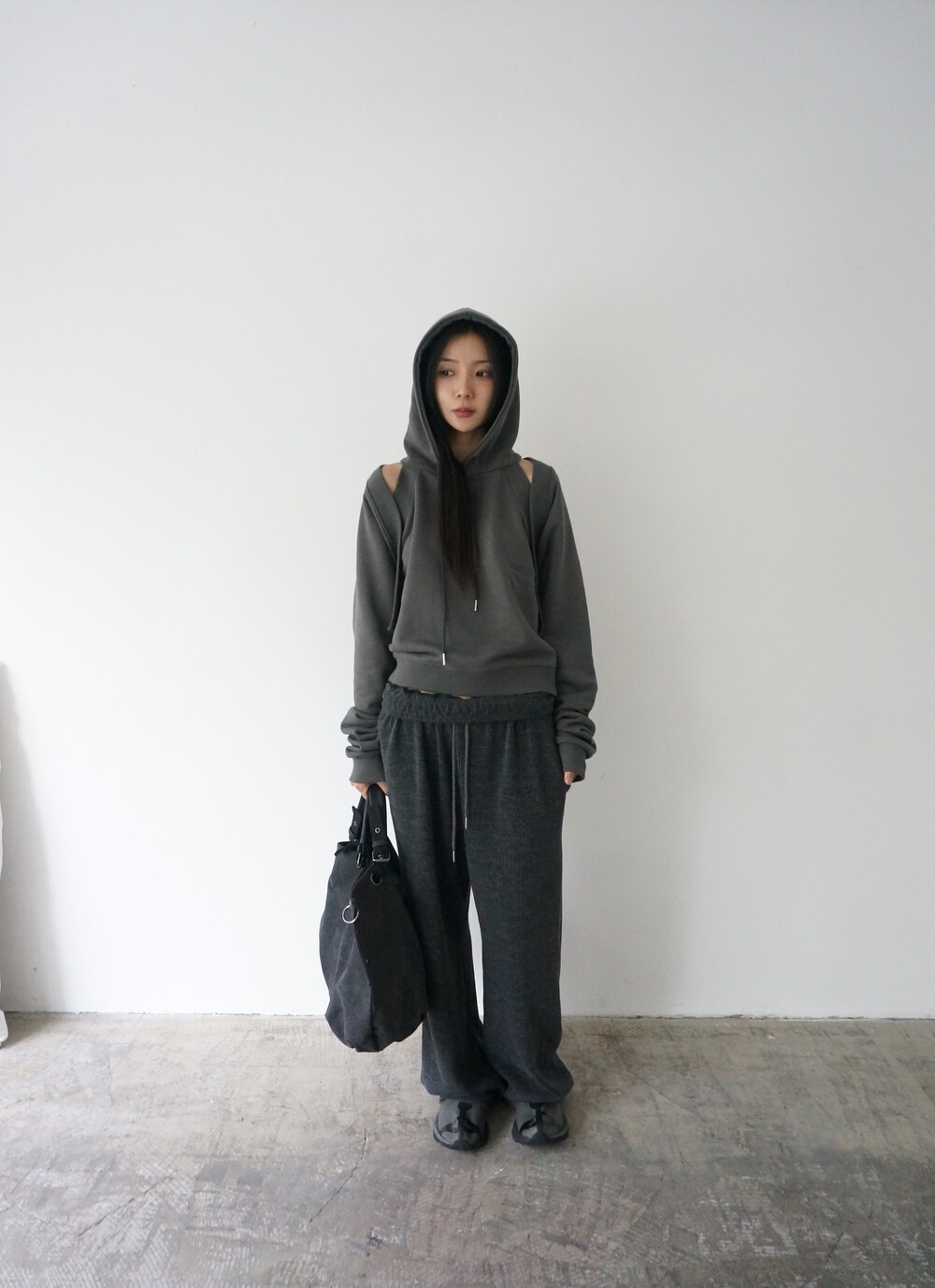 - 굵은 골지 니트 원단의 트레이닝팬츠.