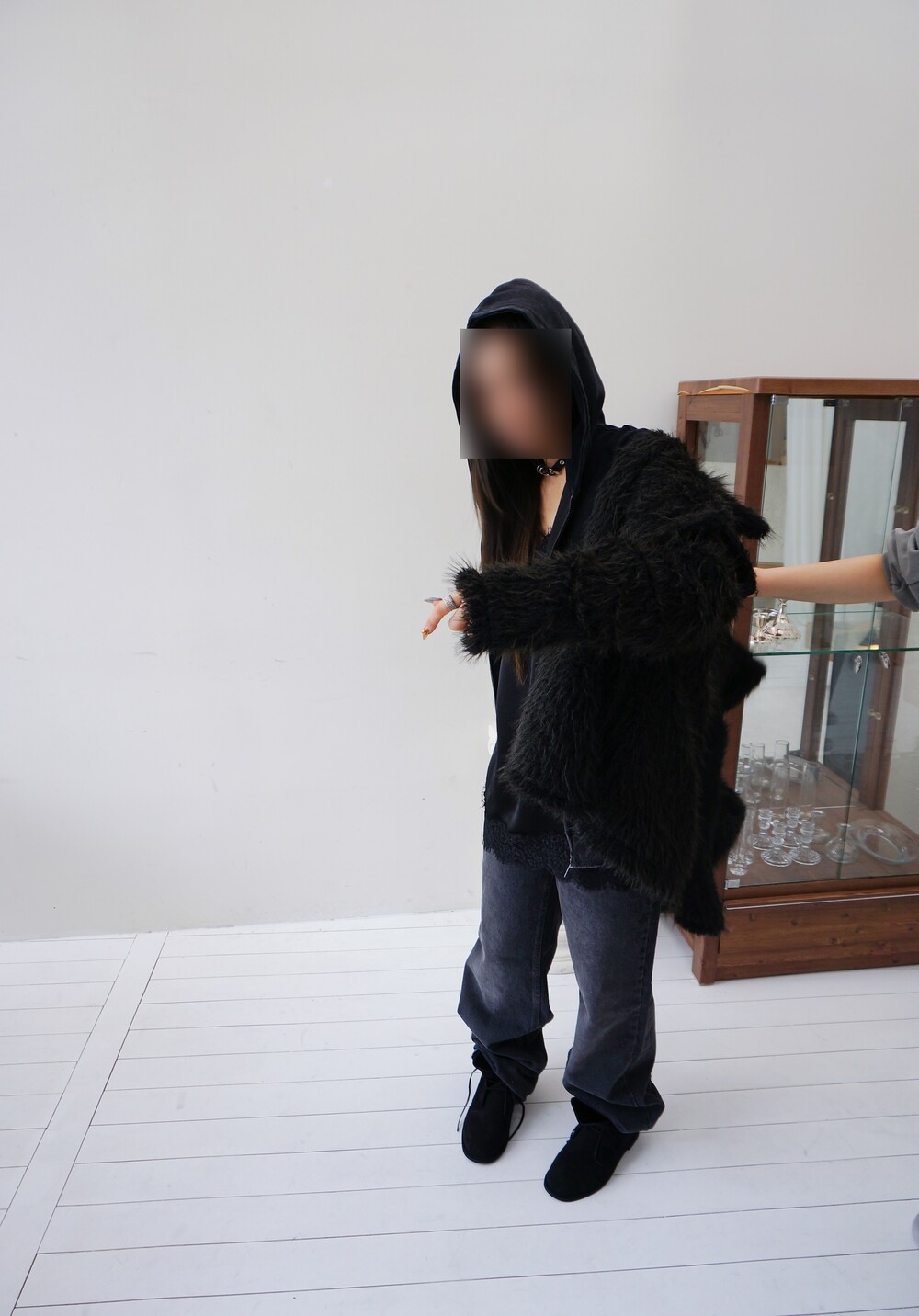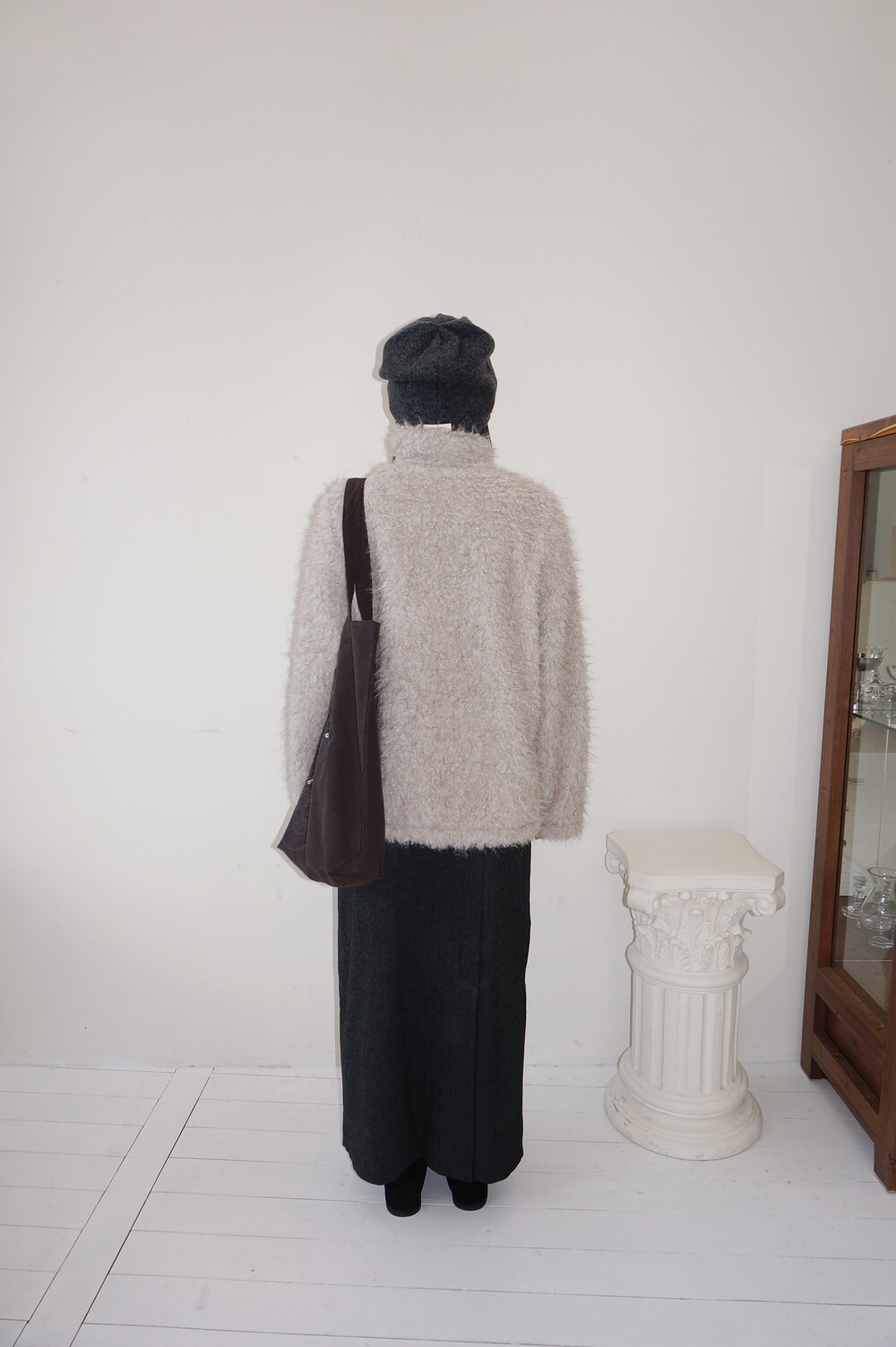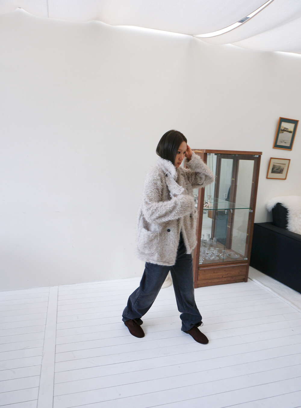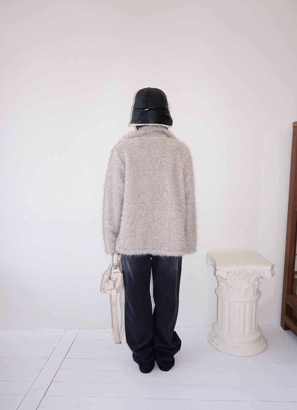 - 하이넥으로 연출가능한 퍼 더블코트.