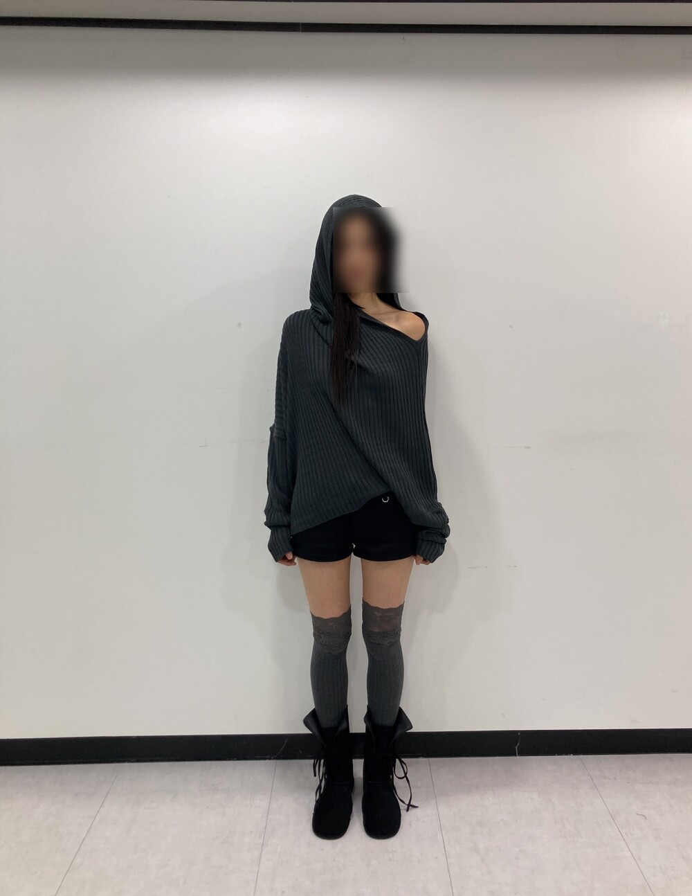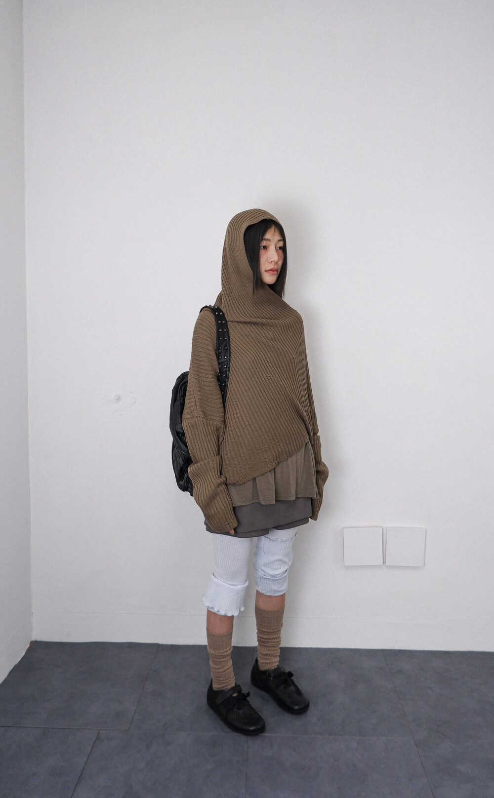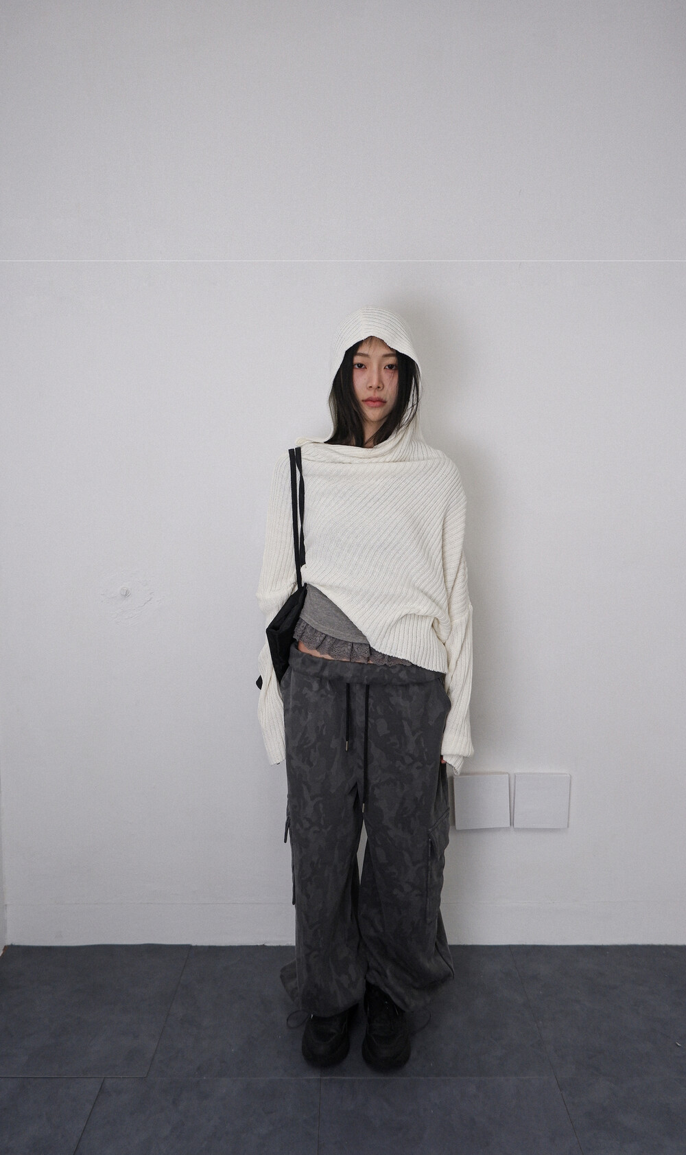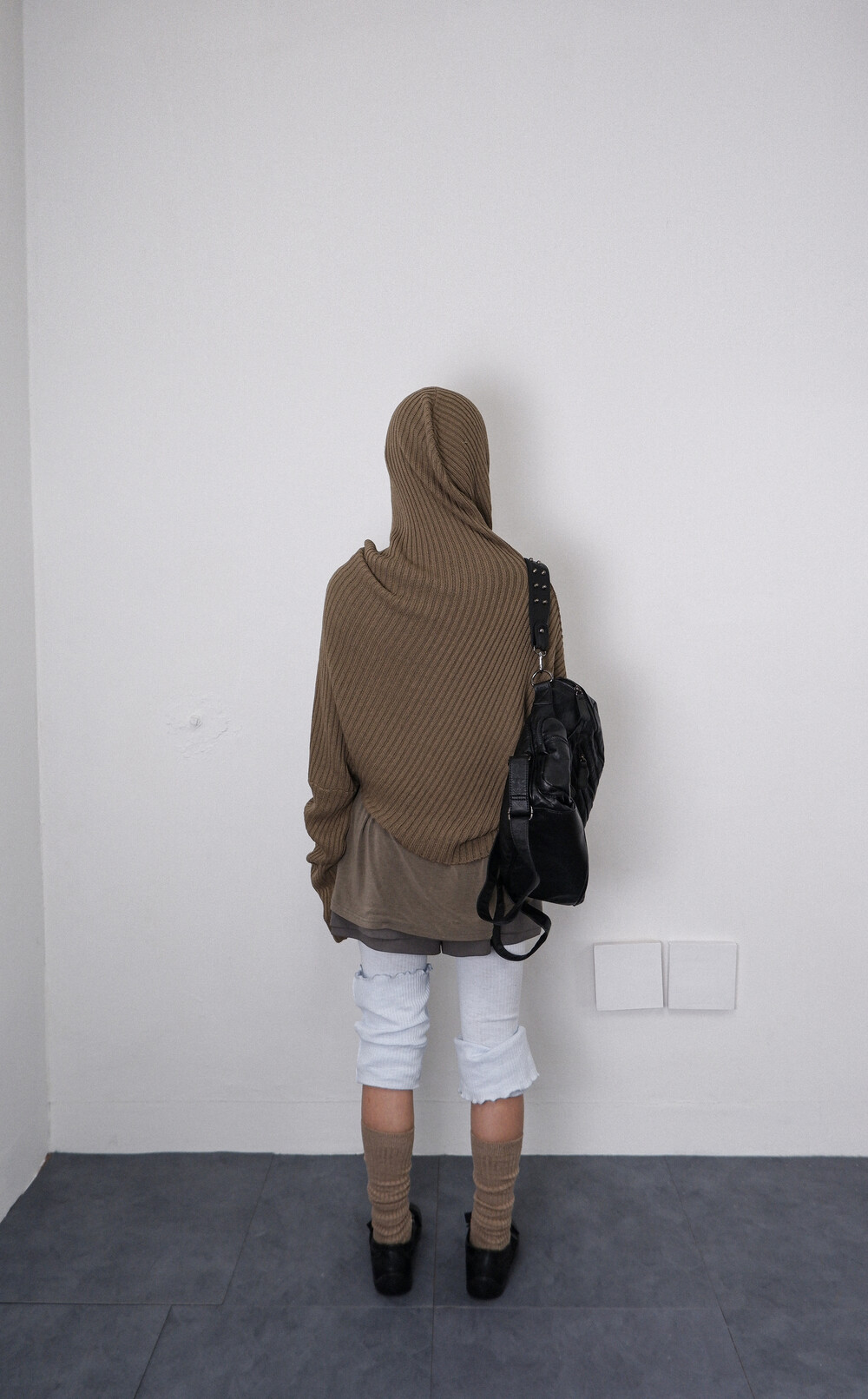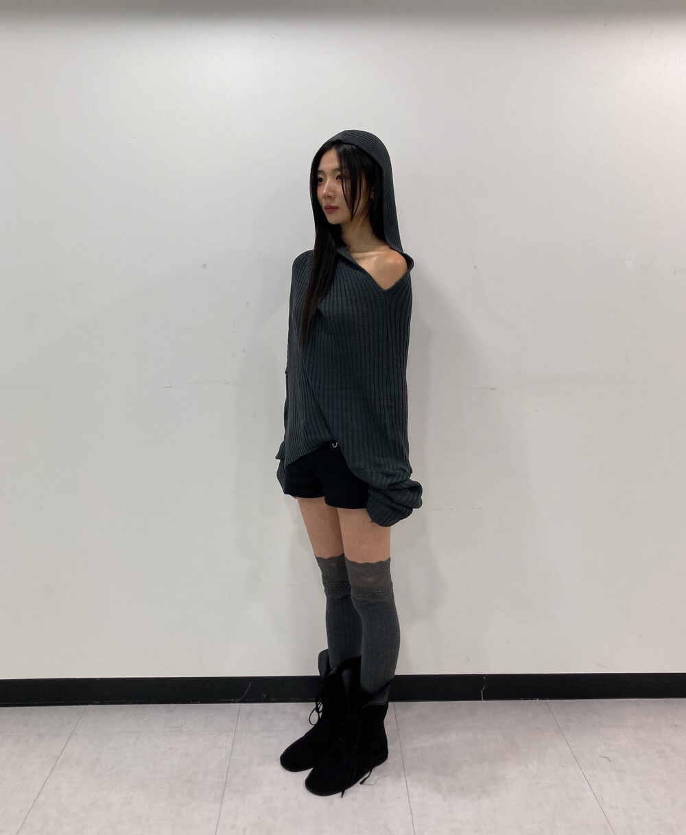 * 사선으로 떨어지는 밑단과 넓은 넥라인, 옆면으로 위치한 넓은 후드로 오프숄더로도 착용가능합니다.