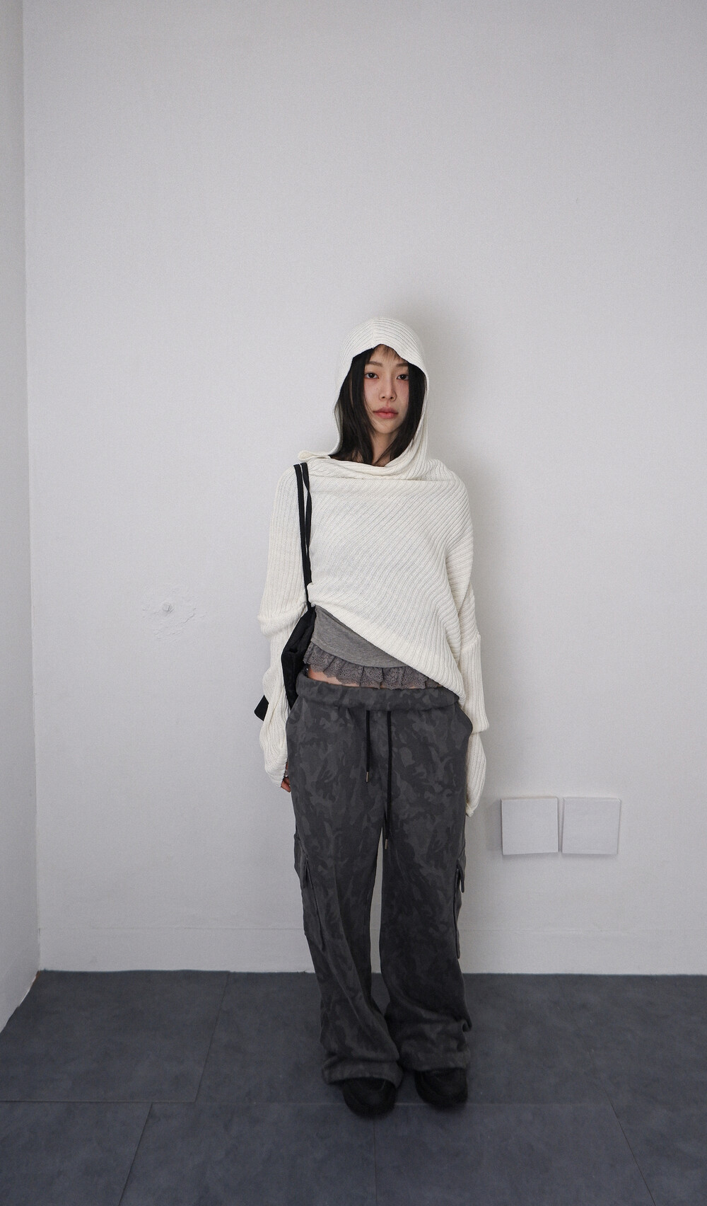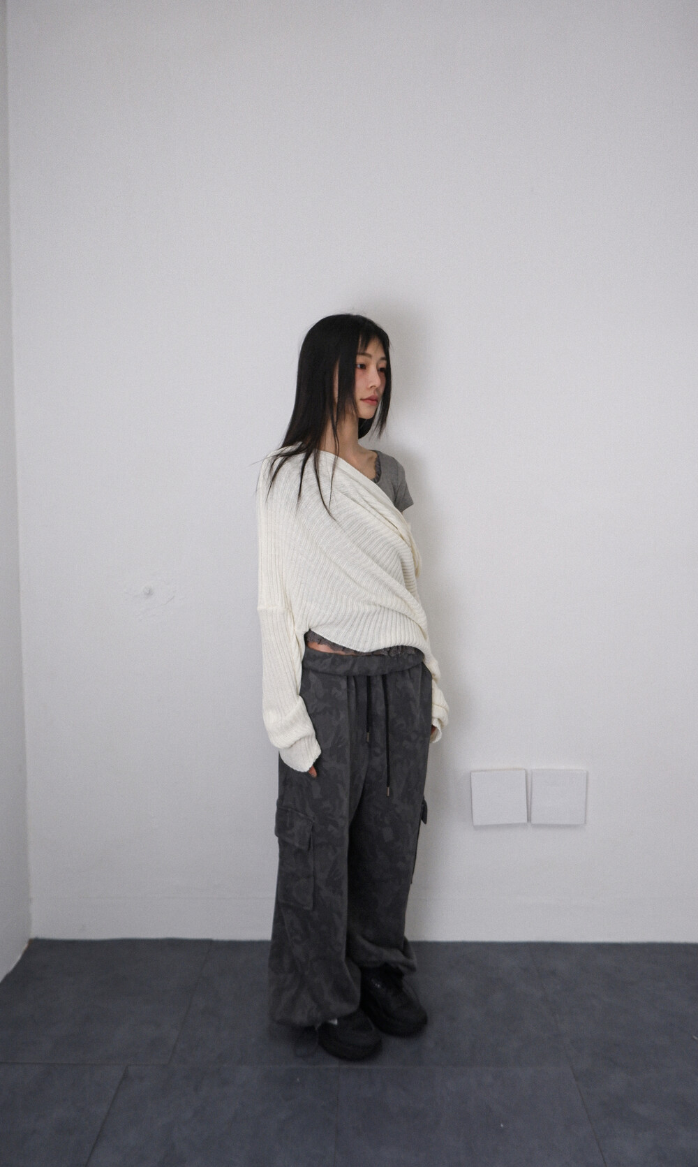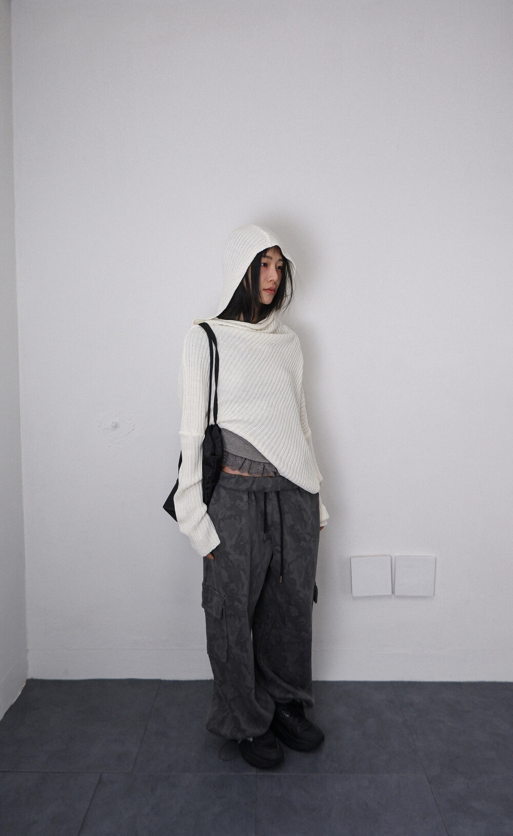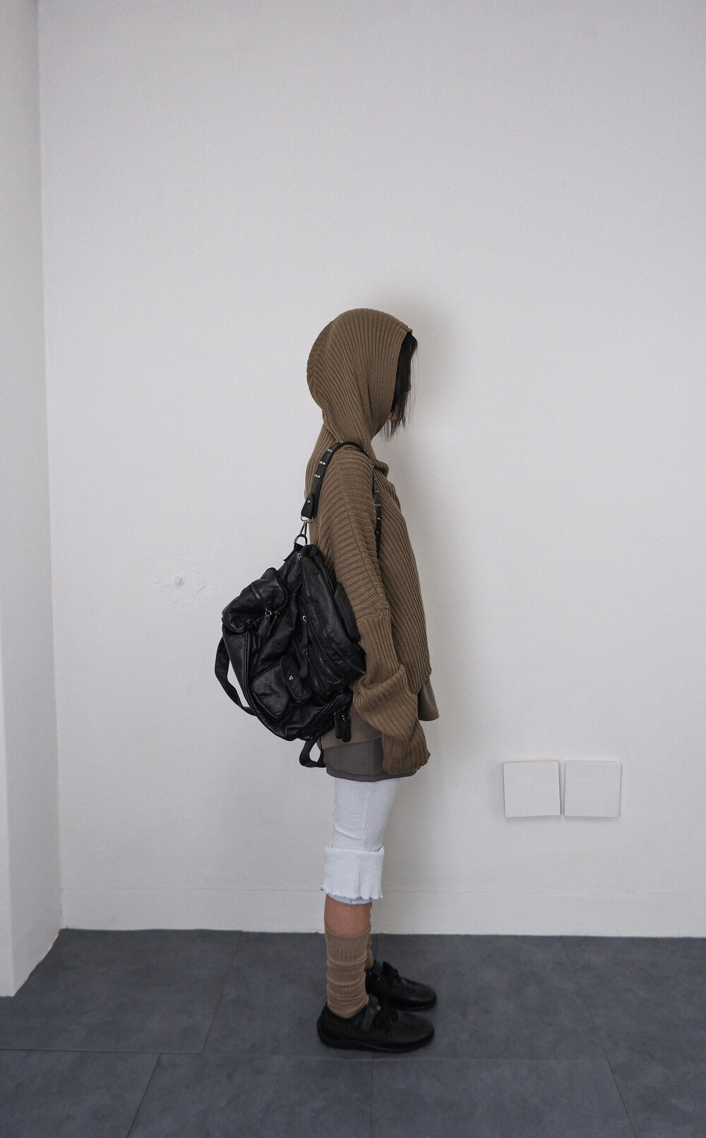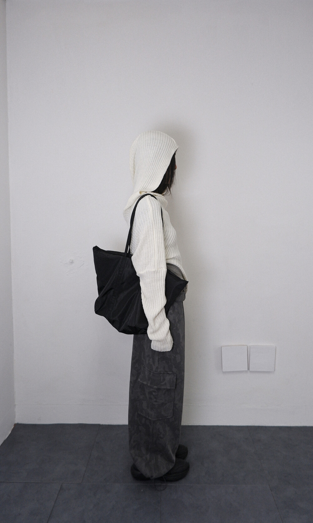 * 사선으로 떨어지는 밑단과 넓은 넥라인, 옆면으로 위치한 넓은 후드로 오프숄더로도 착용가능합니다.