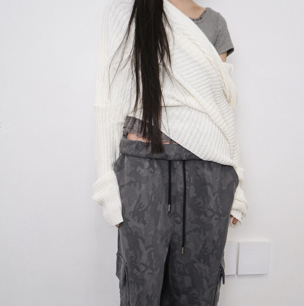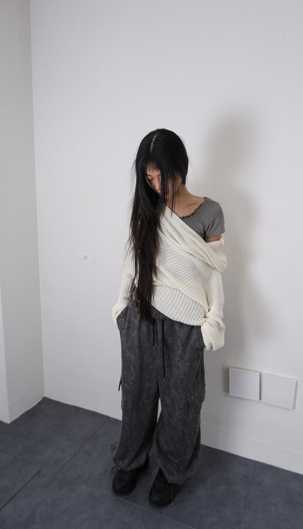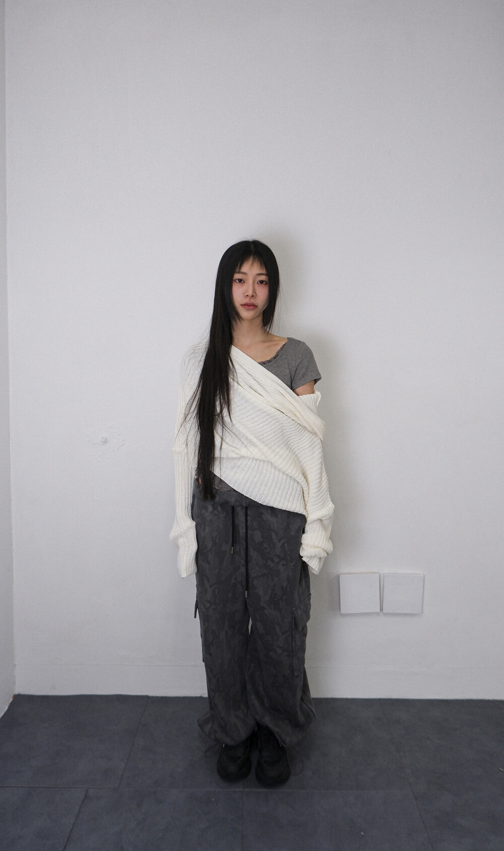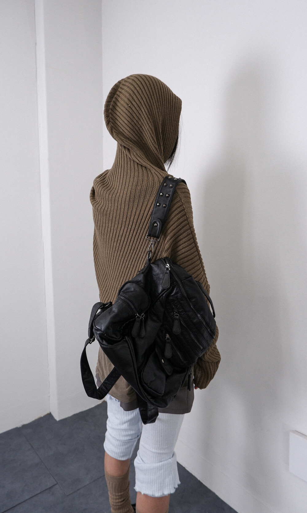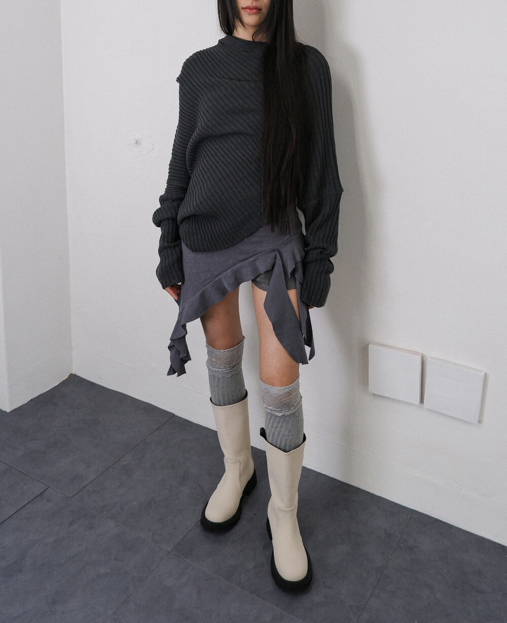 * 사선으로 떨어지는 밑단과 넓은 넥라인, 옆면으로 위치한 넓은 후드로 오프숄더로도 착용가능합니다.