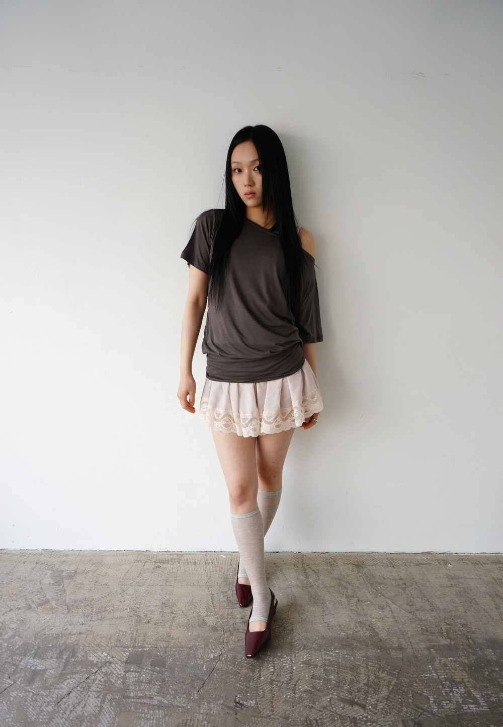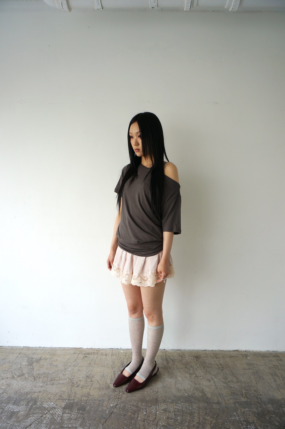 - 윗면은 루즈하게 흘러내리면서 밑은 딱붙게 착용하는 원피스.