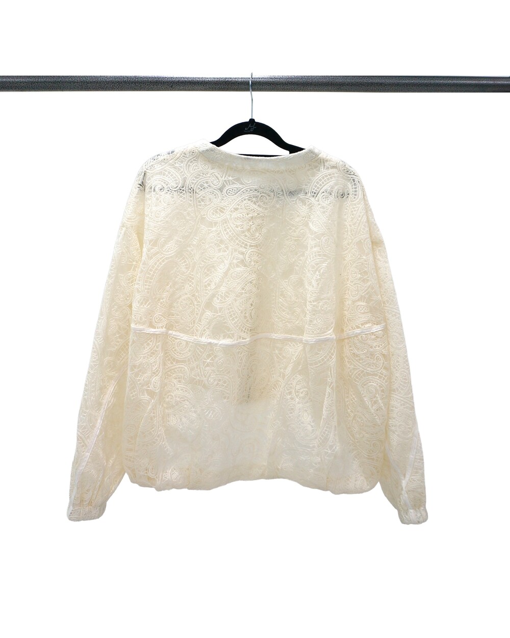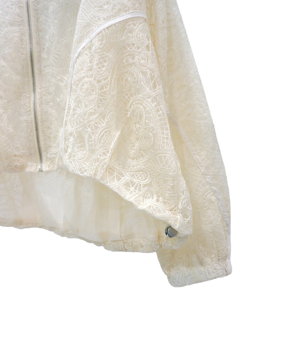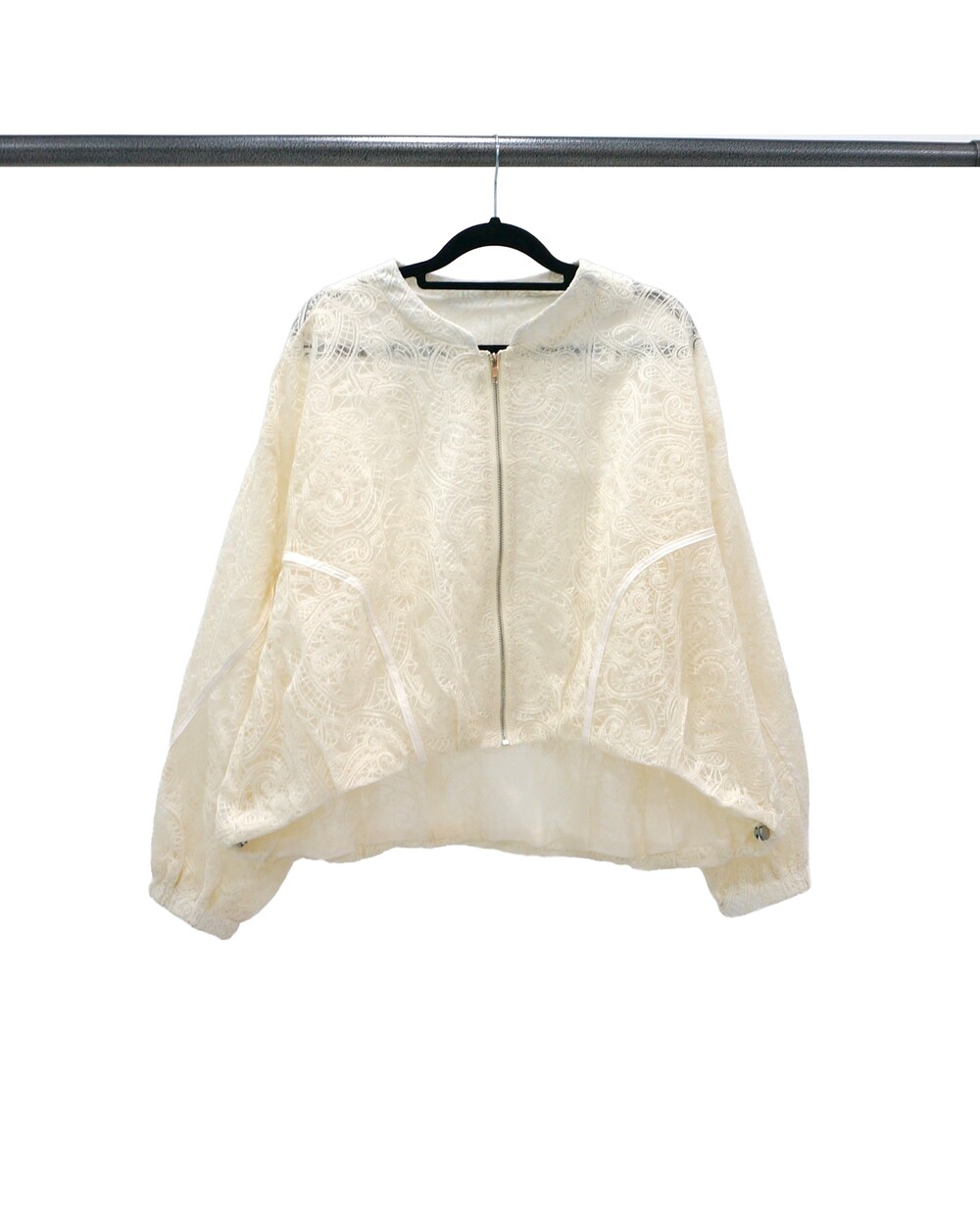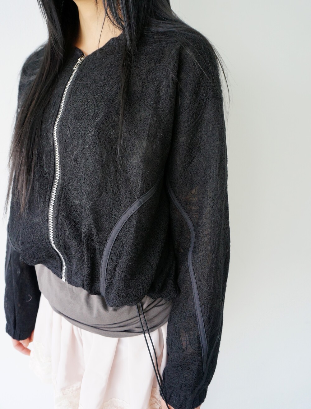- 투명하게 비치는 레이스 디테일의 봄버자켓.