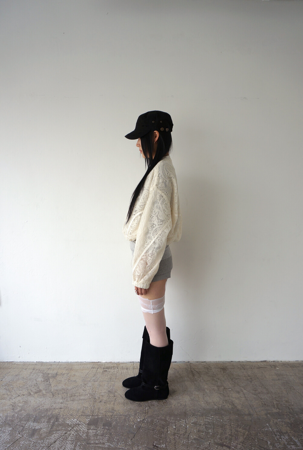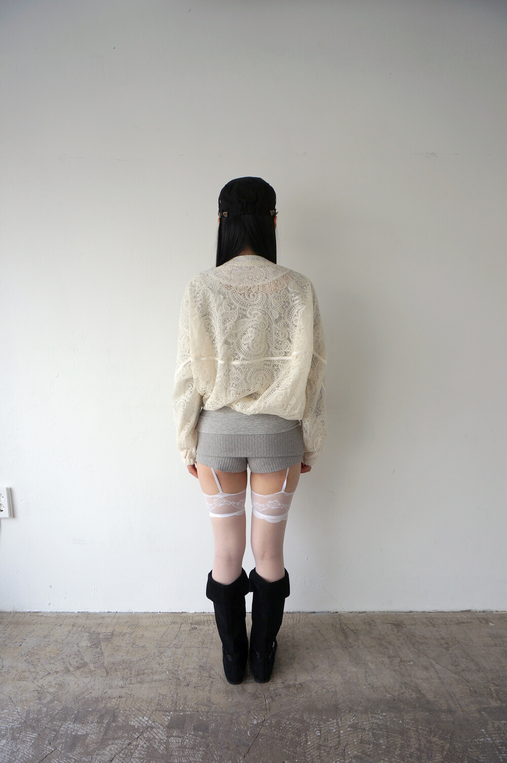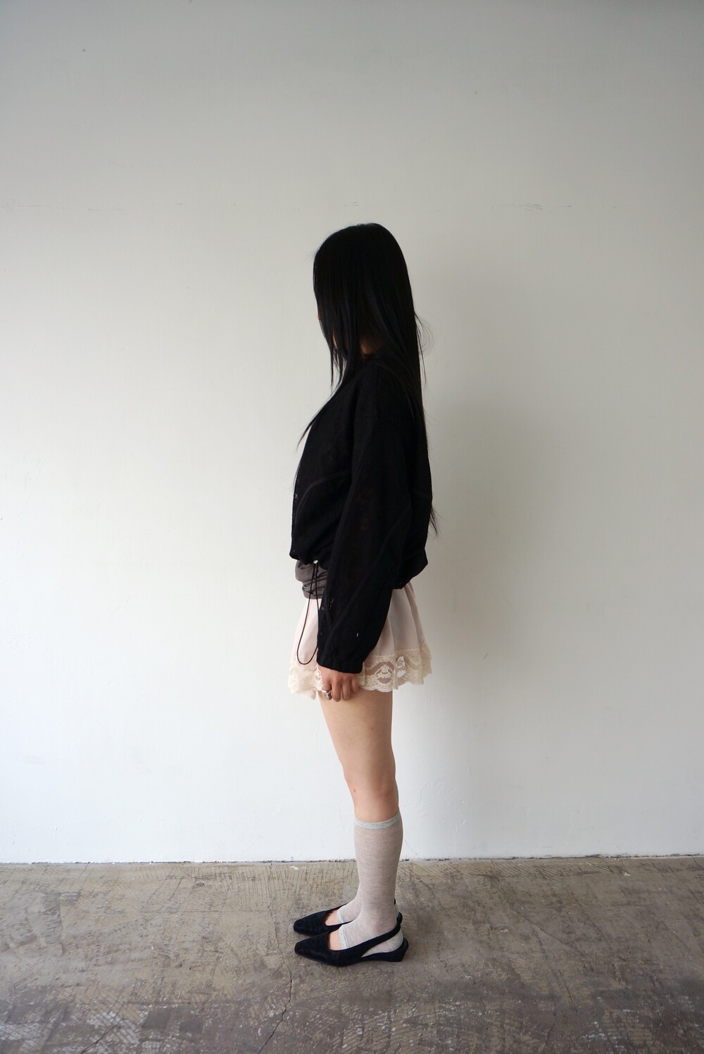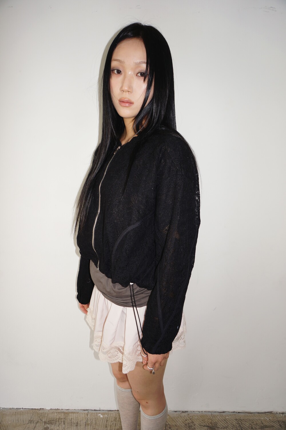 - 투명하게 비치는 레이스 디테일의 봄버자켓.
