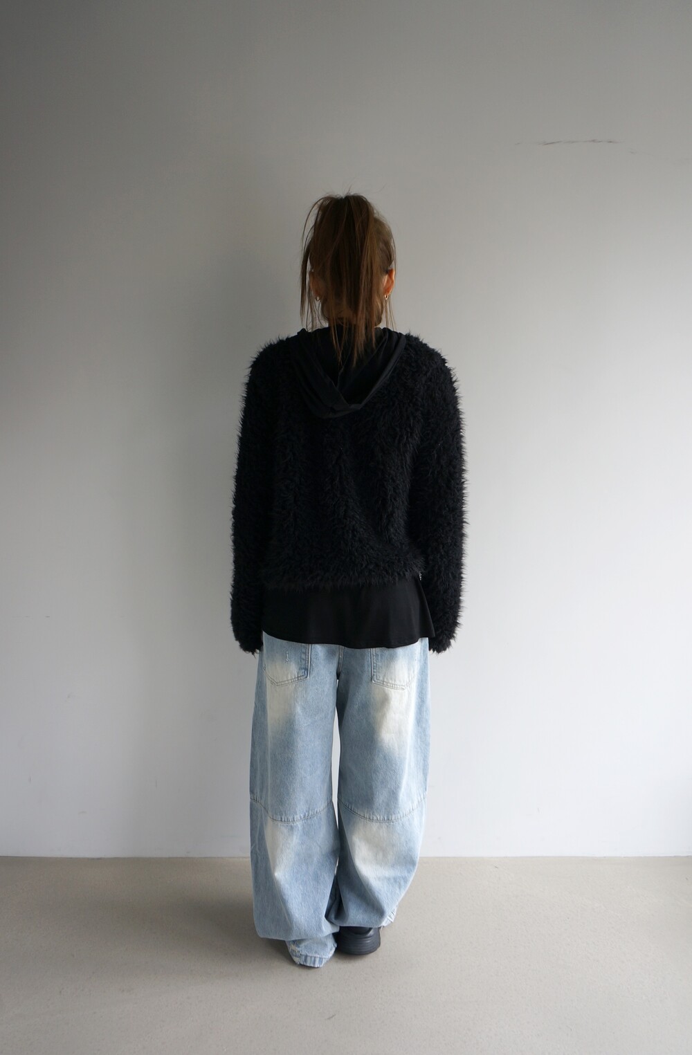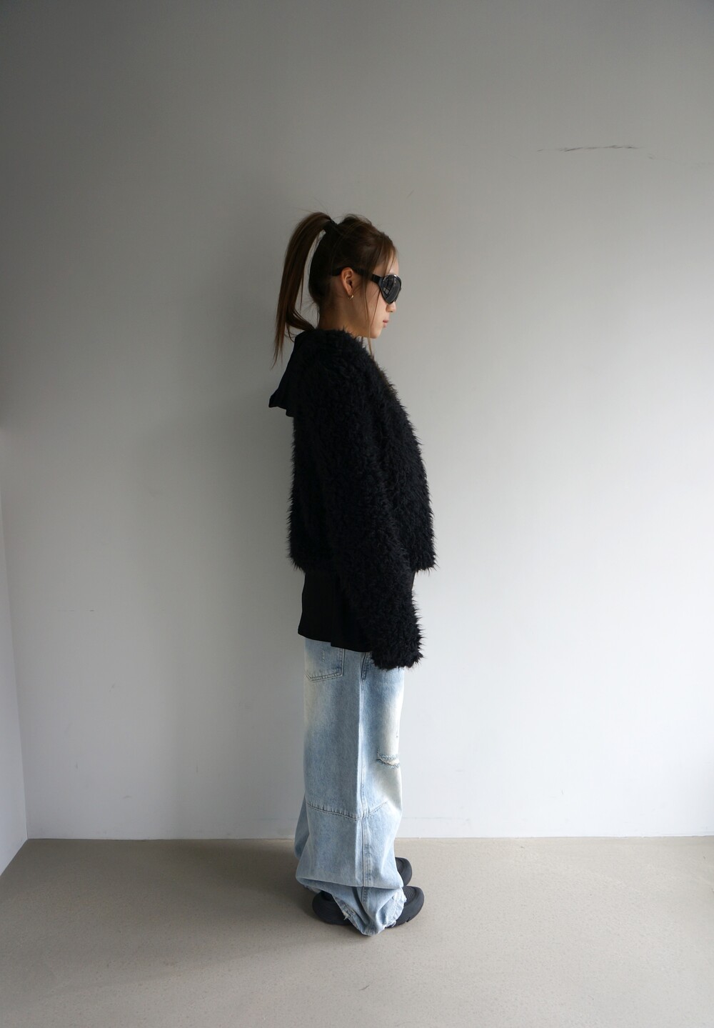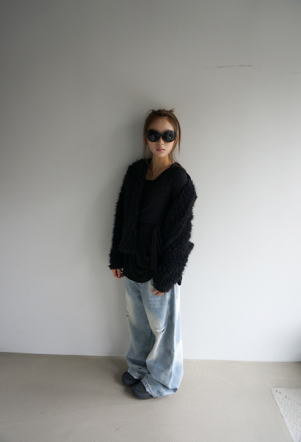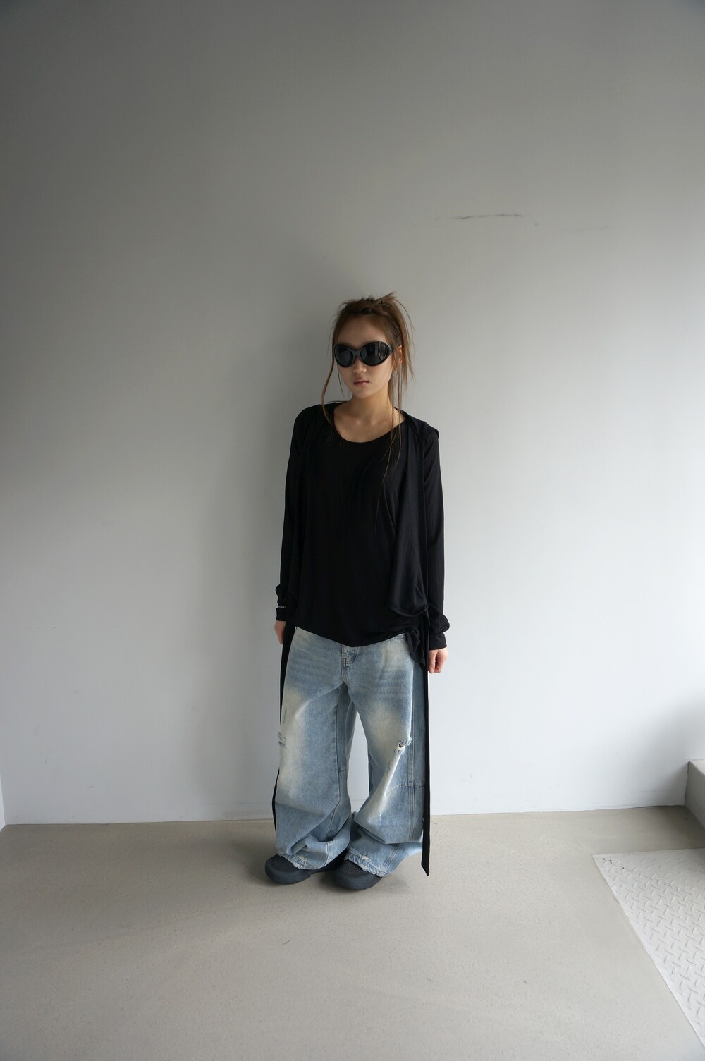 - 밝은 워싱과 데미지 디테일의 데님팬츠.