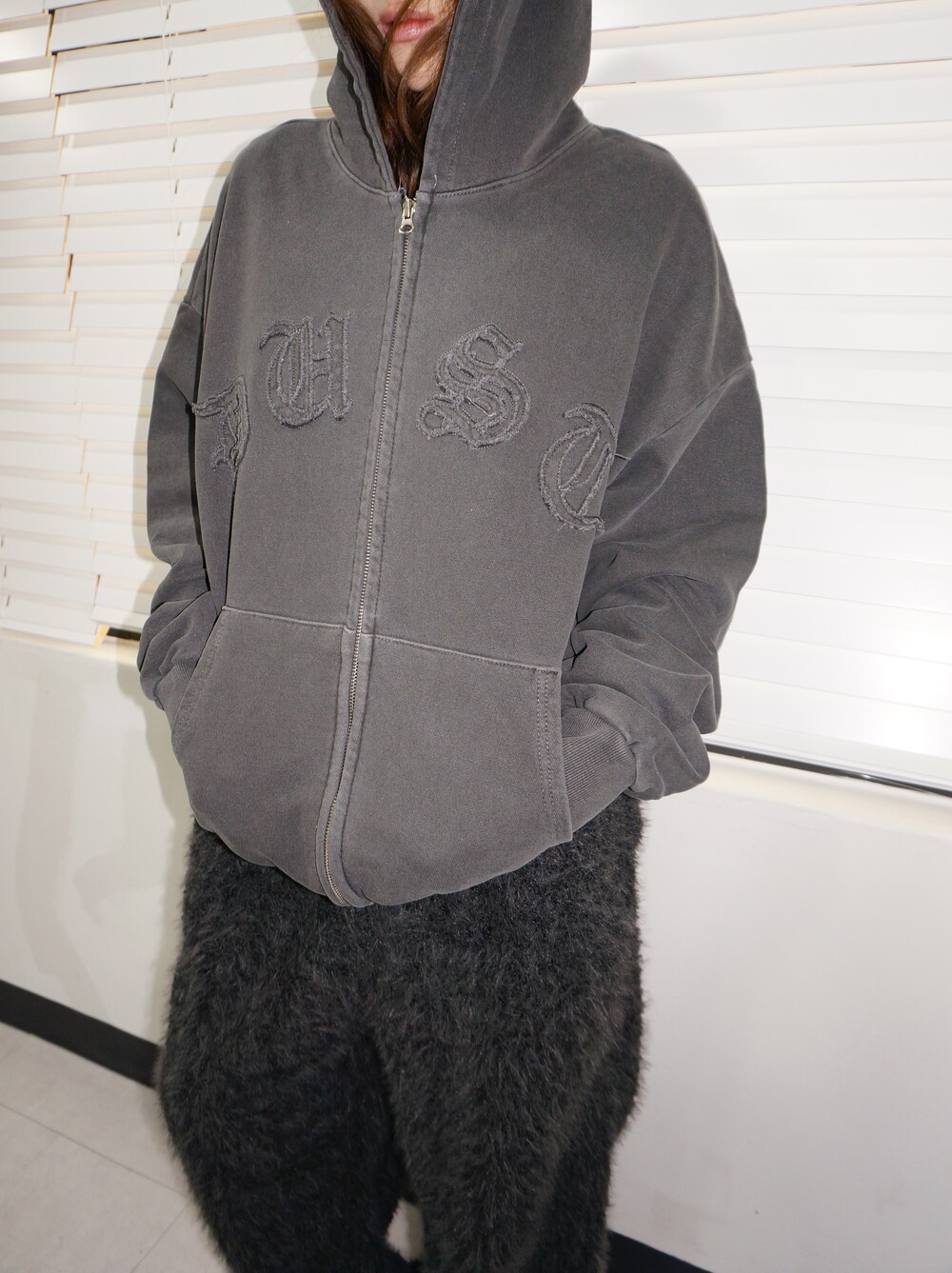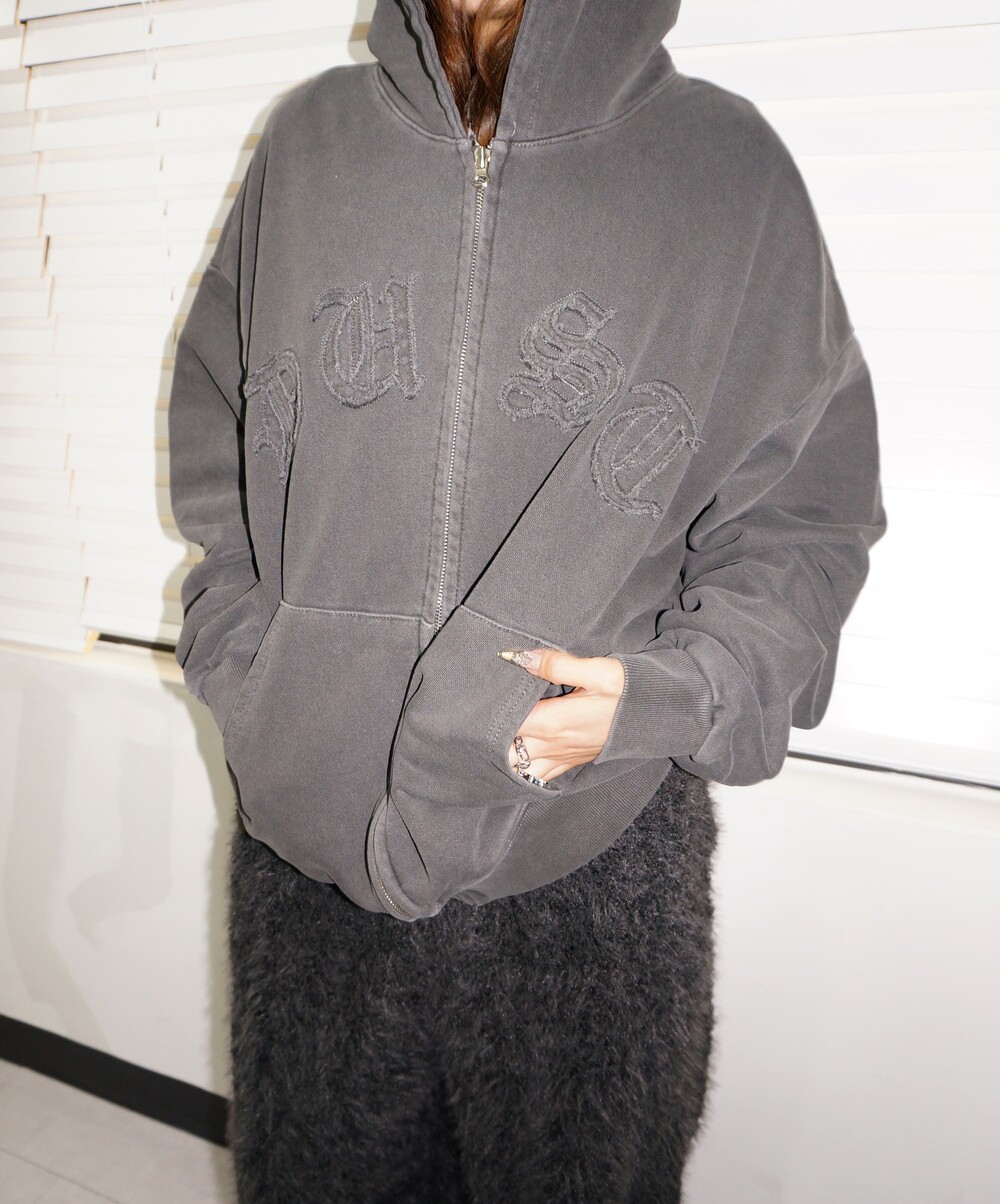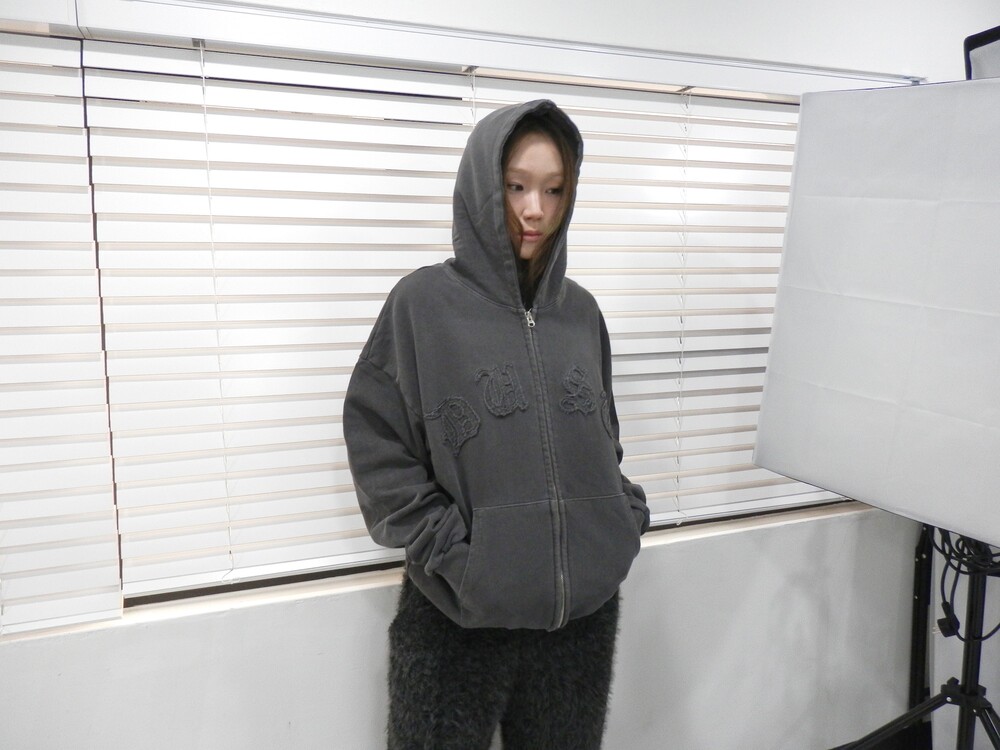 Dust washed hood zip-up