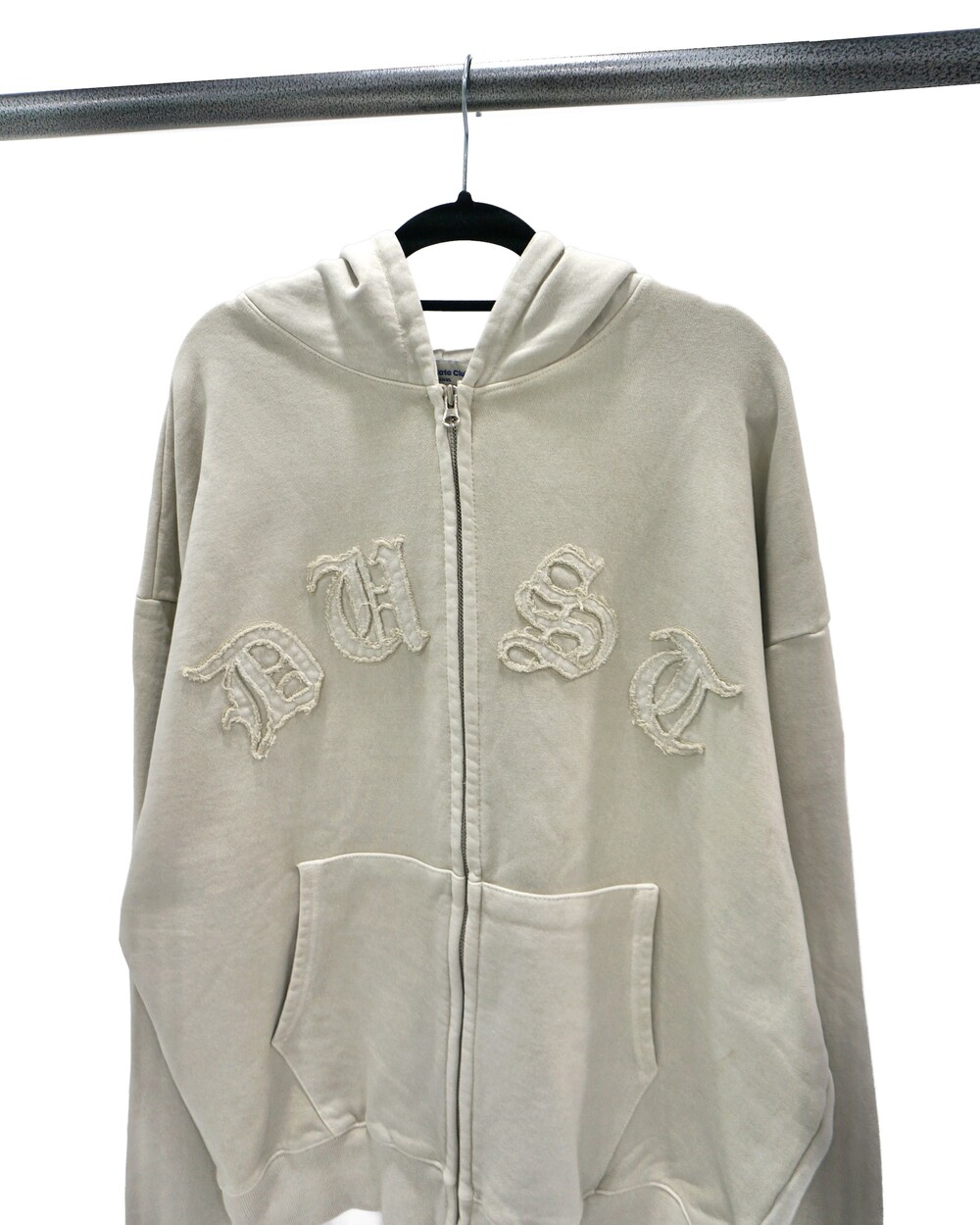 - 빈티지한 DUST 문구 패치 디테일.