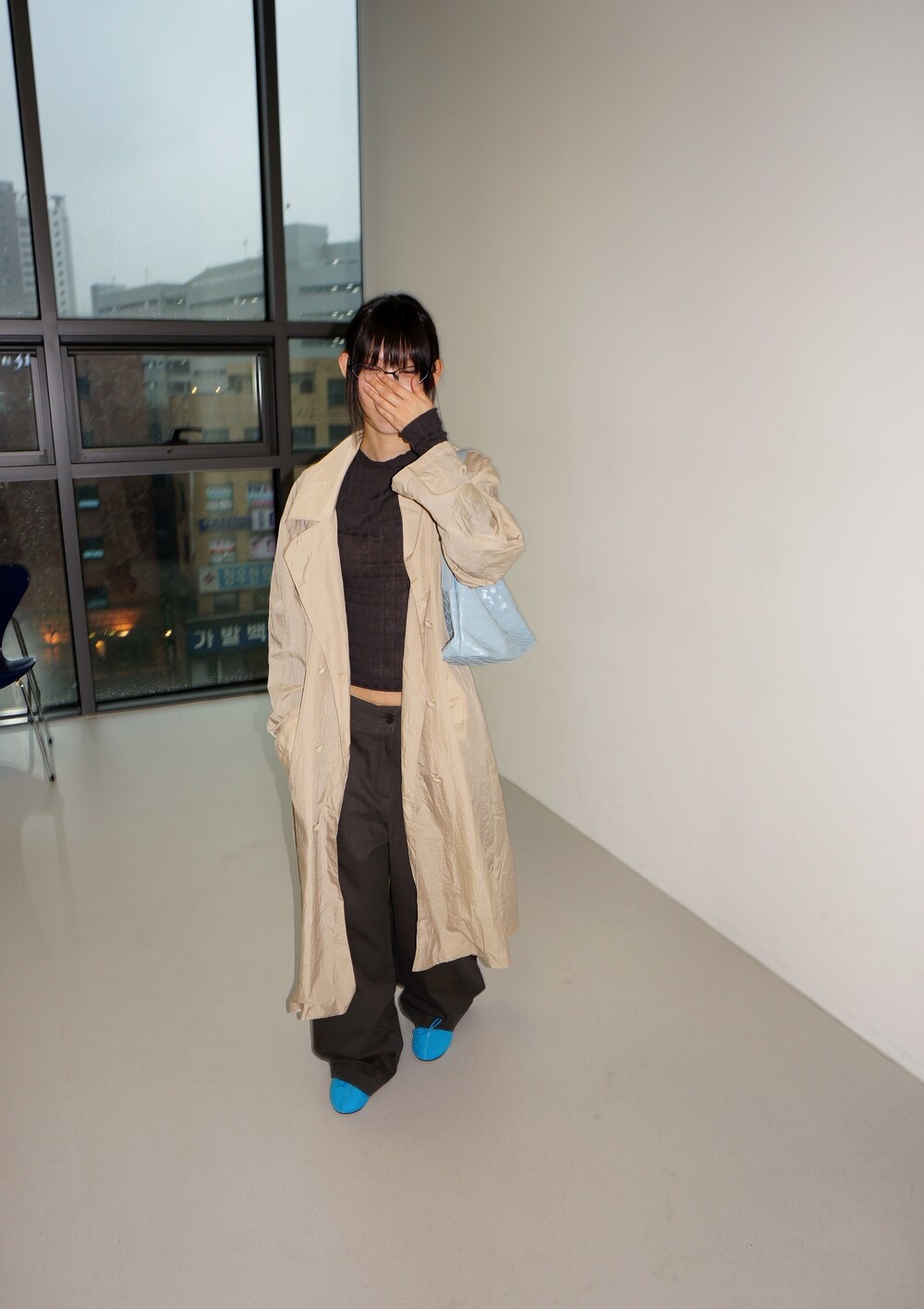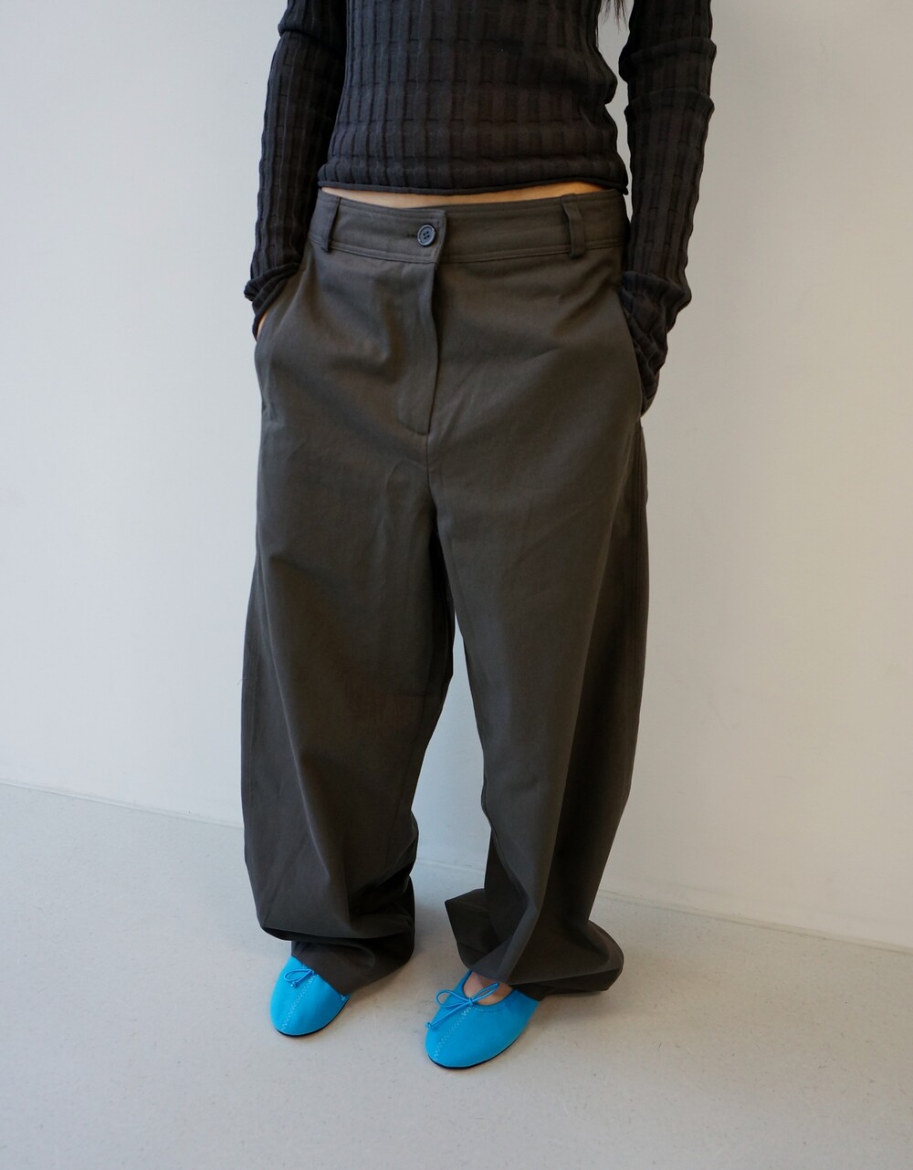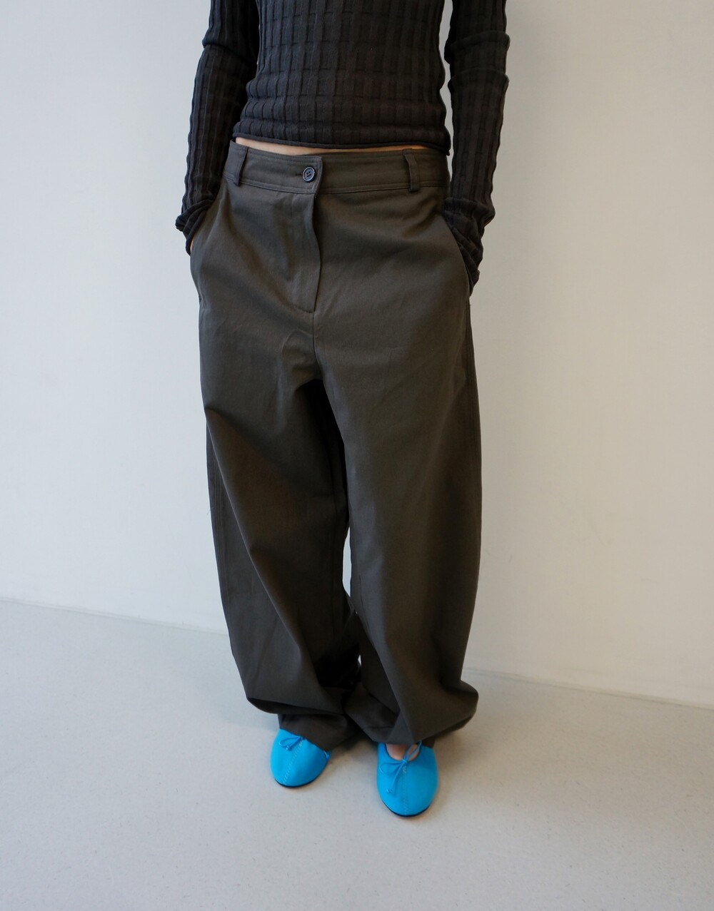 - 포켓에서부터 일직선으로 떨어지는 라인으로 각 잡힌 실루엣.