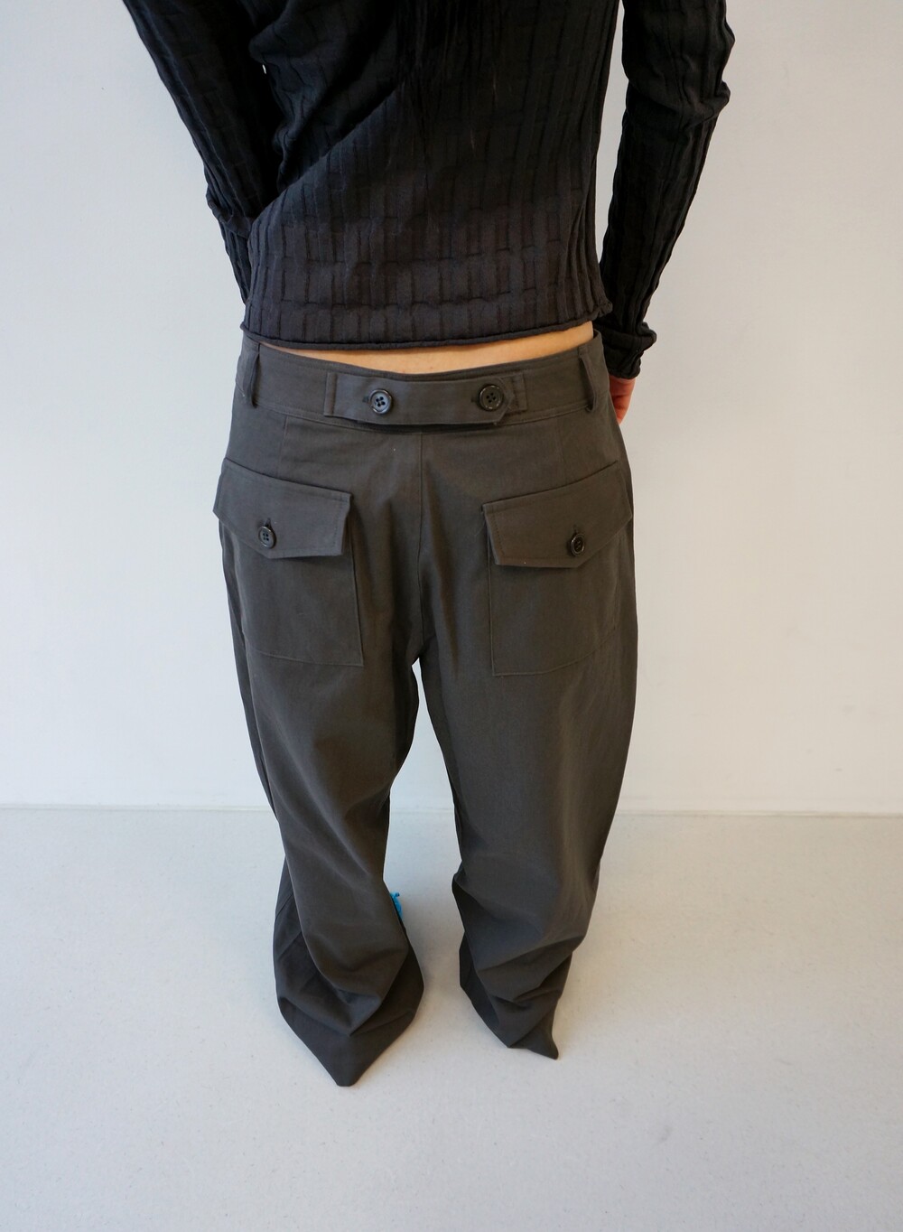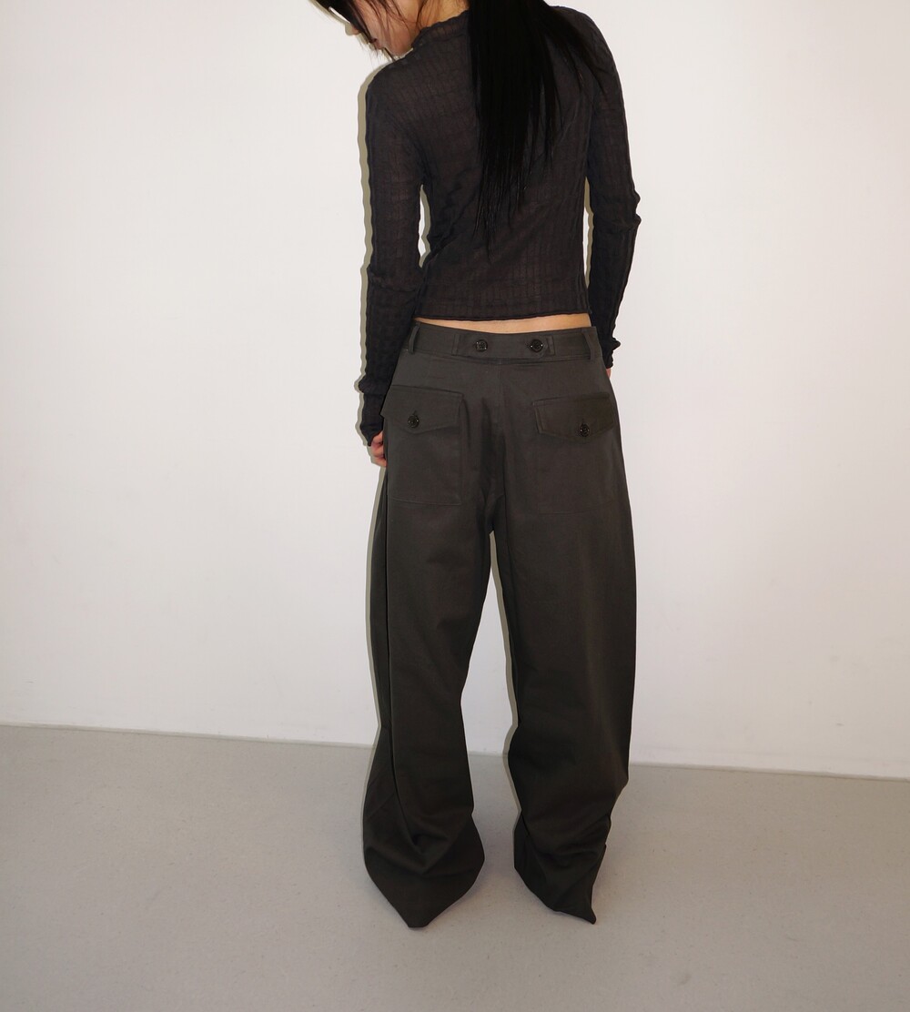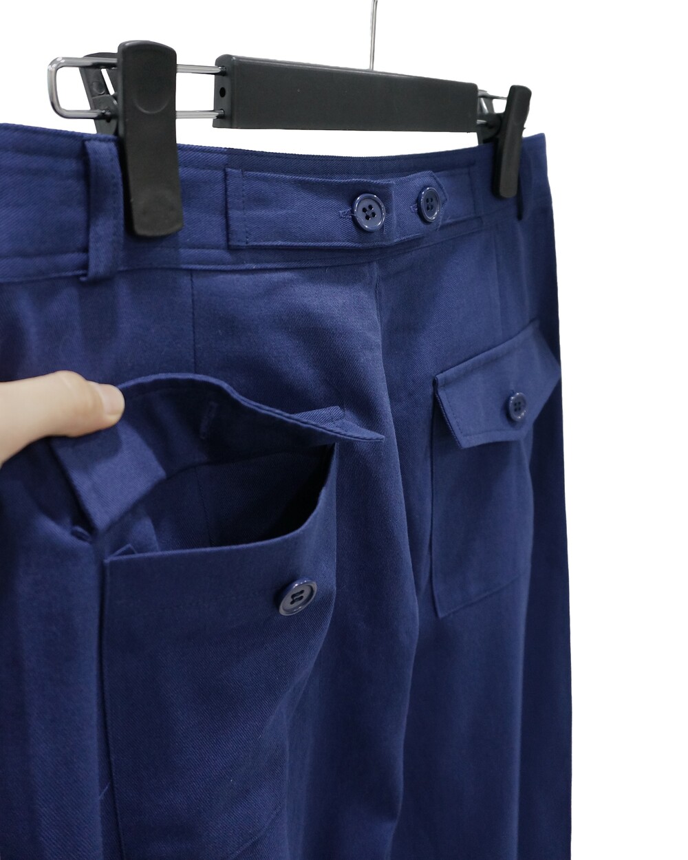 - 뒷면 허리 단추 디테일로 허리 사이즈 조절 가능.