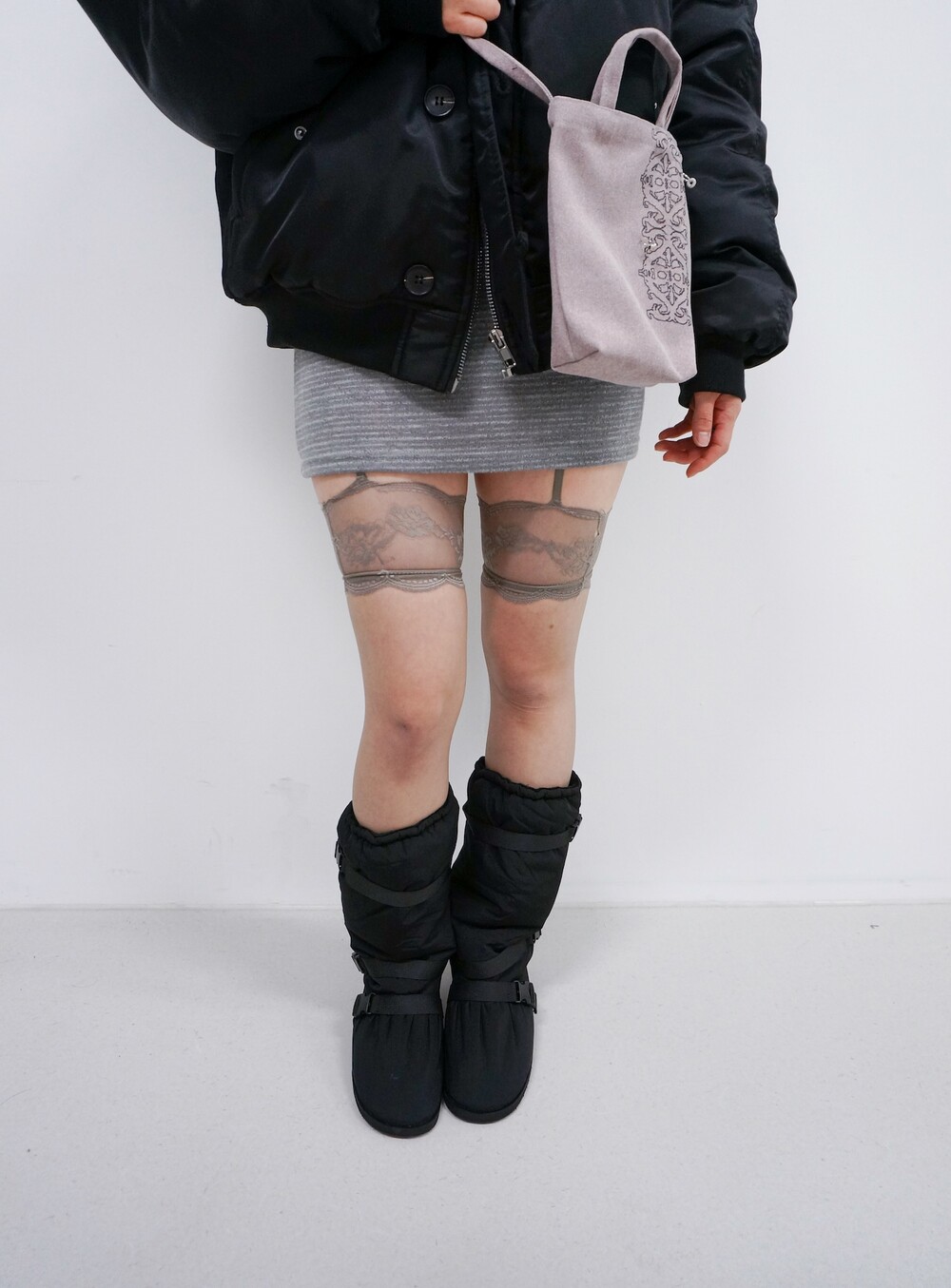- 허벅지를 넓게 감싸는 플라워패턴디테일.