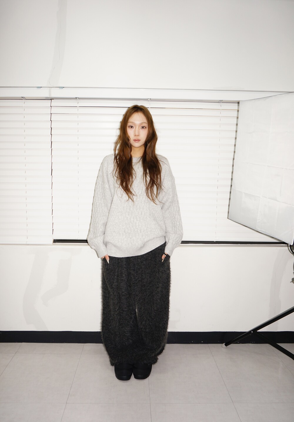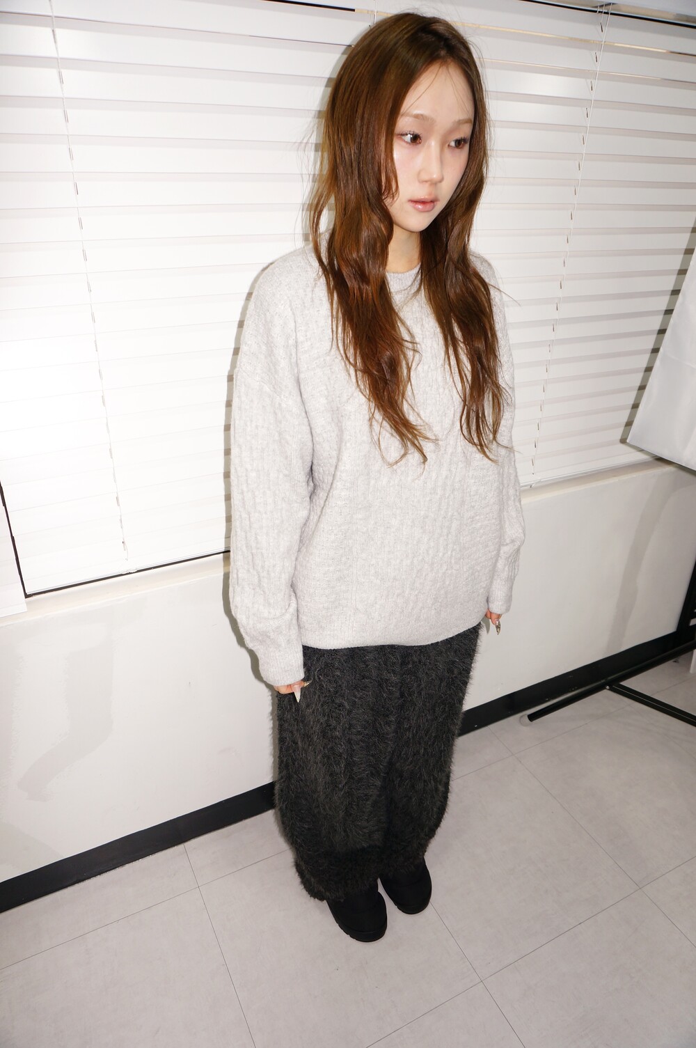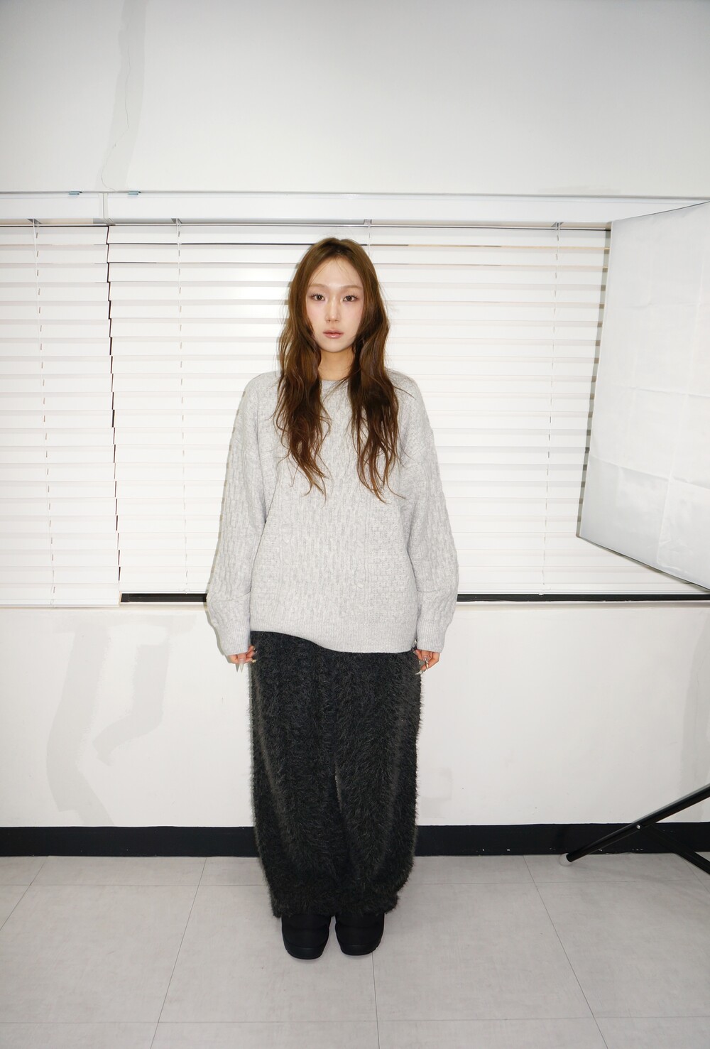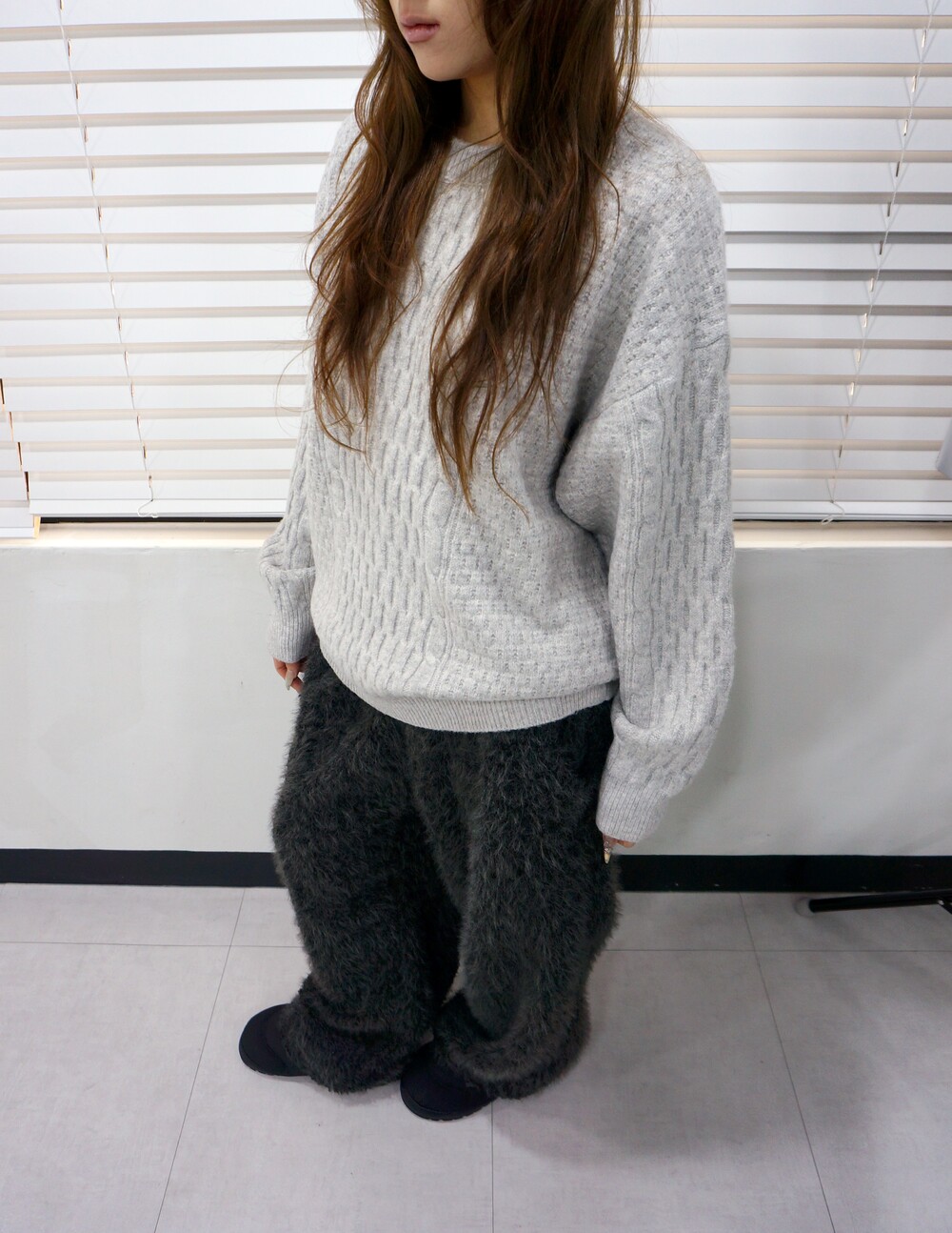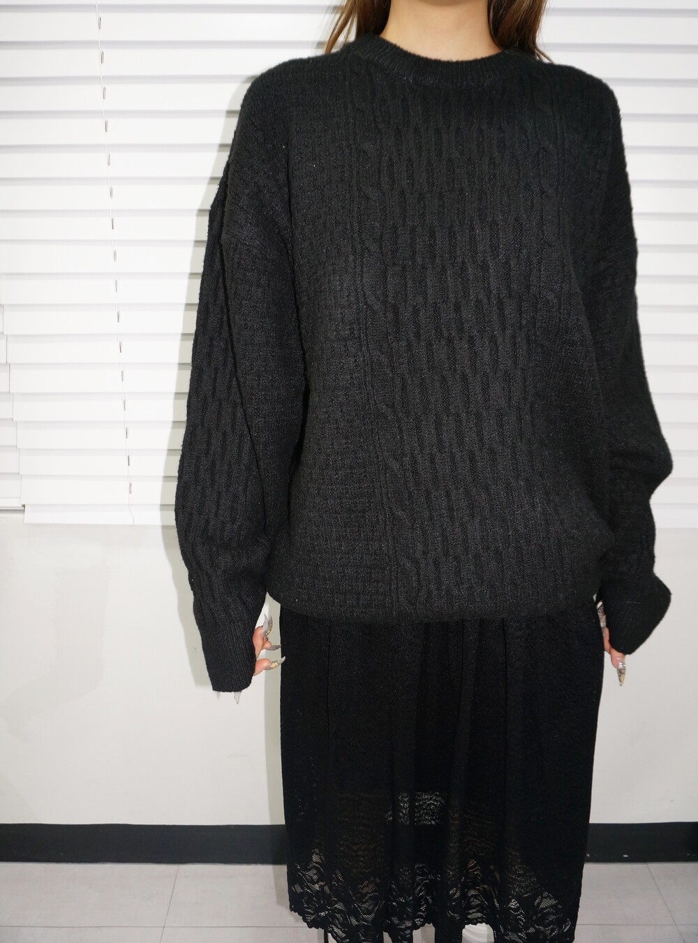 - 케이블 디테일의 오버핏 니트.