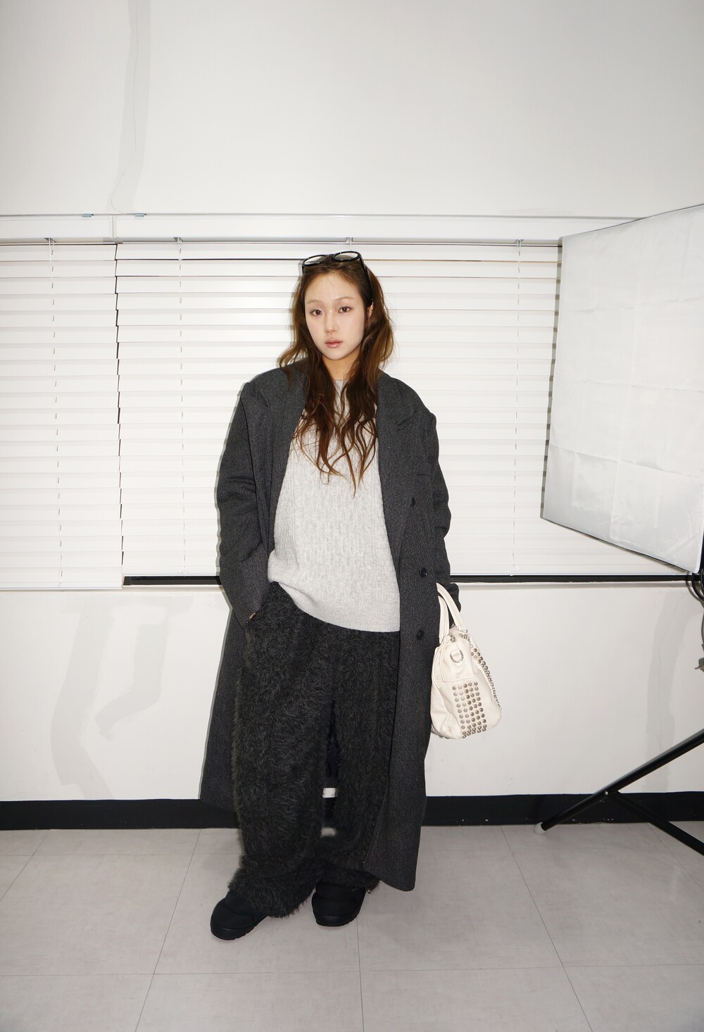 - 길게 내려오는 어깨선과 오버스러운 실루엣으로 상체 체형보완에 좋습니다.