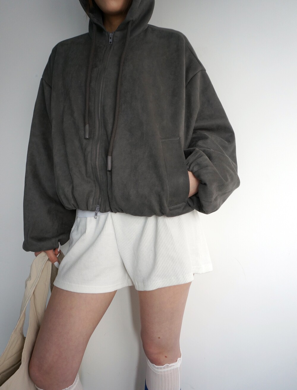 - 두께감있는 골지 소재의 쇼츠.