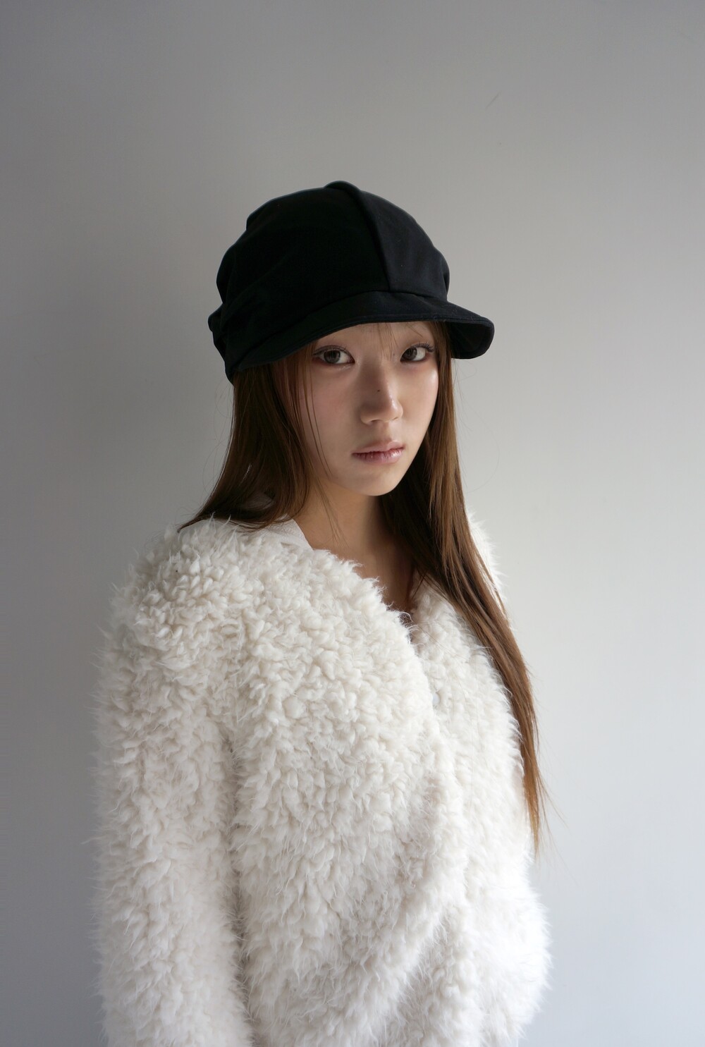 - 턱 주름이 잡힌 면 모자.