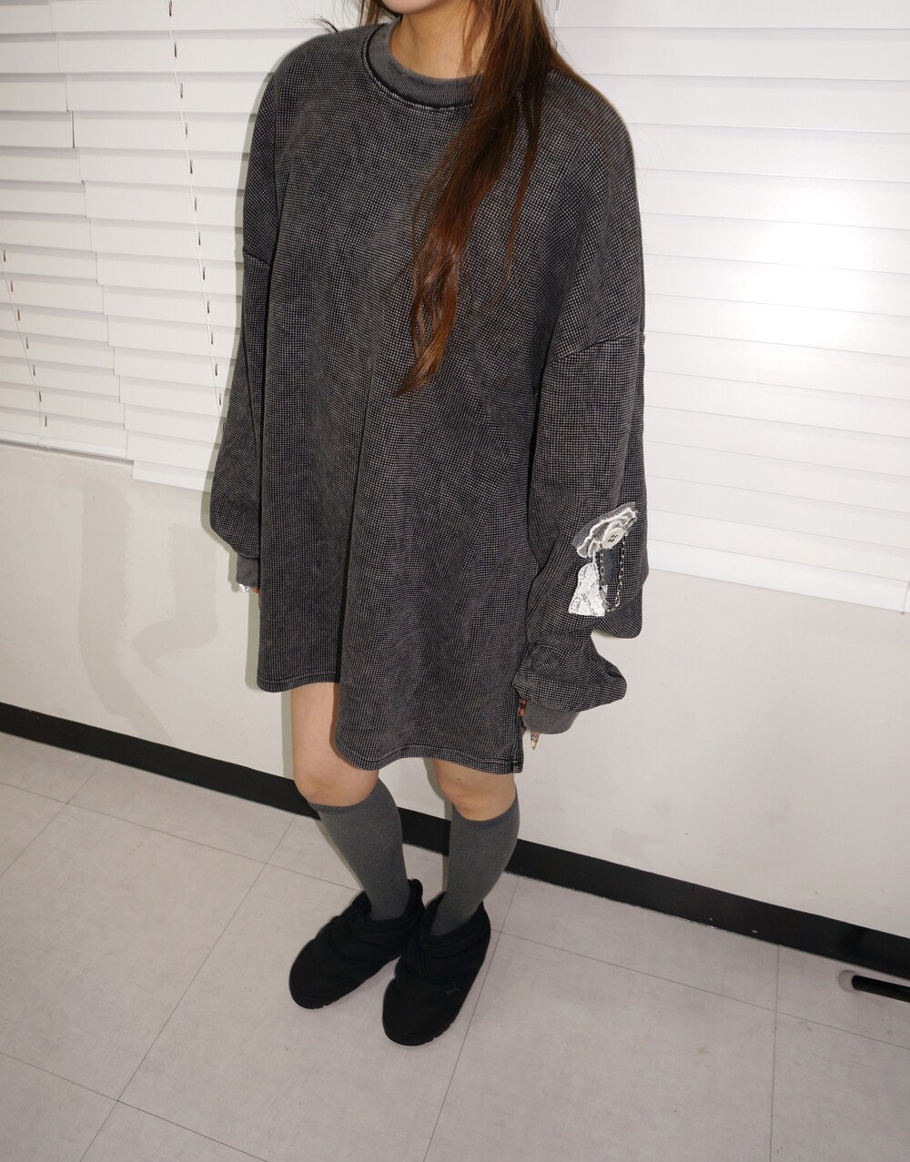 - 스톤워싱이 들어간 박스핏 슬리브.