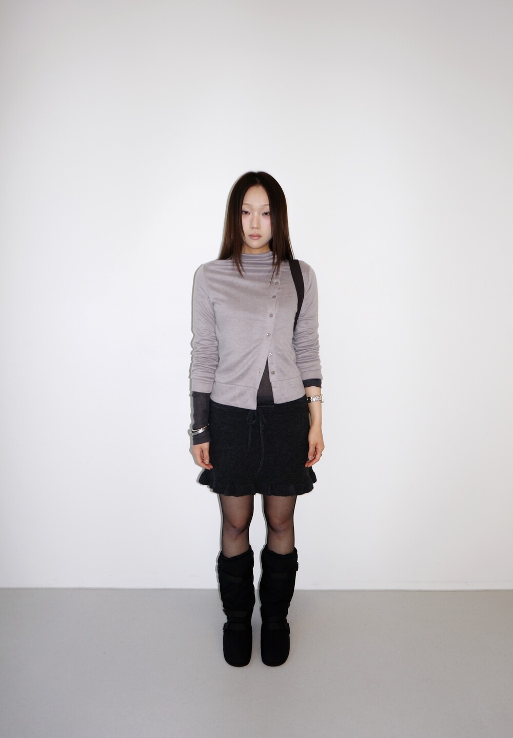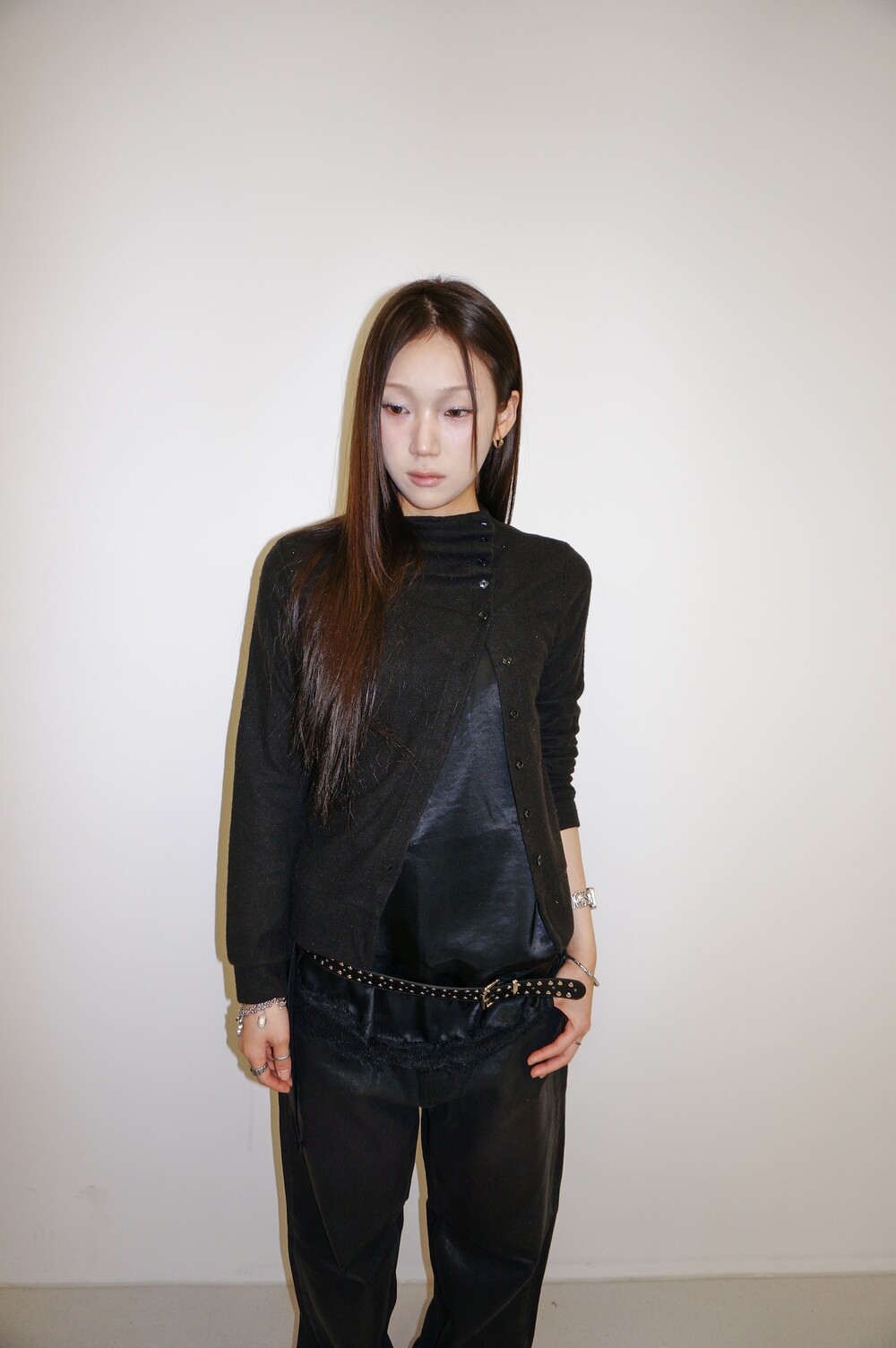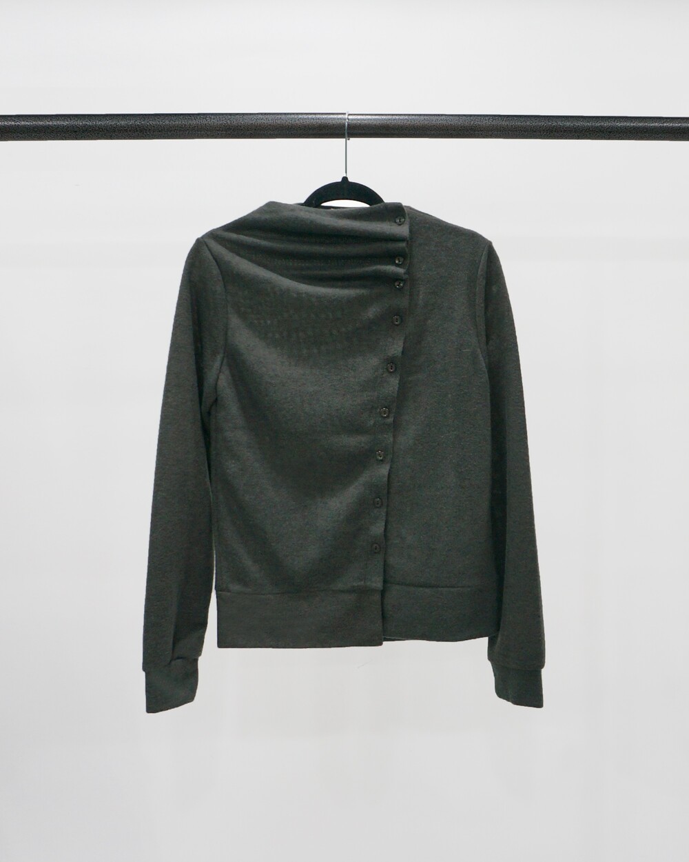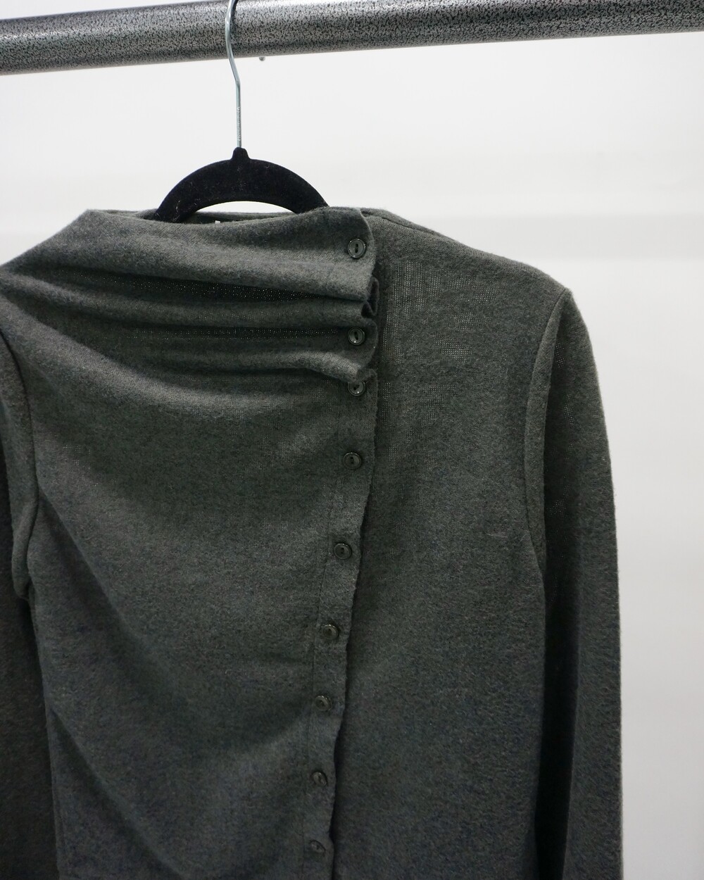 - 언발란스한 디테일로, 단추를 전부 채우면 목에서부터 흘러내리듯 주름집니다.