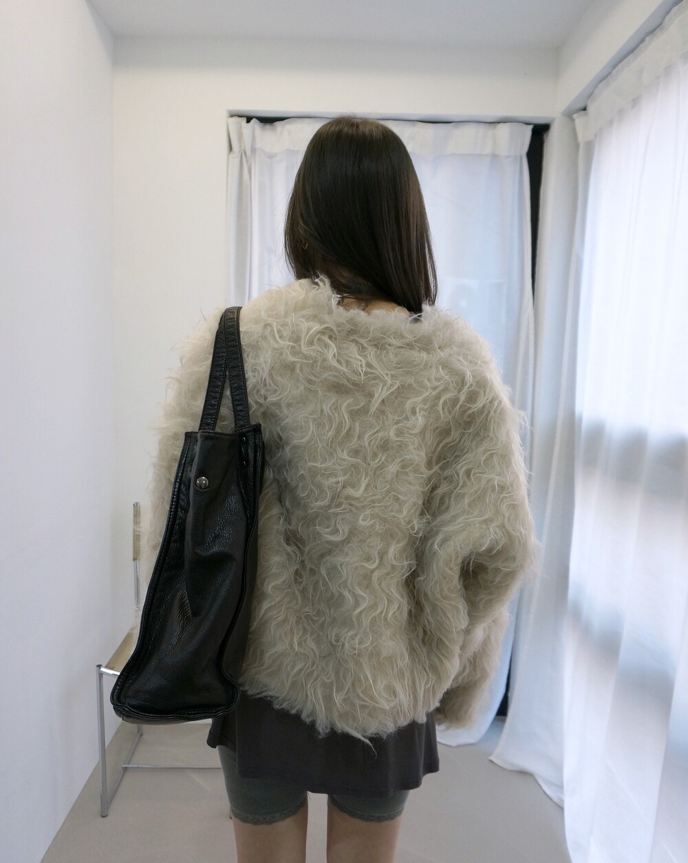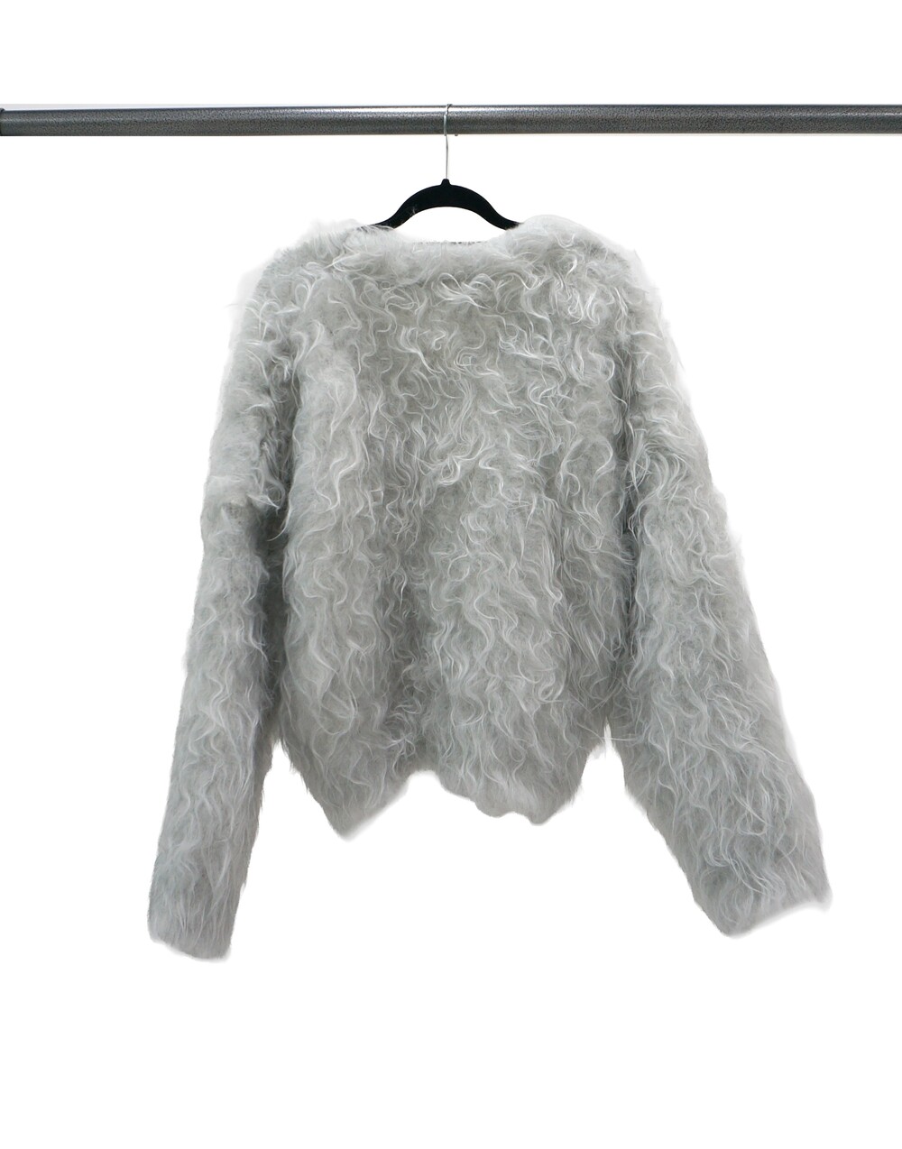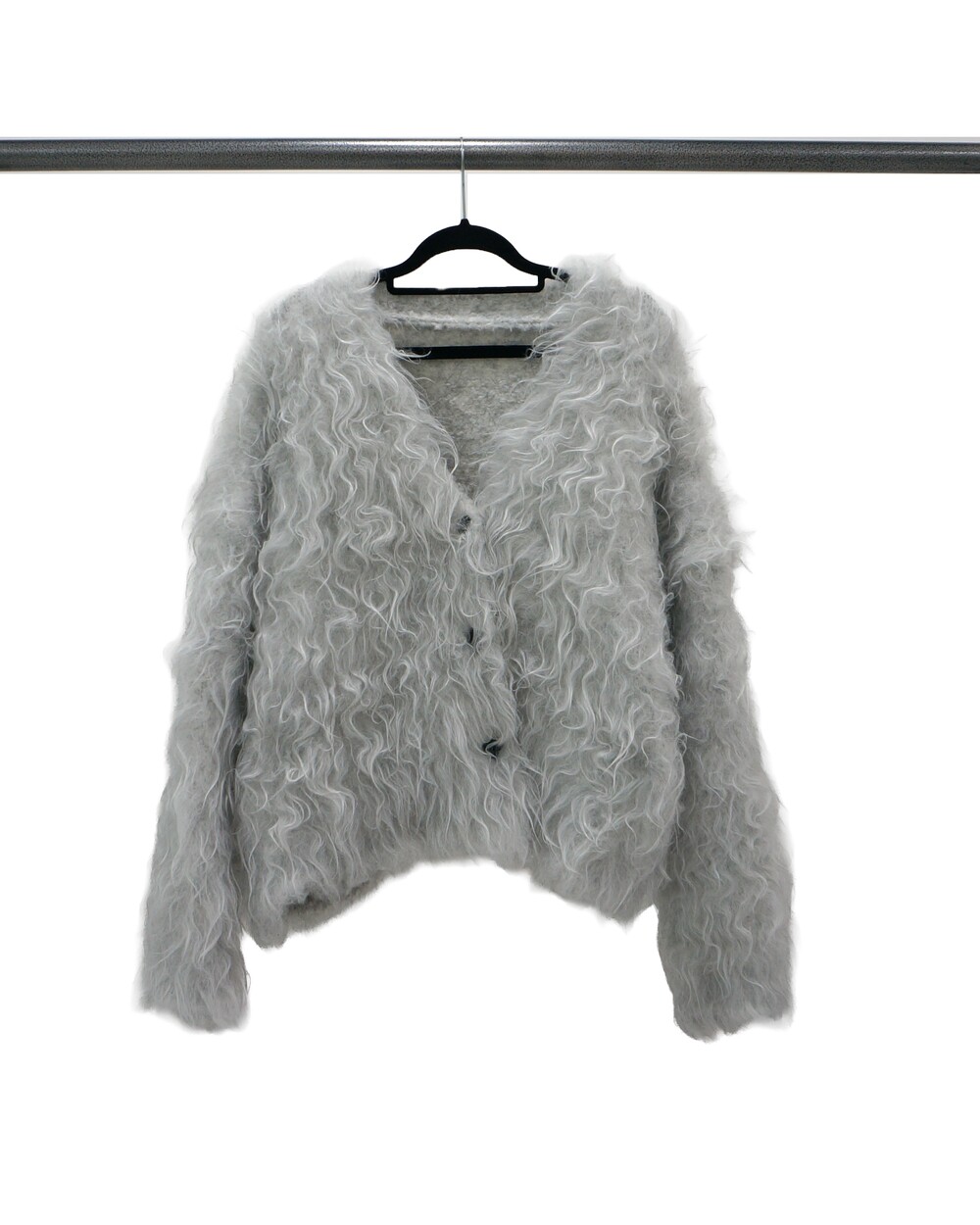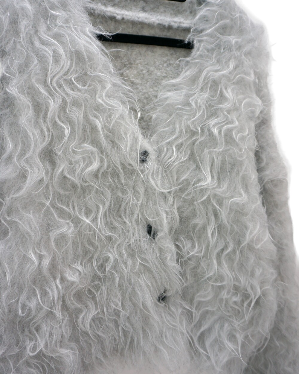 - 길이가 긴 퍼들이 뭉쳐진 텍스쳐의 가디건.