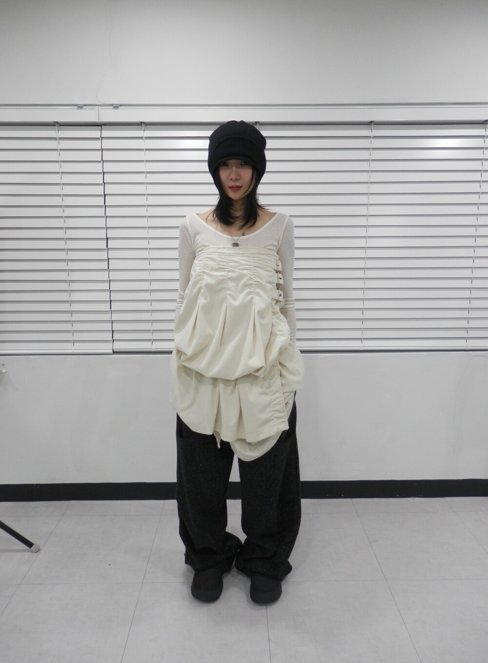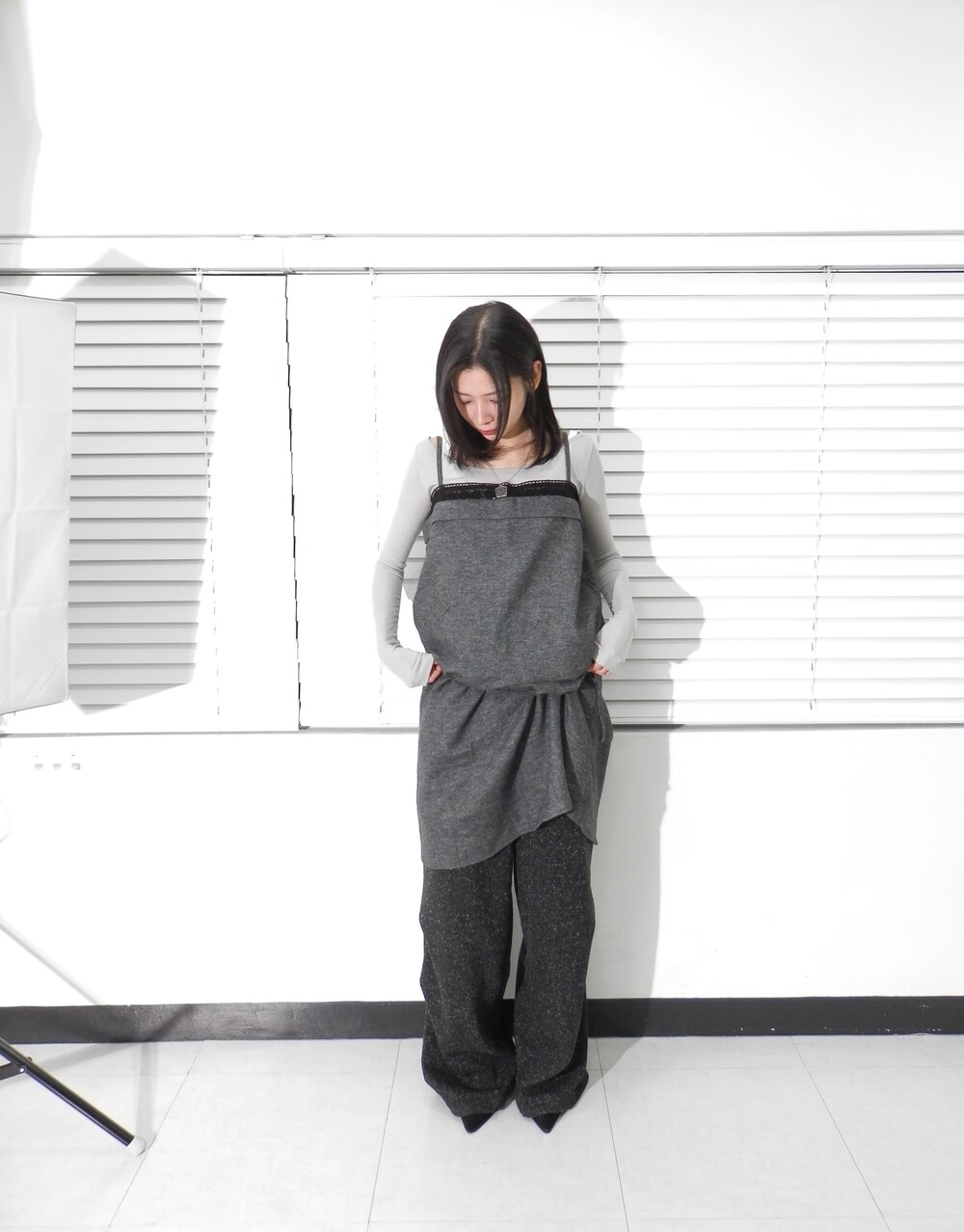 - 포켓은 볼륨감이 느껴지고, 핀턱은 흘러내리는 듯한 실루엣을 연출.