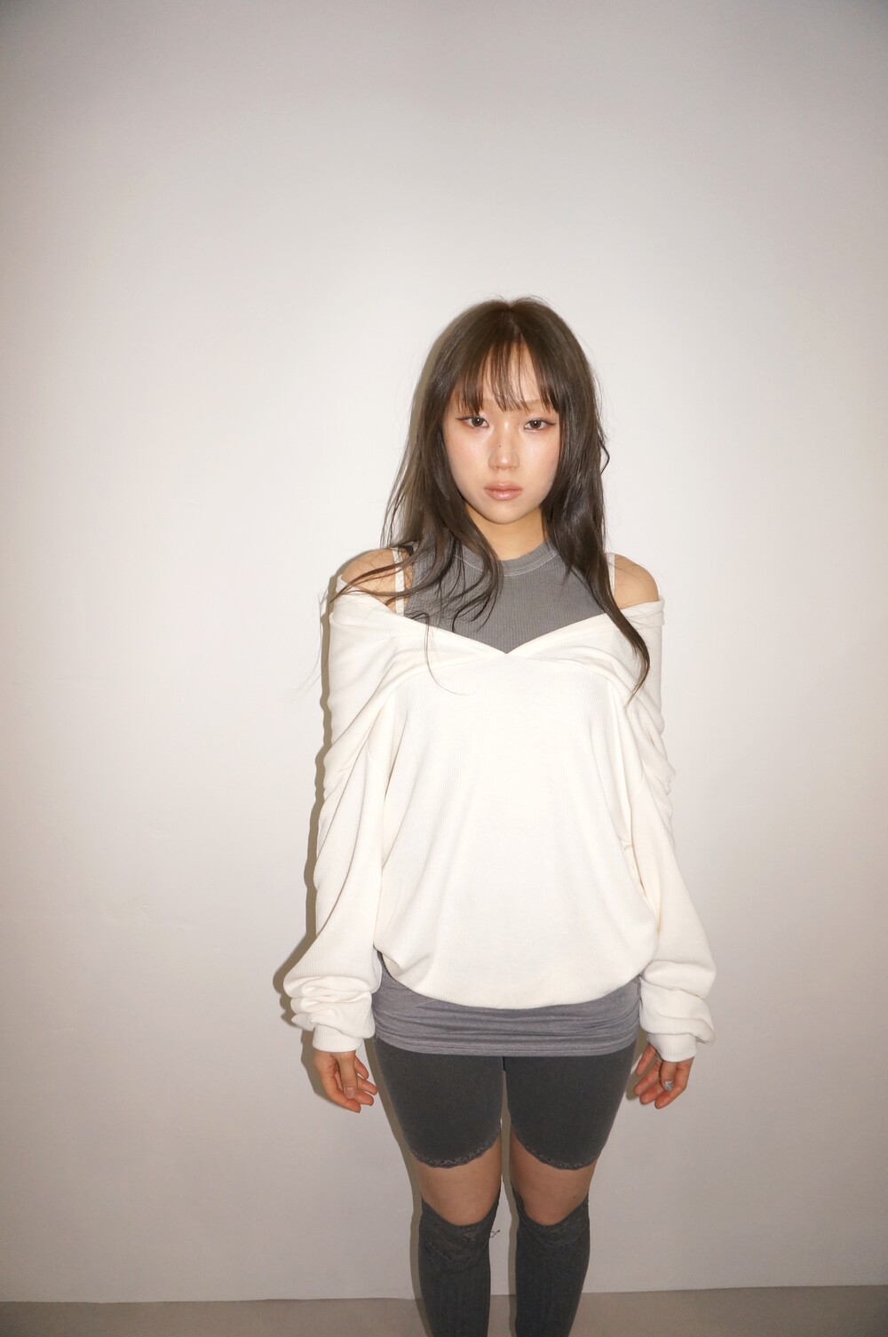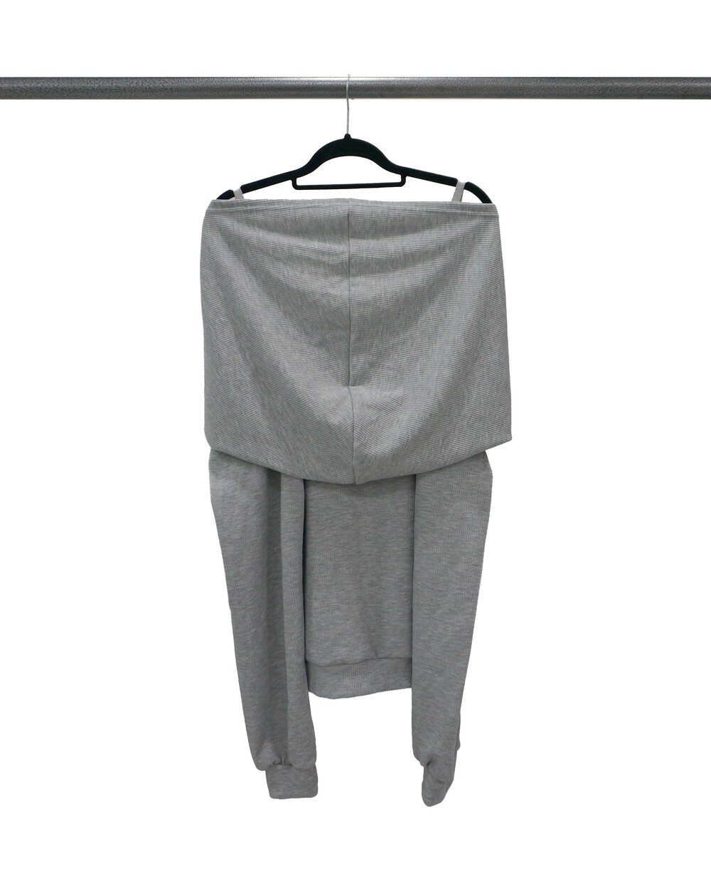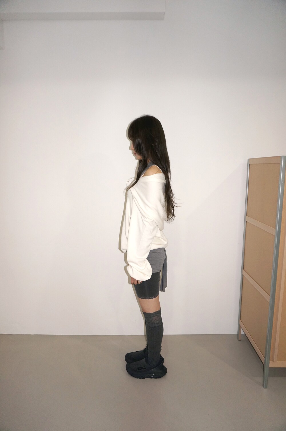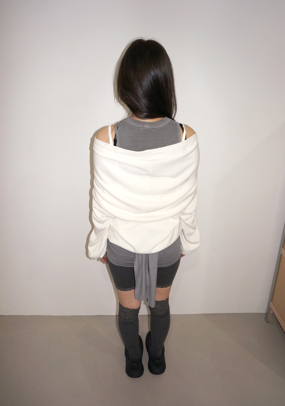 - 어깨 안쪽 끈이 숨겨진 오프숄더 후드.