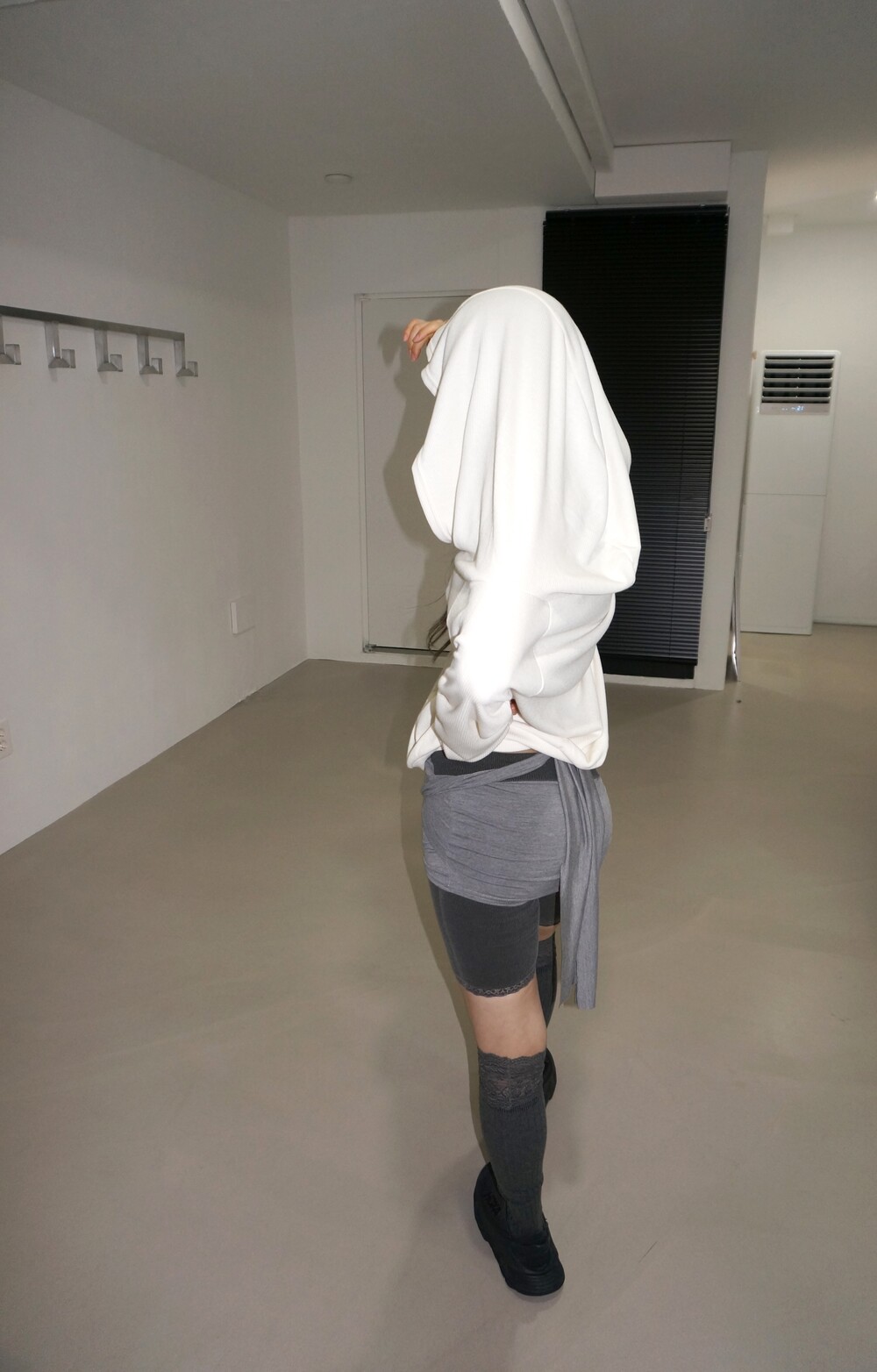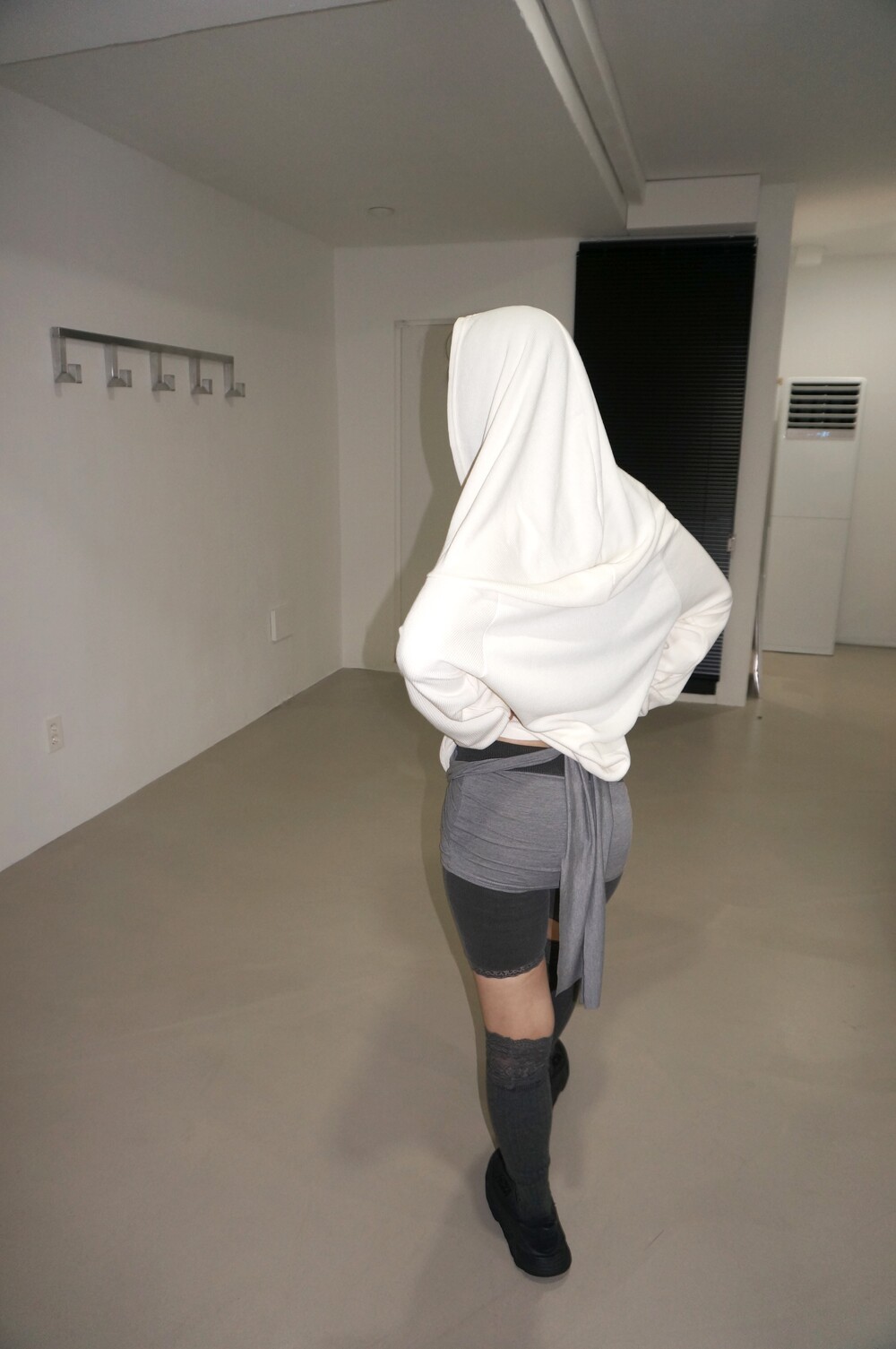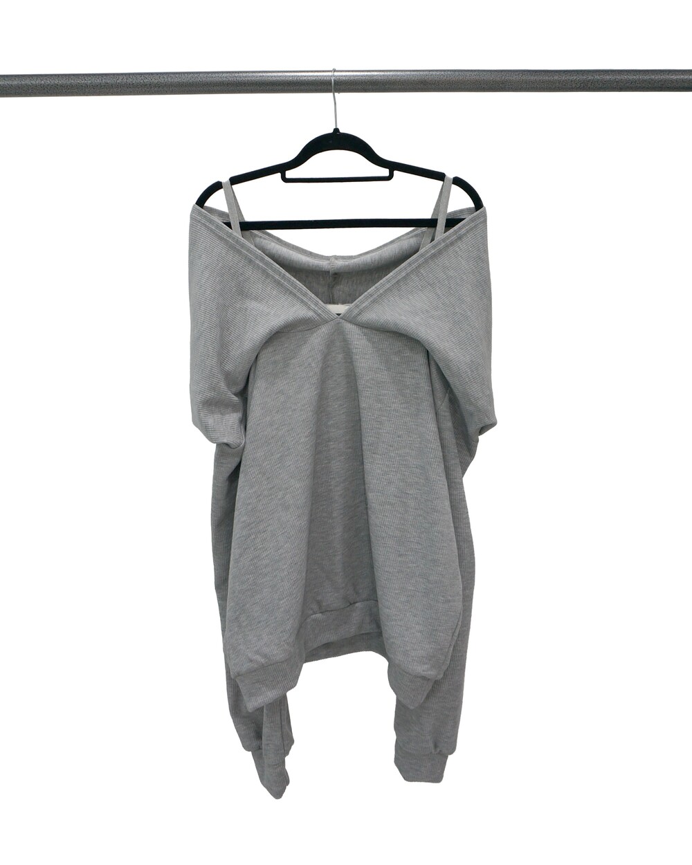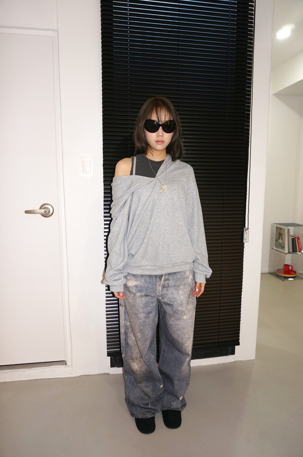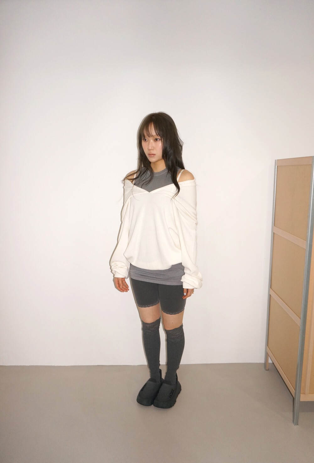 - 어깨 안쪽 끈이 숨겨진 오프숄더 후드.