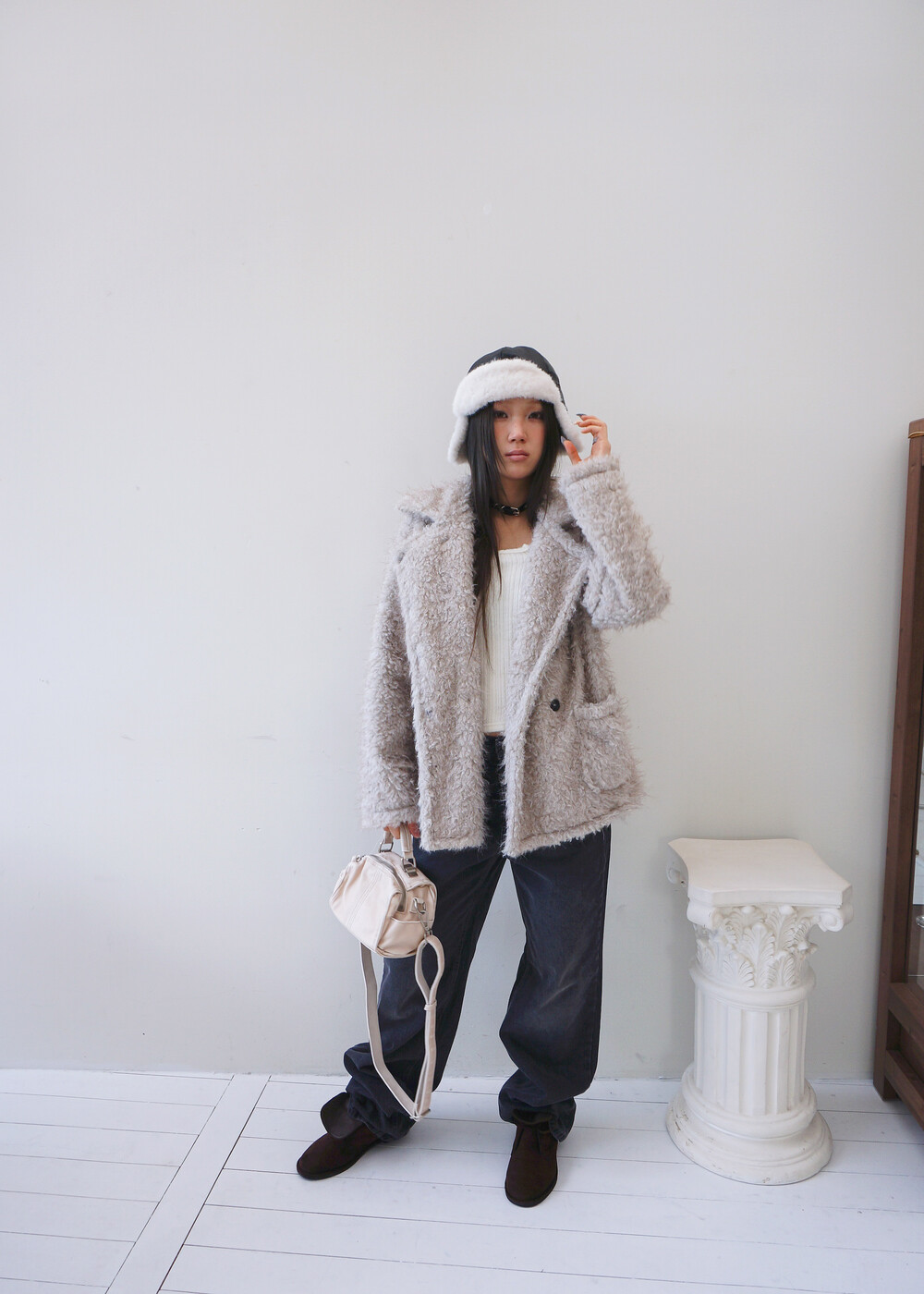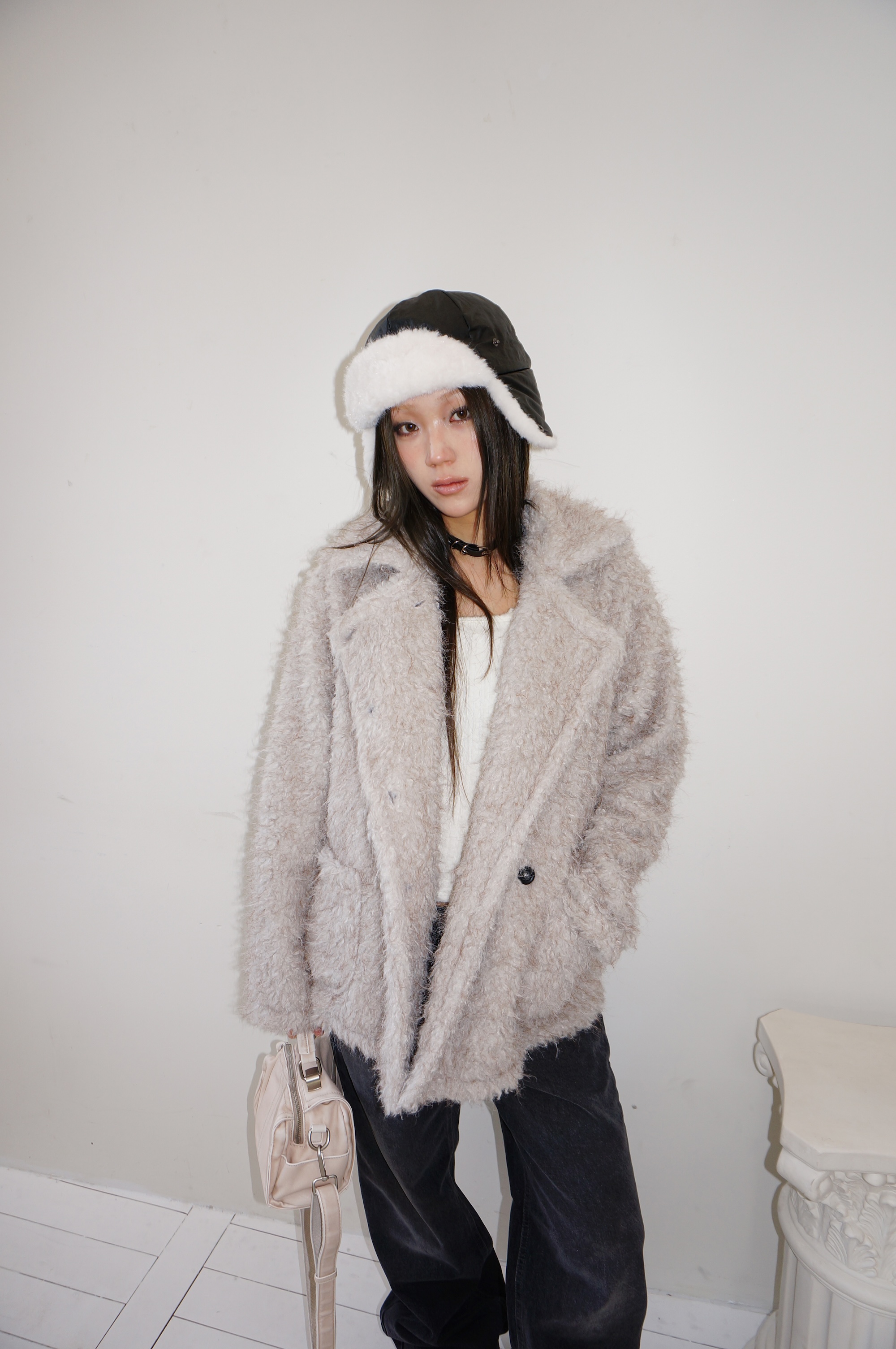 - 겉면은 광택감이 느껴져 고급스러우면서.. 다양한 착장에 활용가능했답니다...!