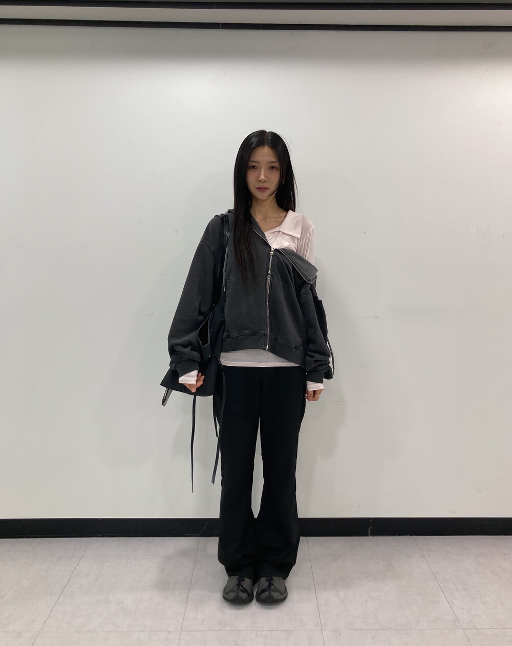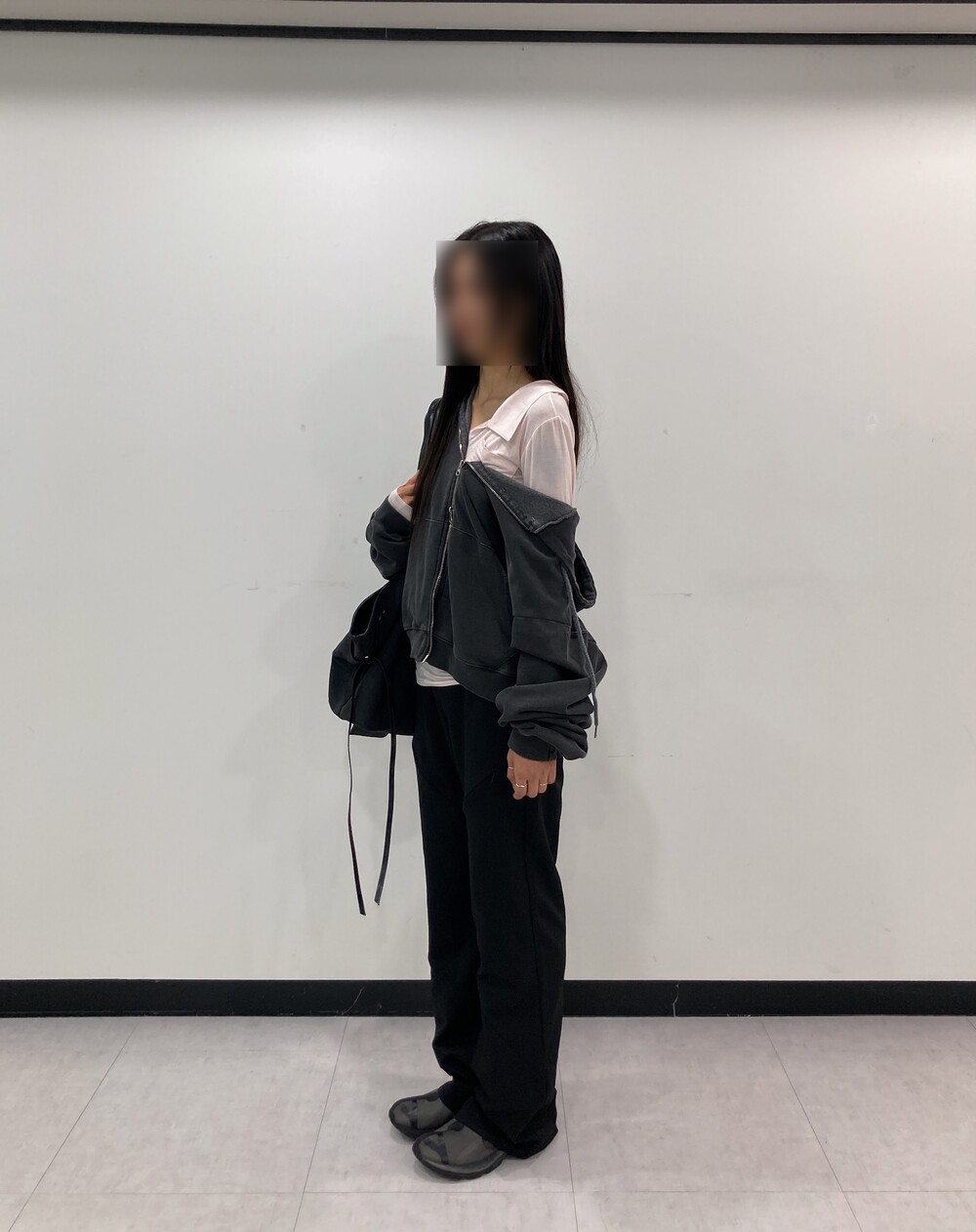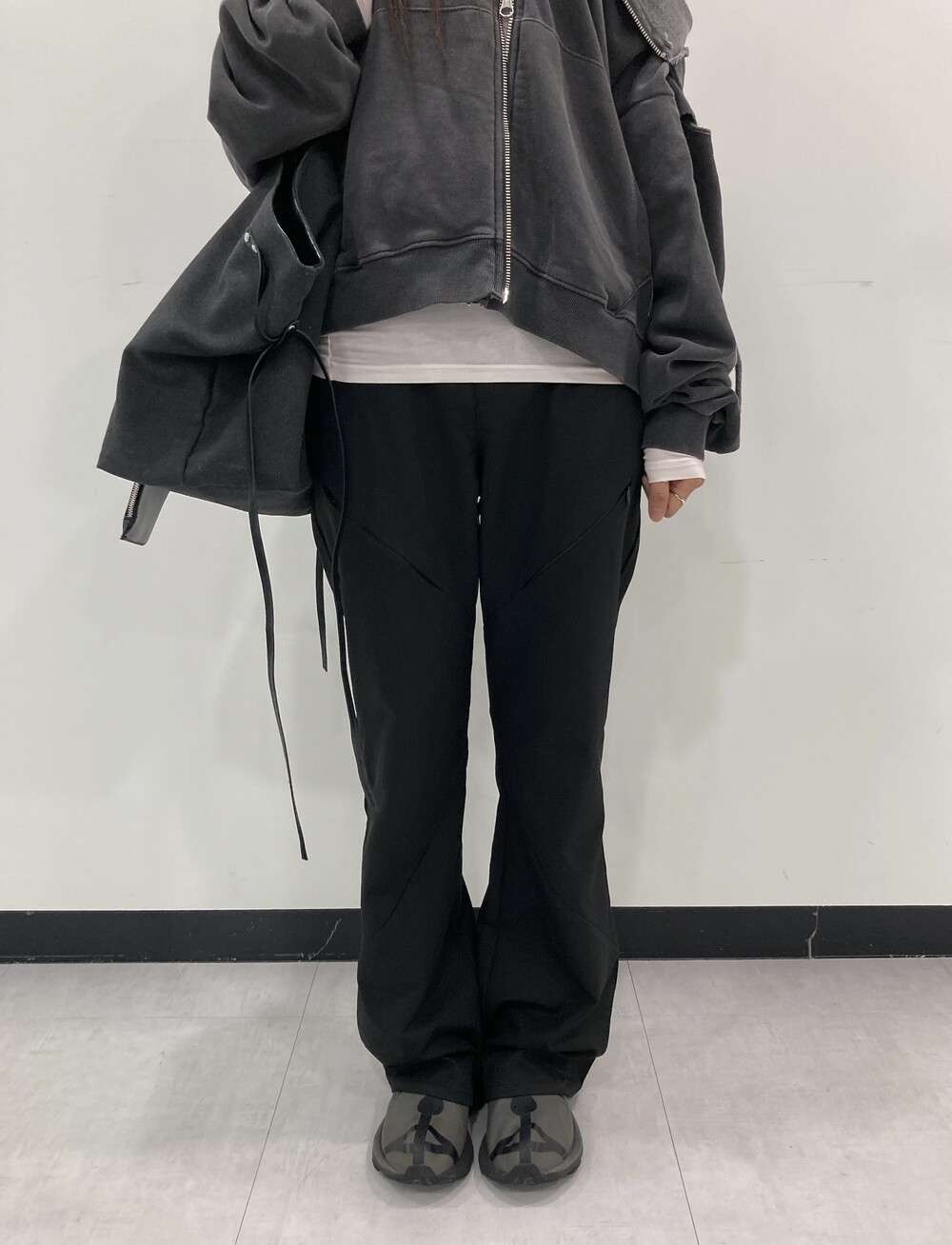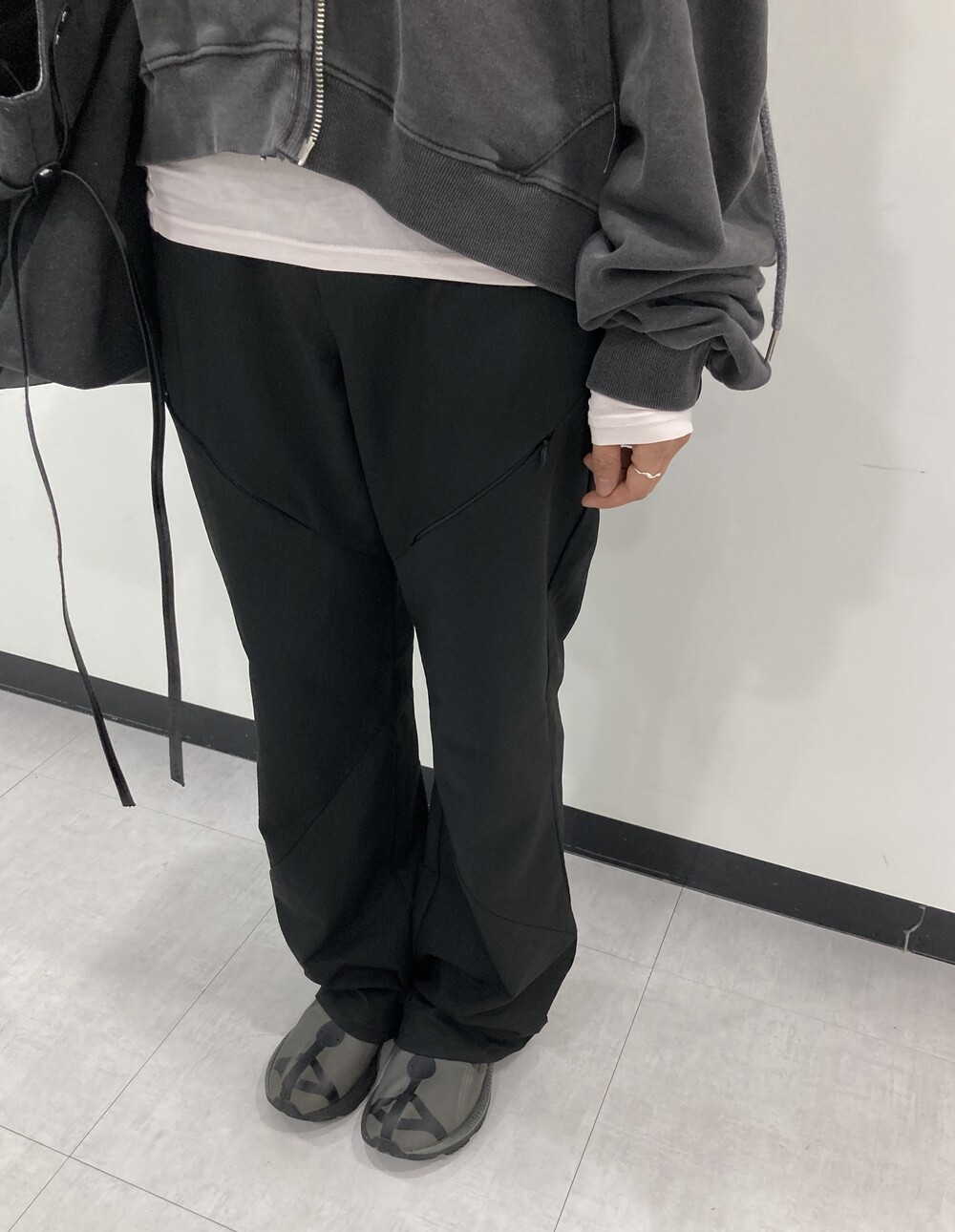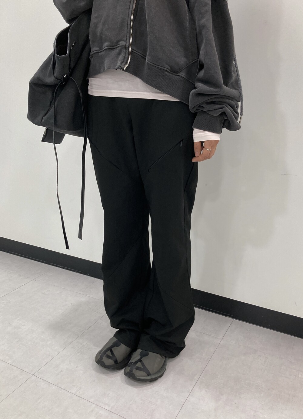 - 힙과 허벅지 라인에 지퍼 포켓 디테일.