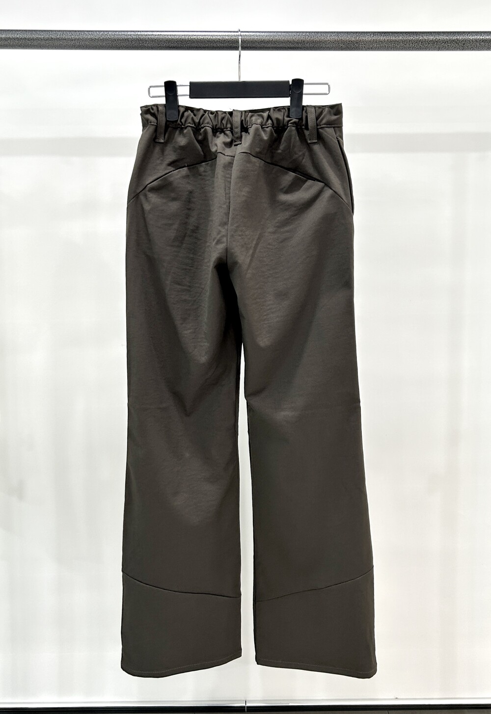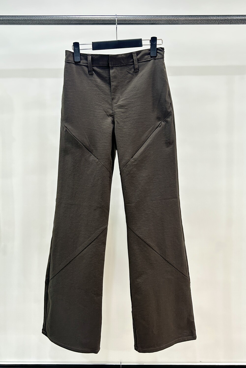 - 사선 라인 디테일의 와이드 부츠컷 팬츠.