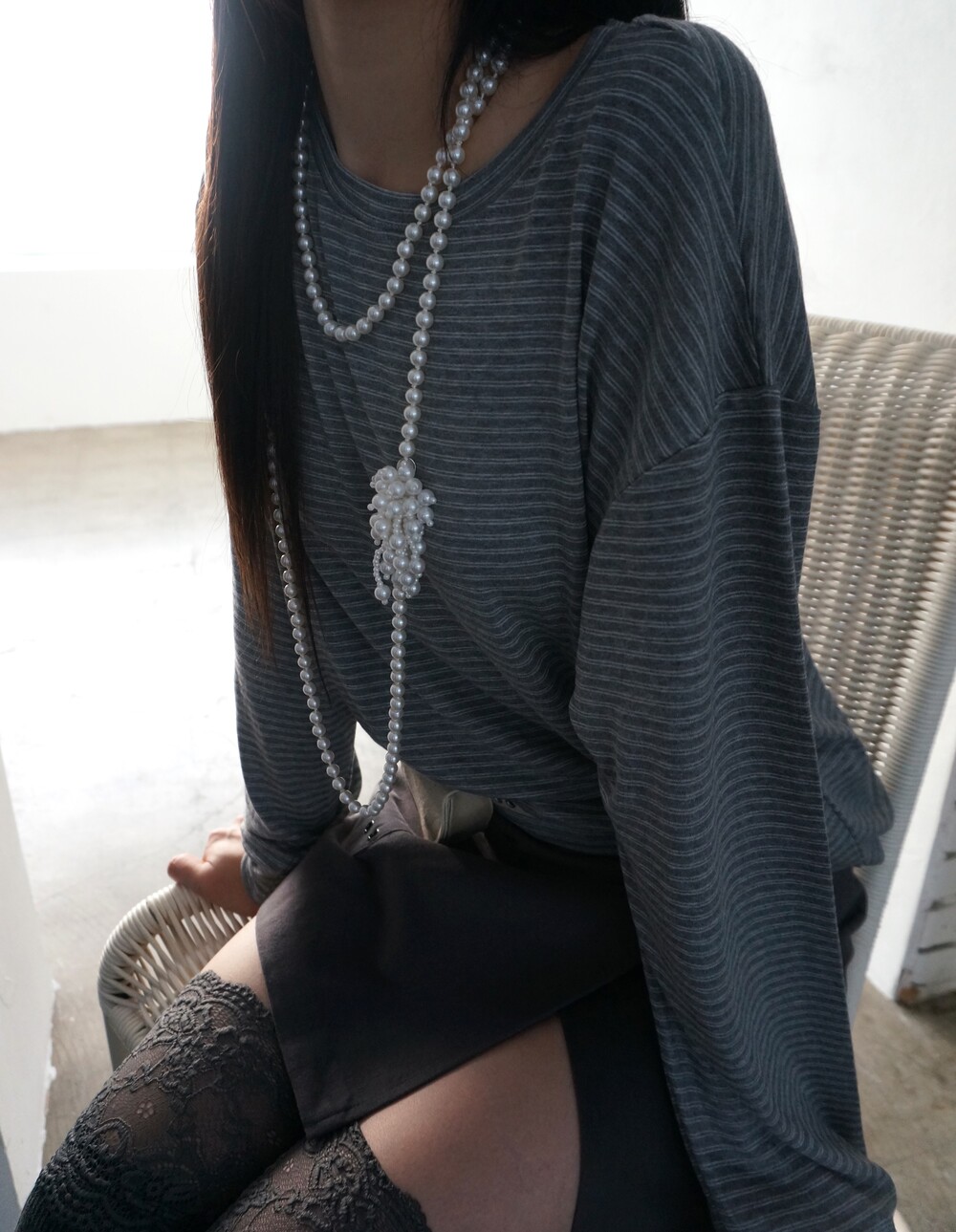 - 잔스트라이프 패턴의 루즈핏 맨투맨.