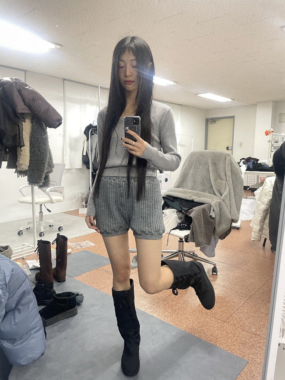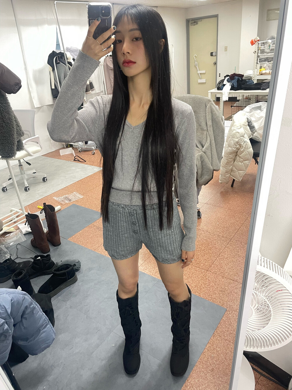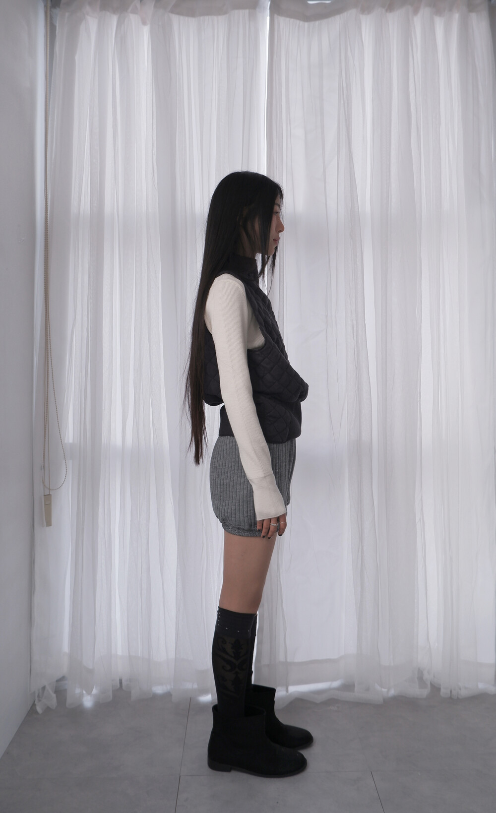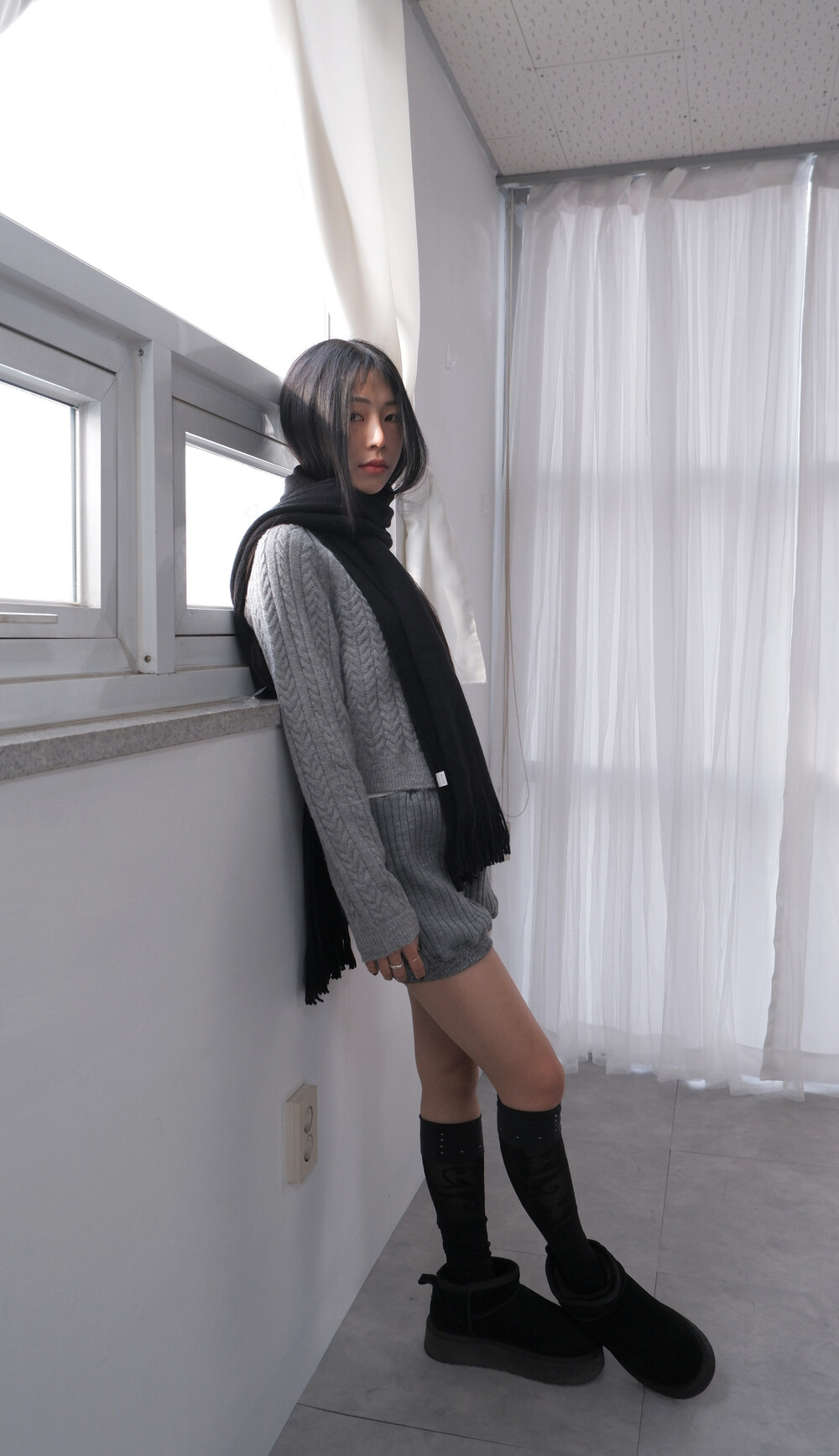 * 밑단과 소맷단 다른 짜임의 밴딩 디테일.