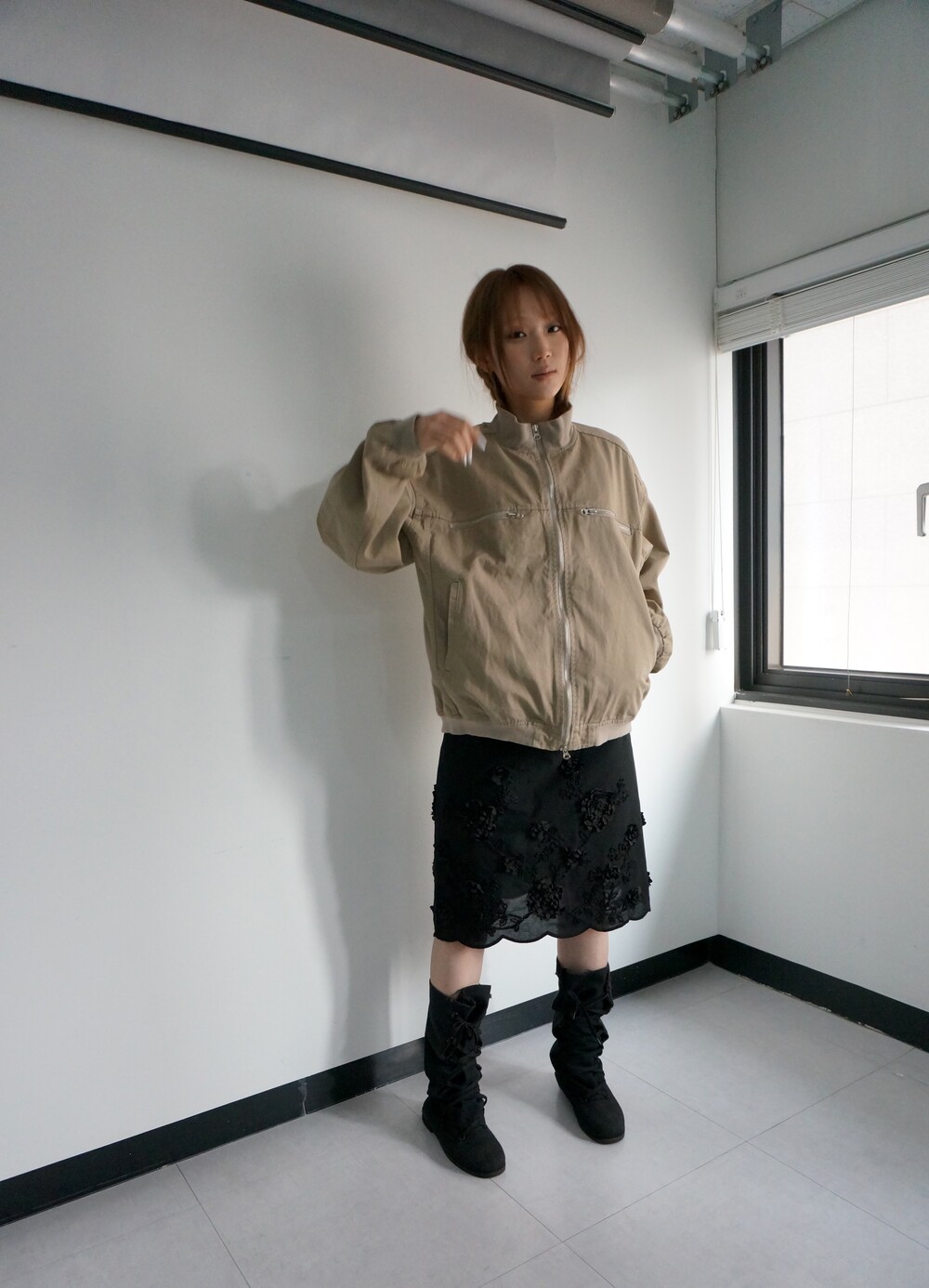 - 종아리까지 내려오는 기장으로 허리를 접어 다양한 기장 연출가능합니다.