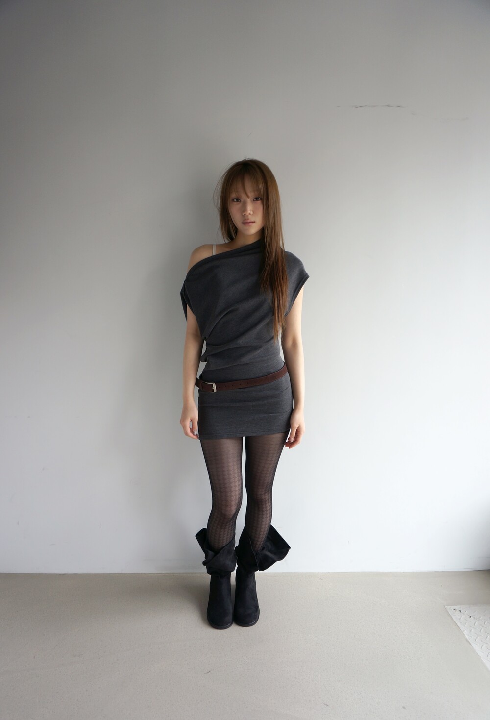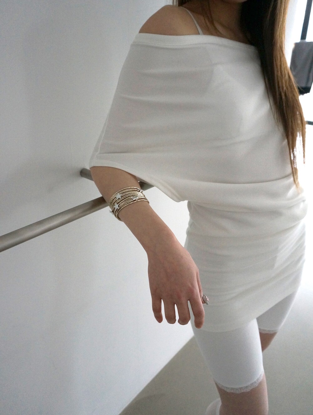 - 넓은 가오리핏의 오프숄더 원피스.