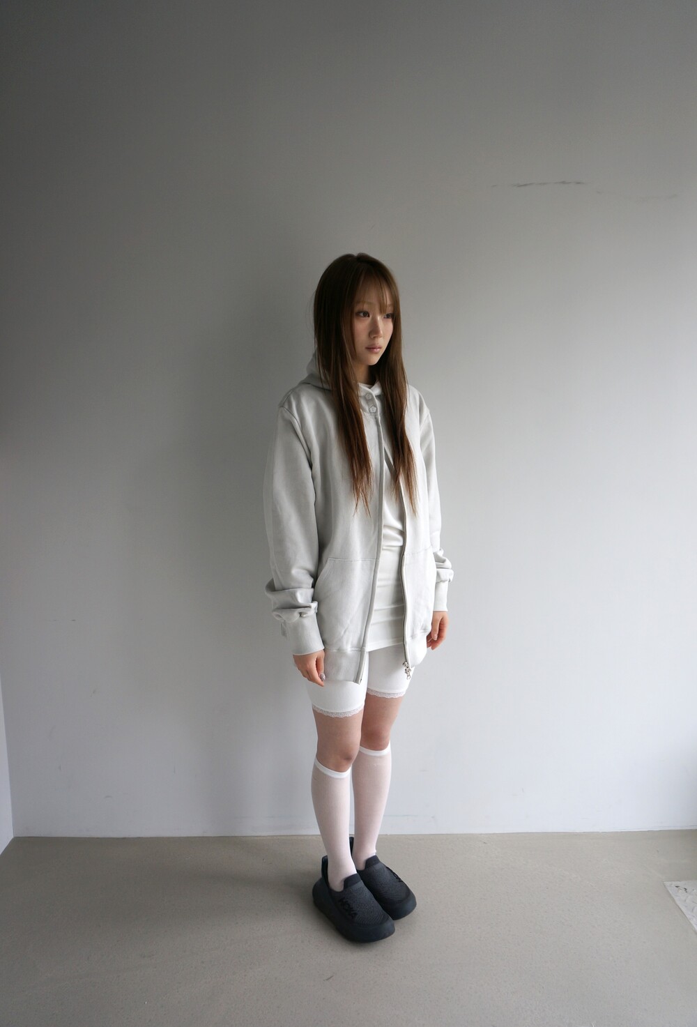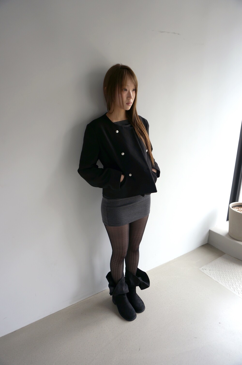 - 상체는 여유있게, 골반부터는 타이트하게 잡아주는 실루엣.