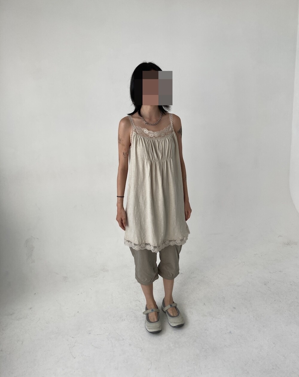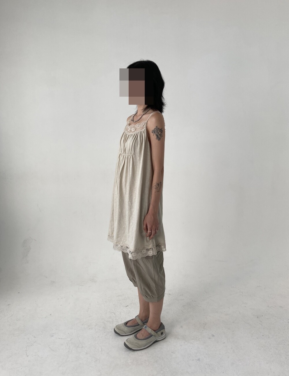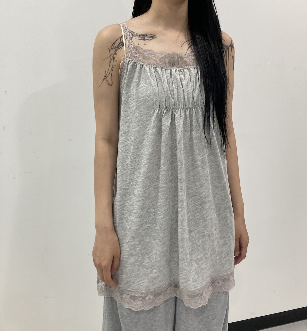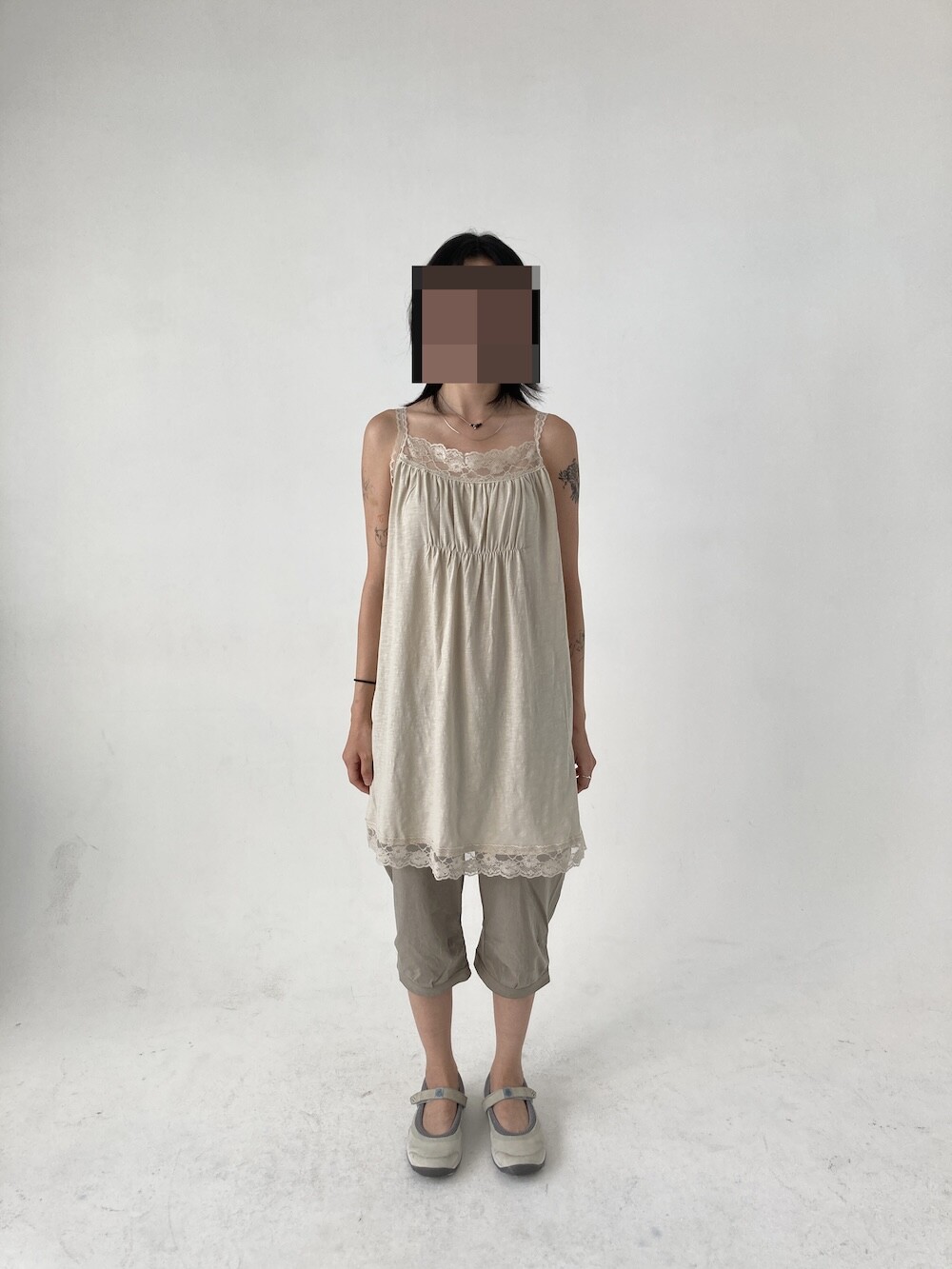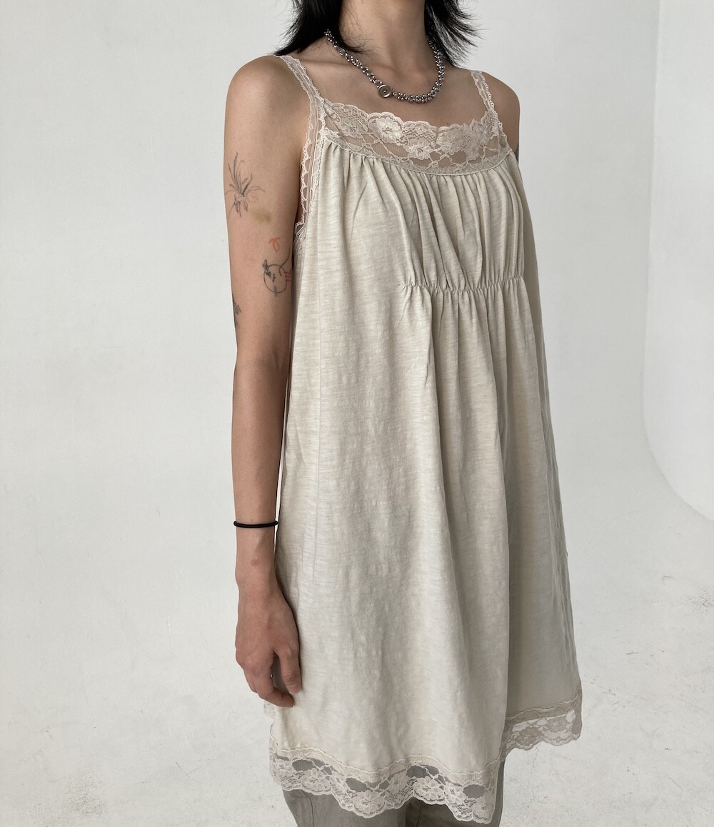 - 모리걸을 연상시키는 레이스 트리밍 디테일의 나시 원피스.