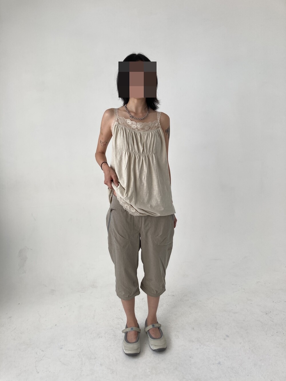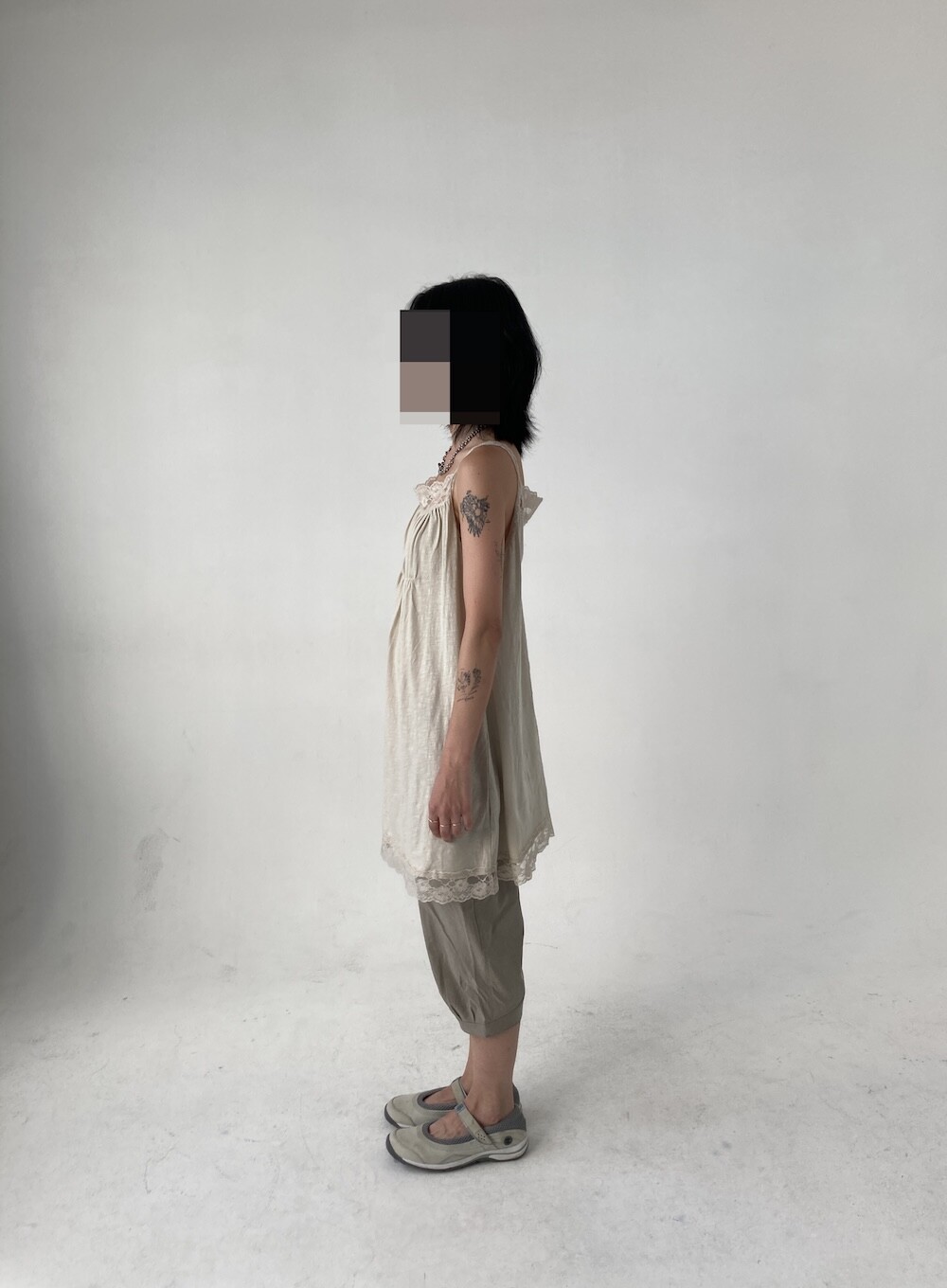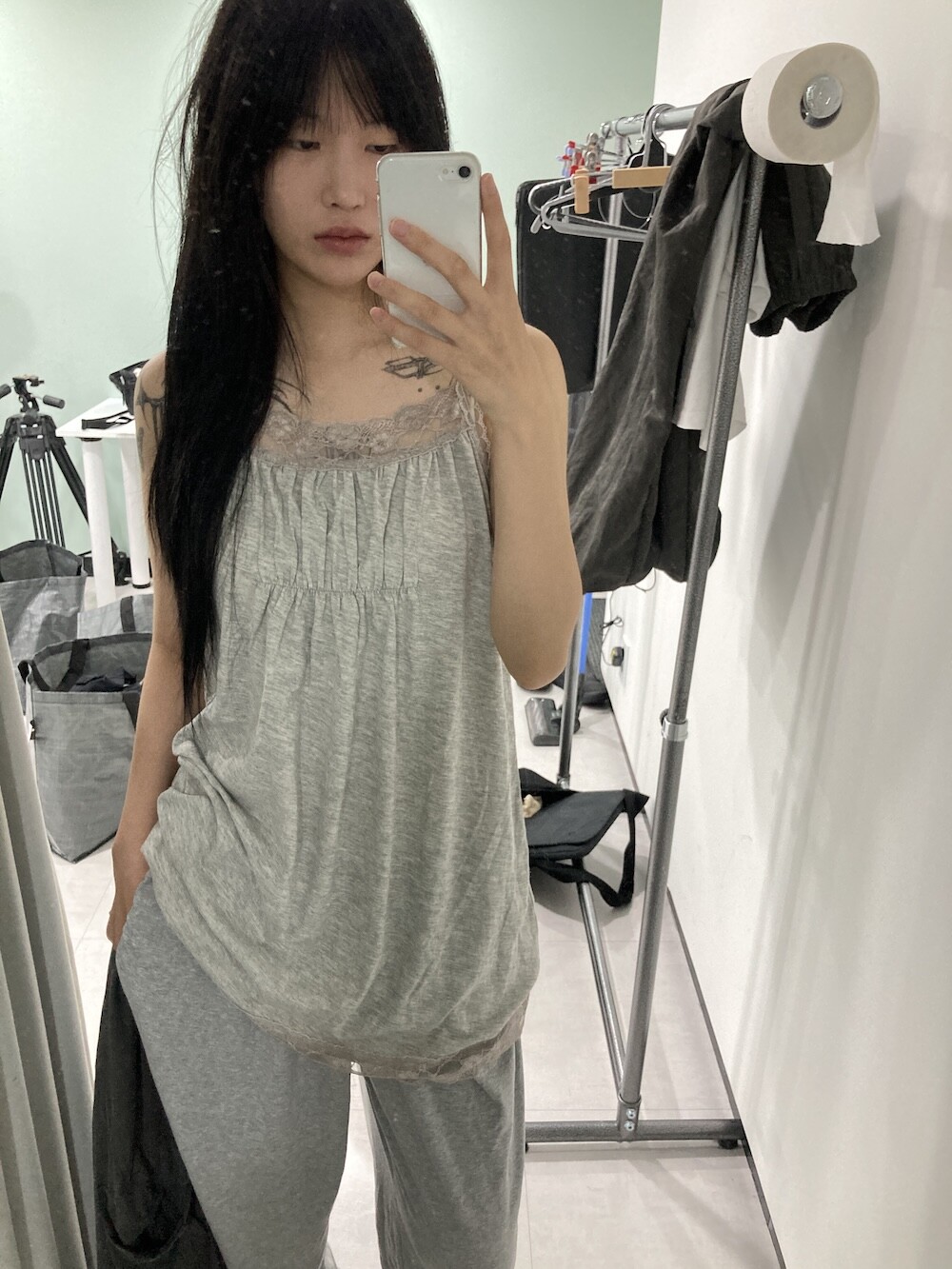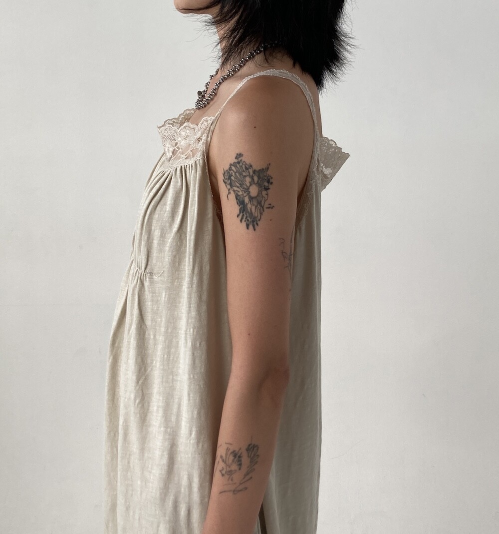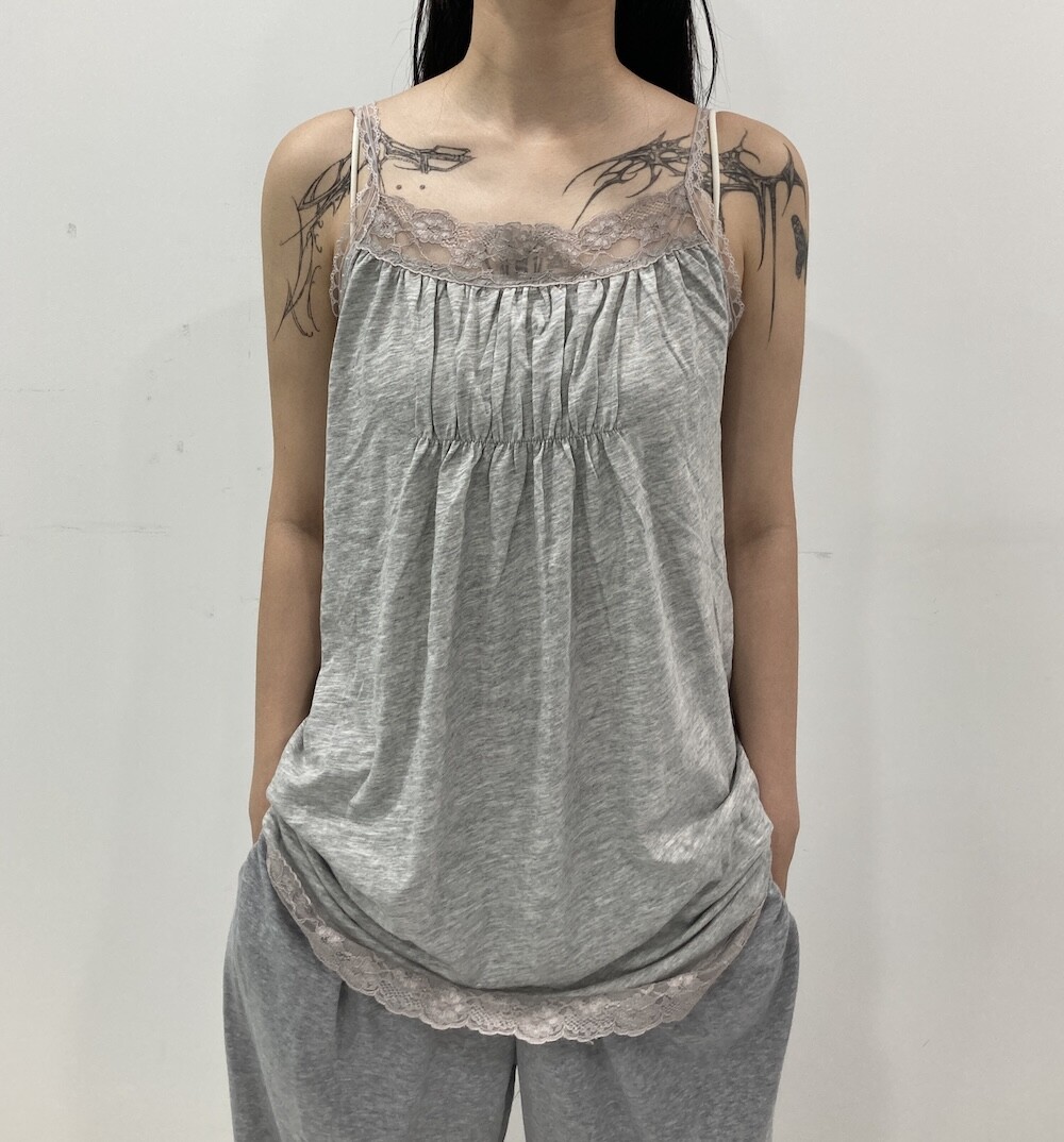 - 모리걸을 연상시키는 레이스 트리밍 디테일의 나시 원피스.