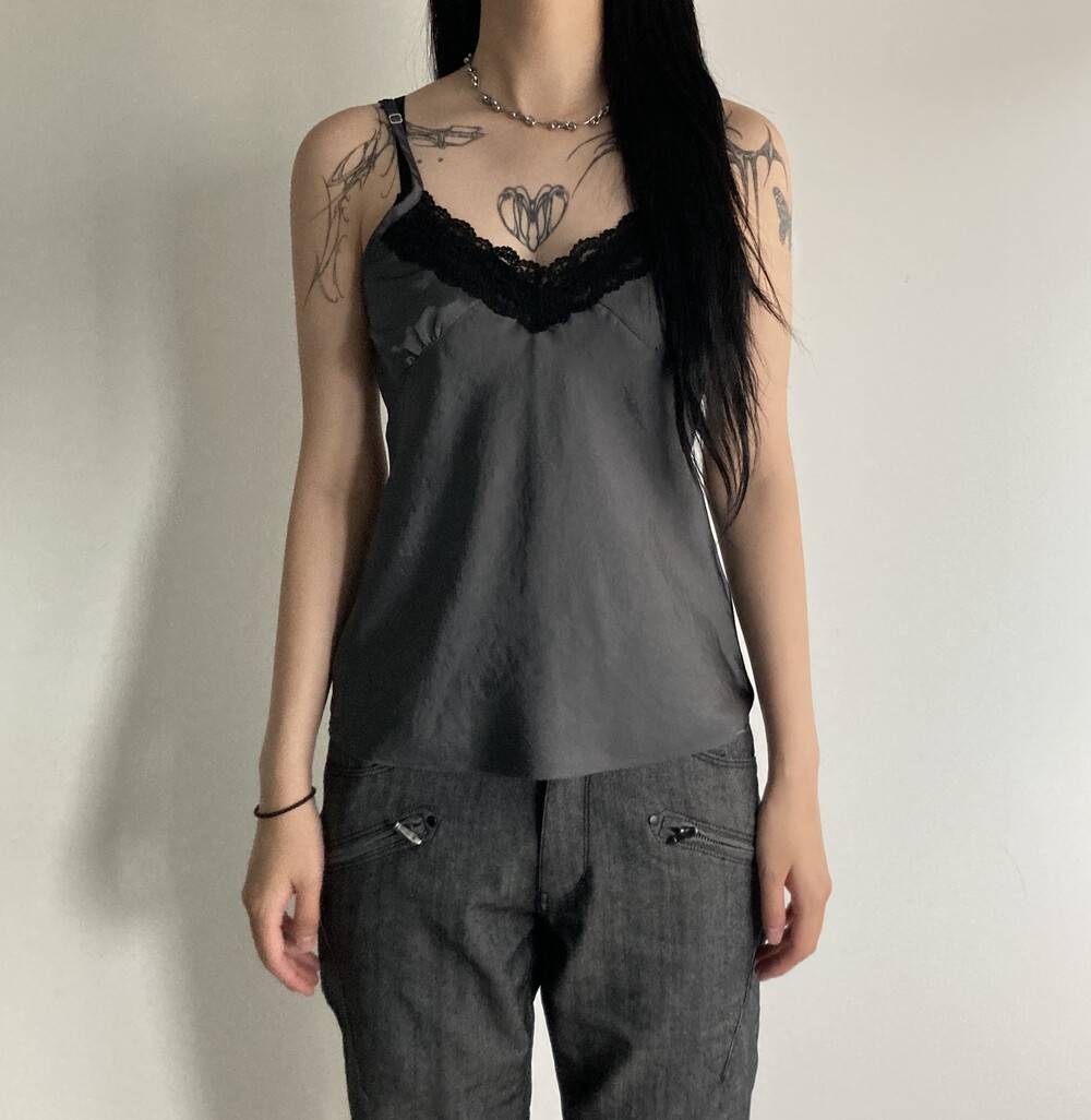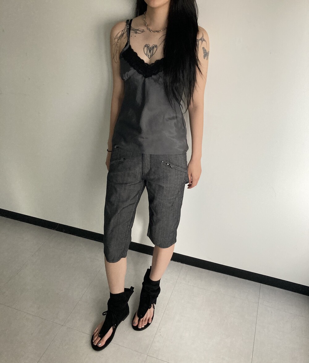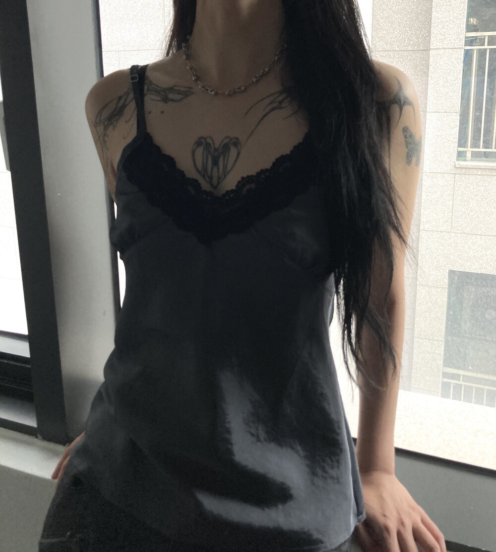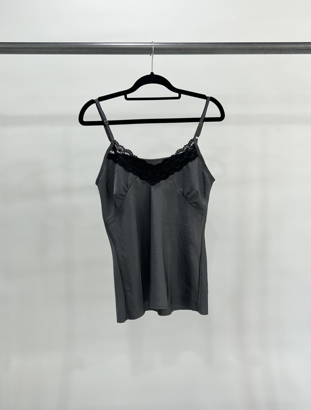 - 광택감있는 새틴소재와 상반되는 퍼석한 레이스 디테일.