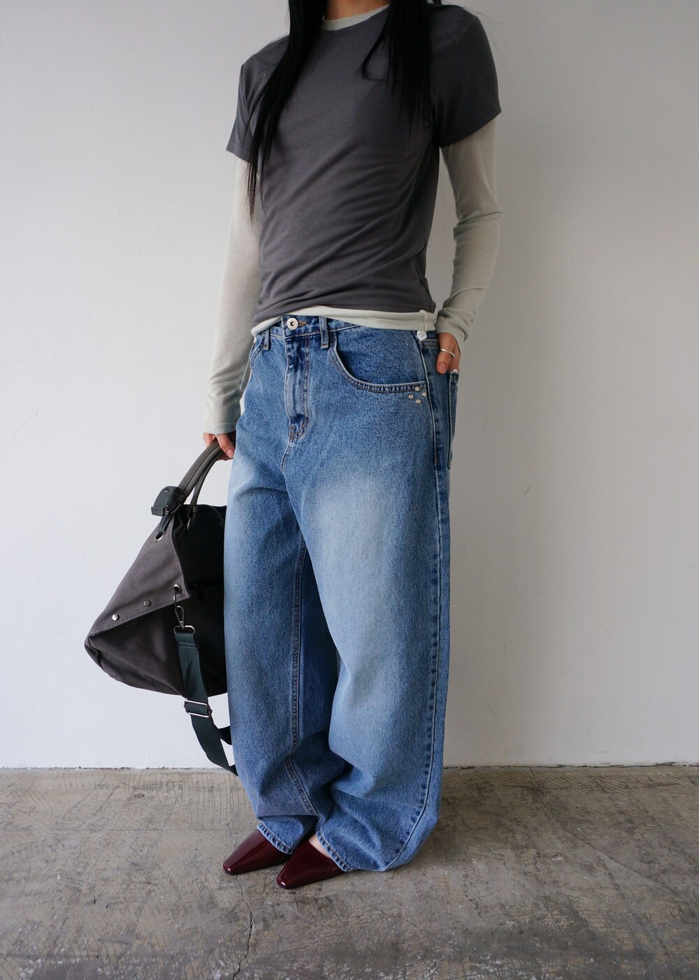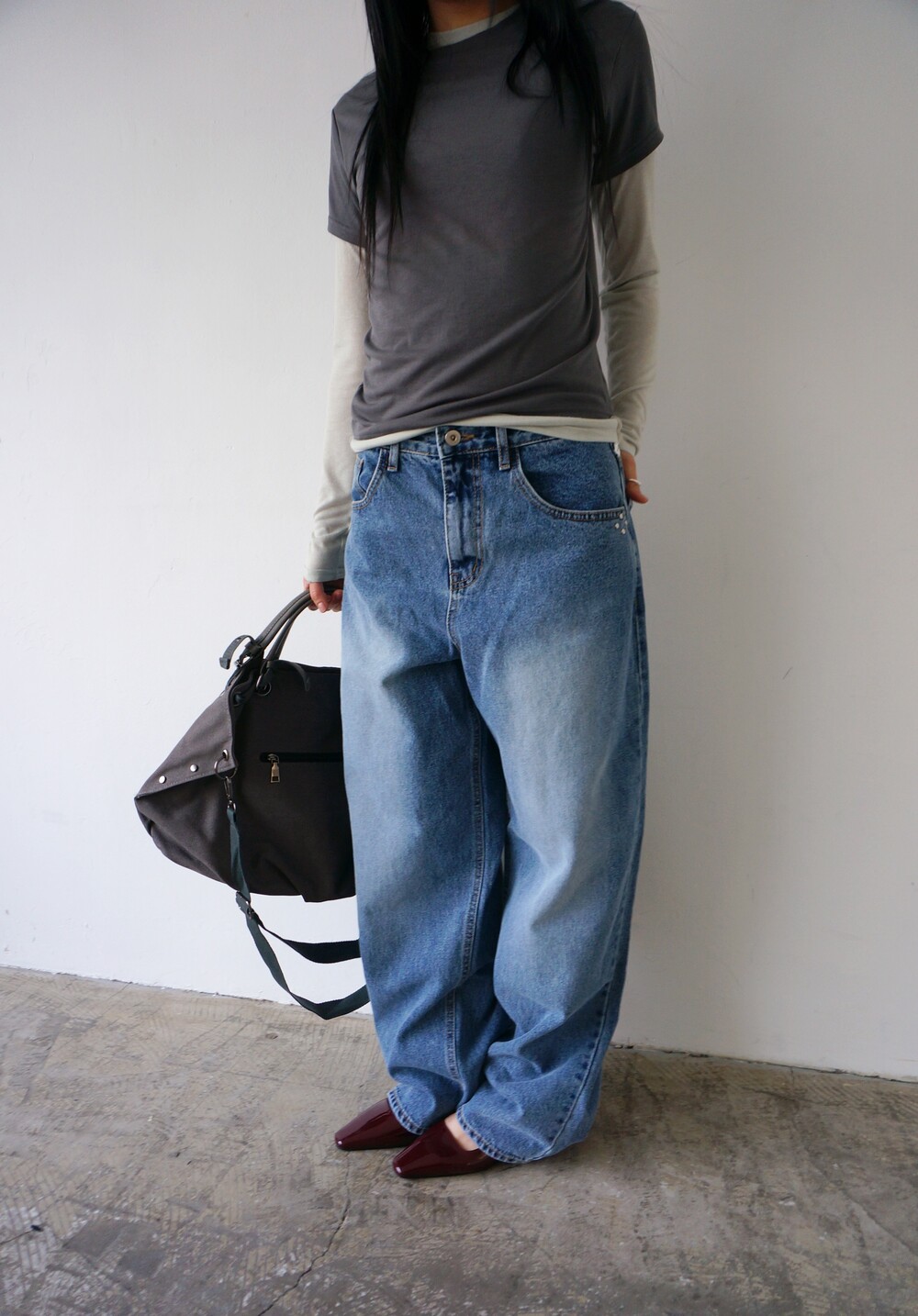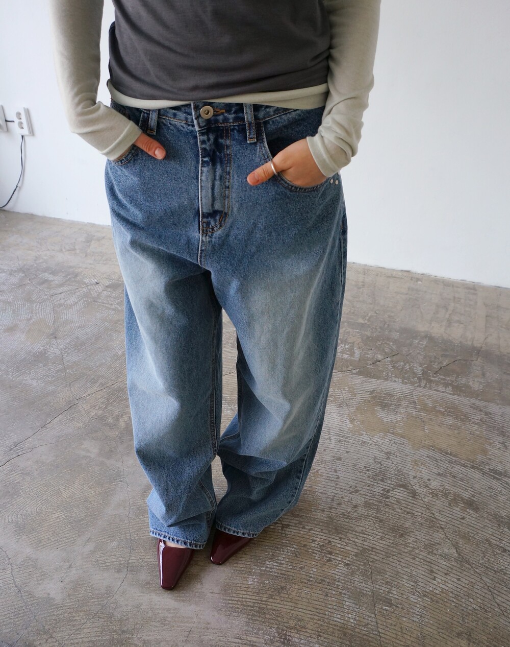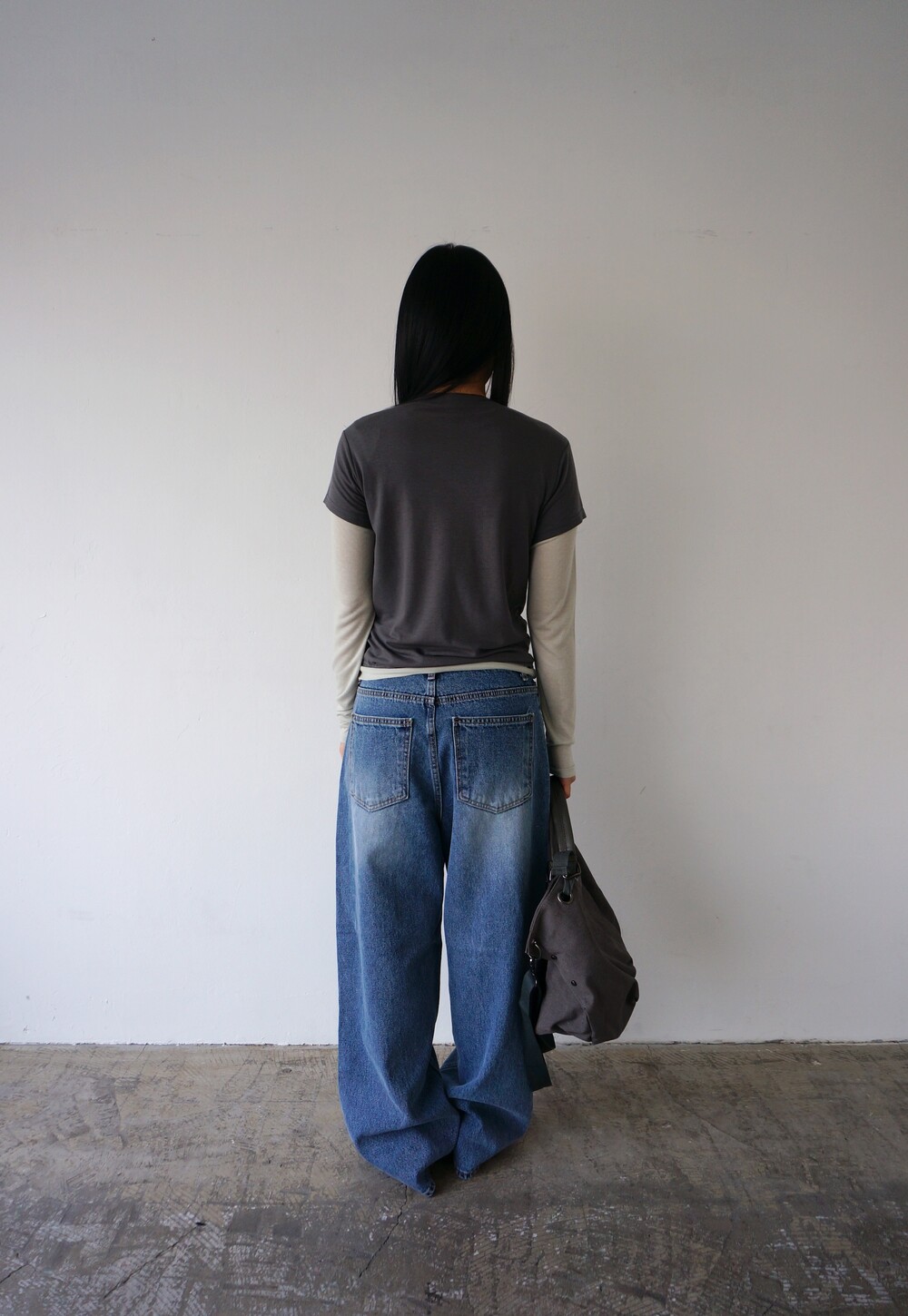 - 긴 밑위 길이 그대로 보이게 골반에 걸쳐입는 매력.