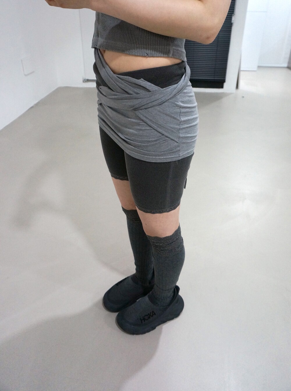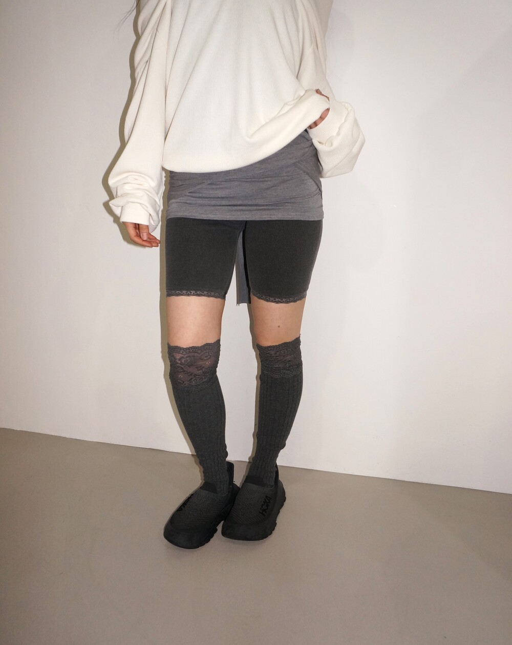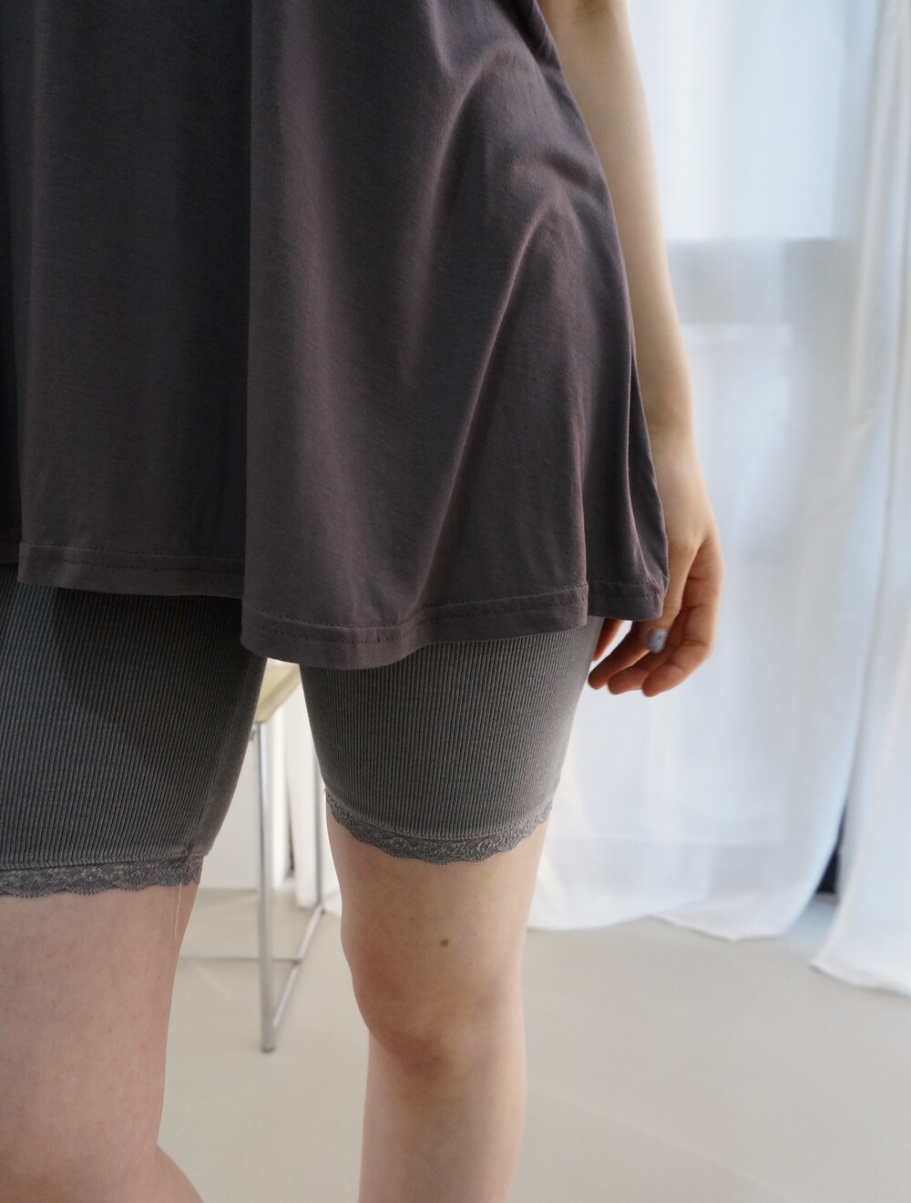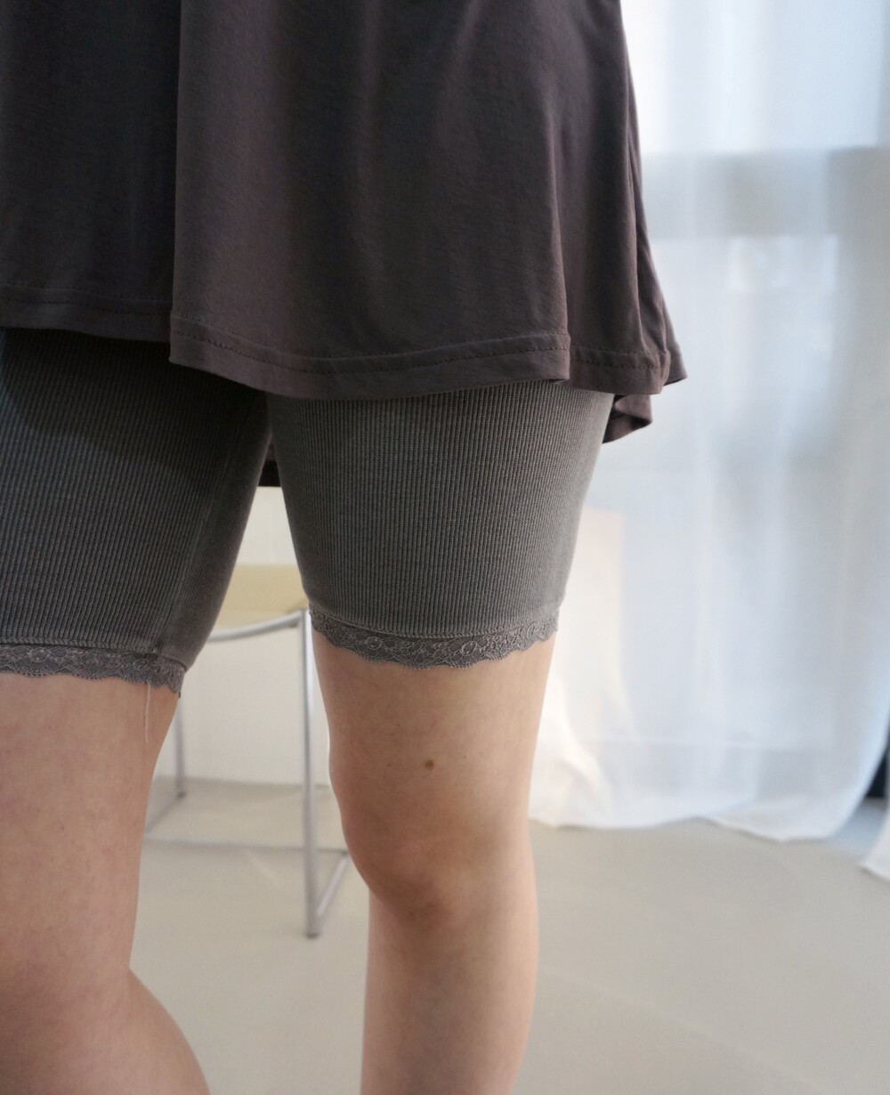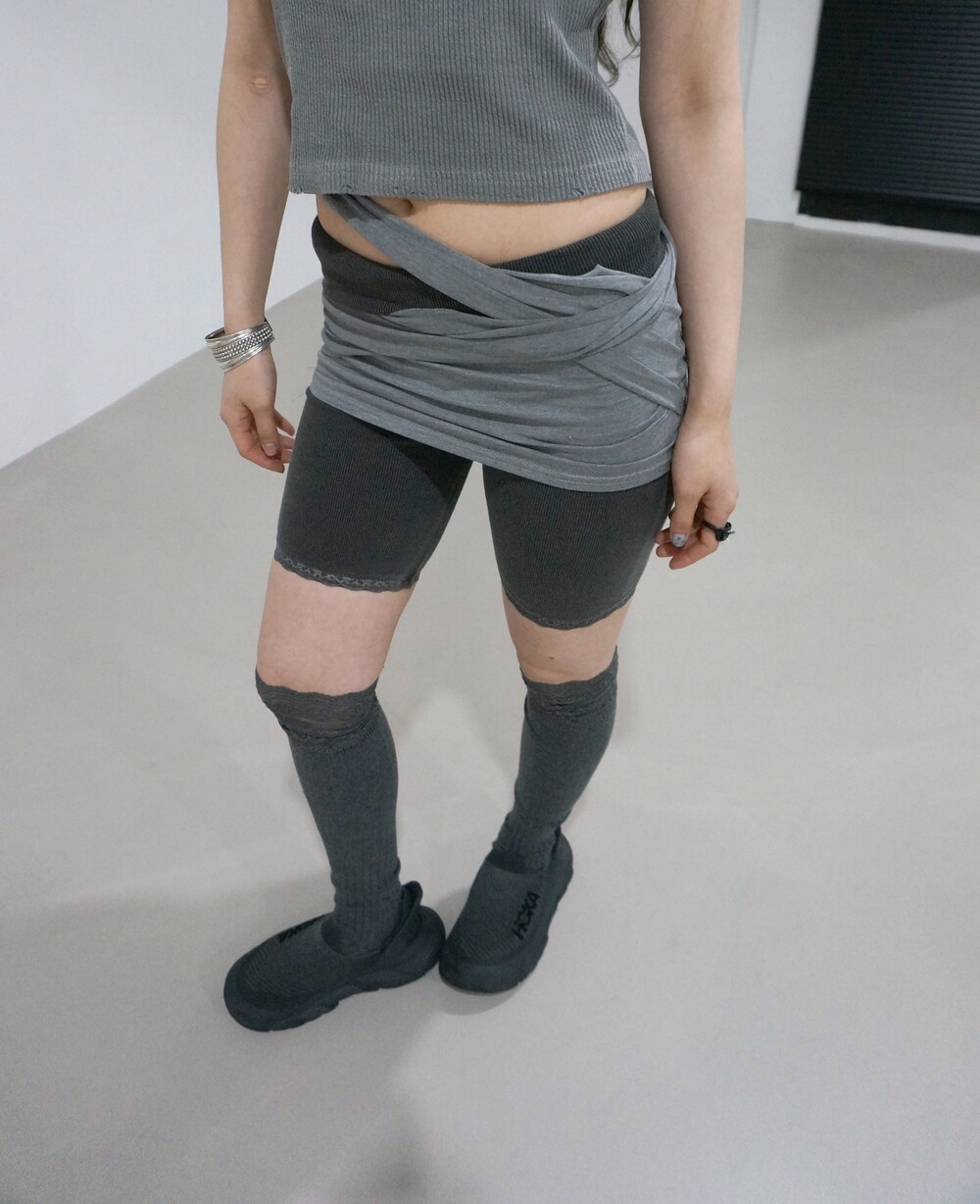 - 밑단 레이스 디테일의 골지레깅스.