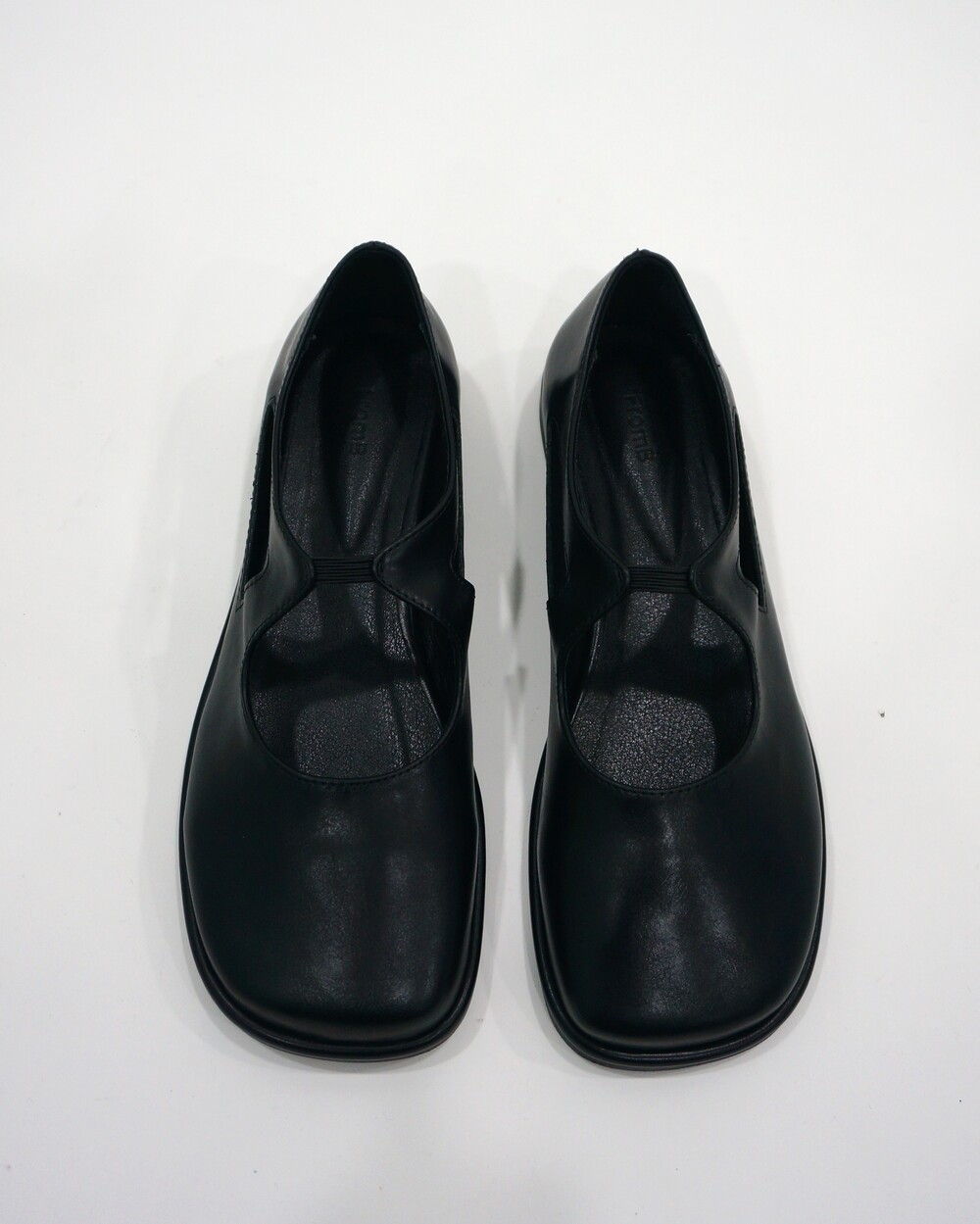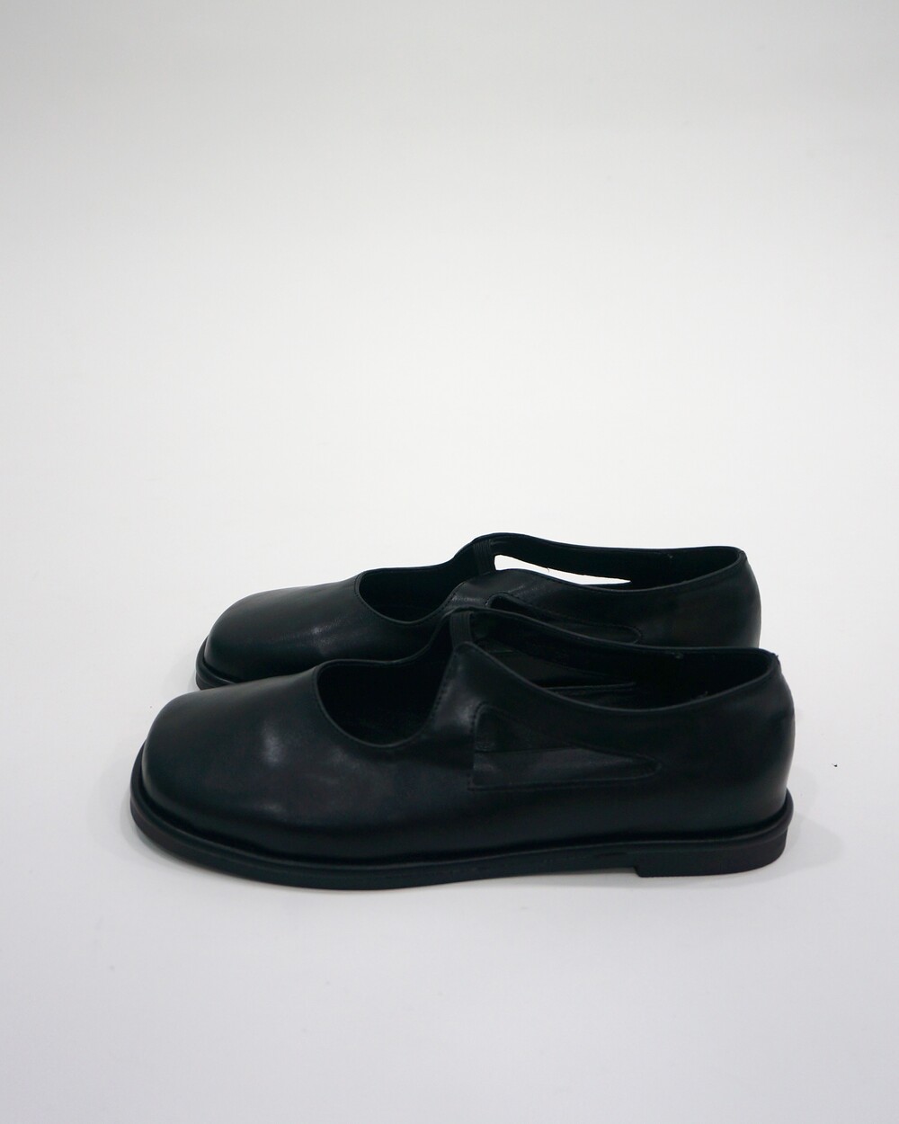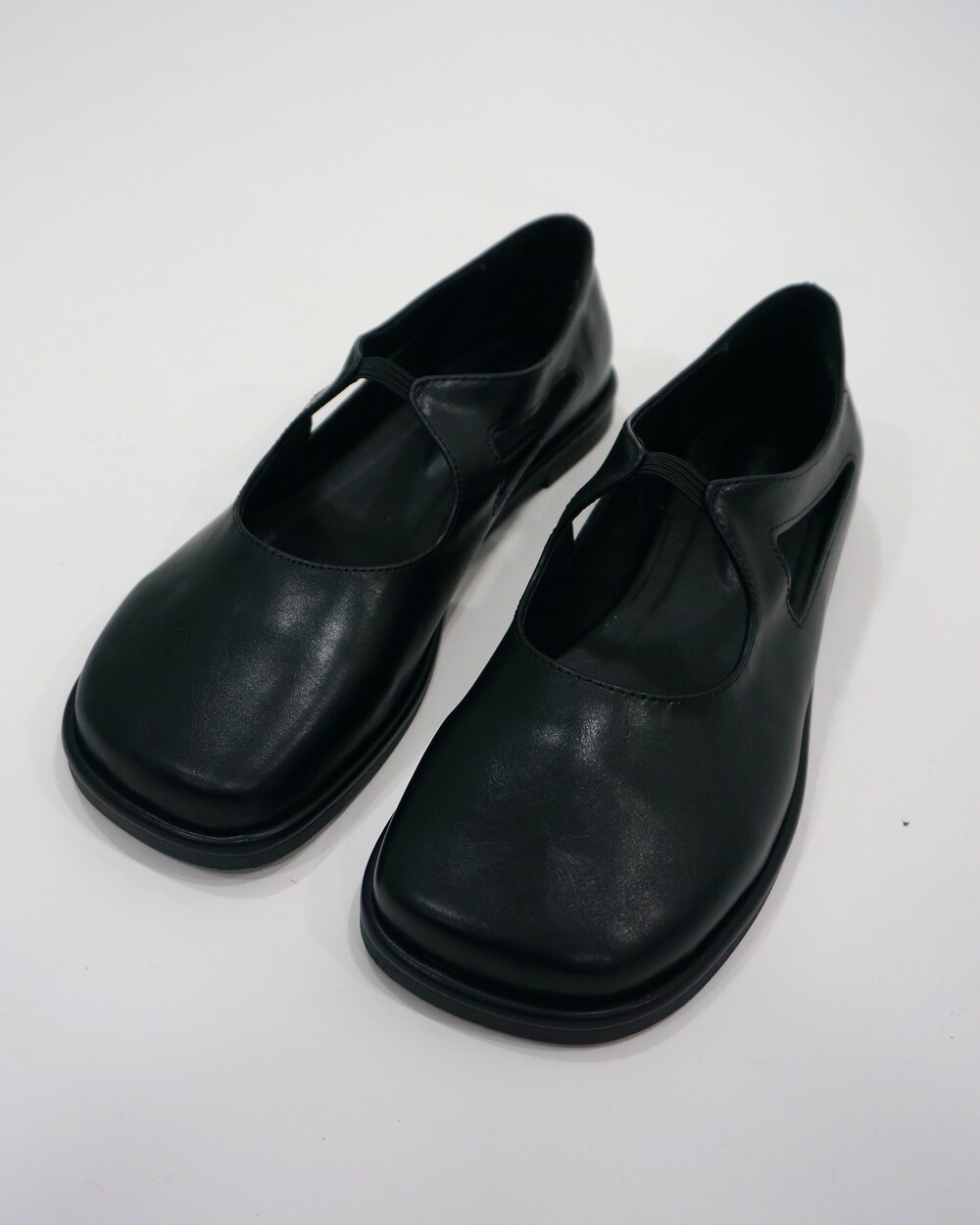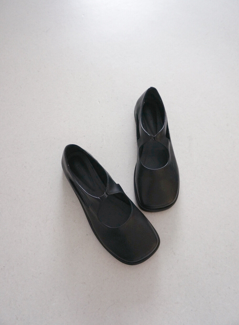 - 광택감있는 레더 플랫슈즈.