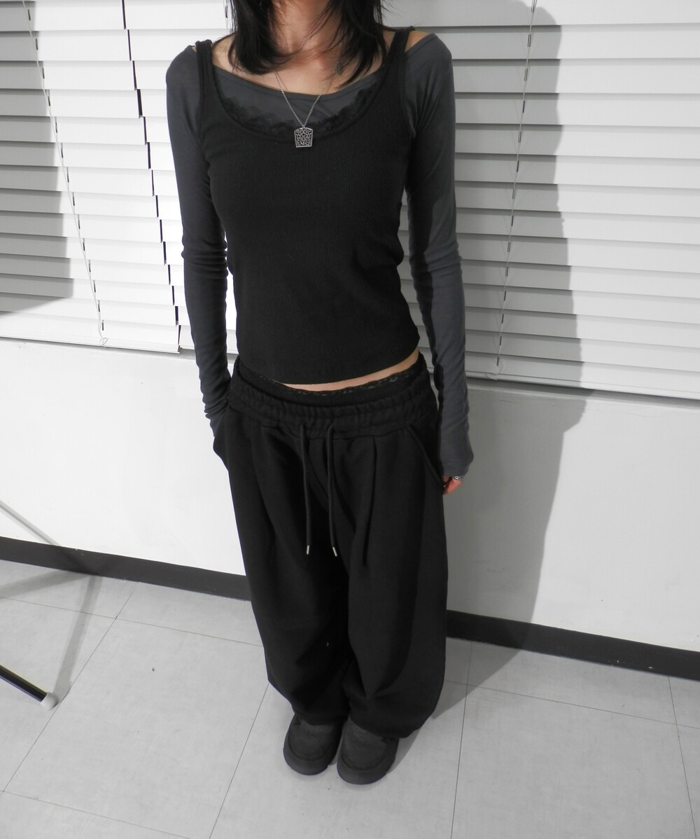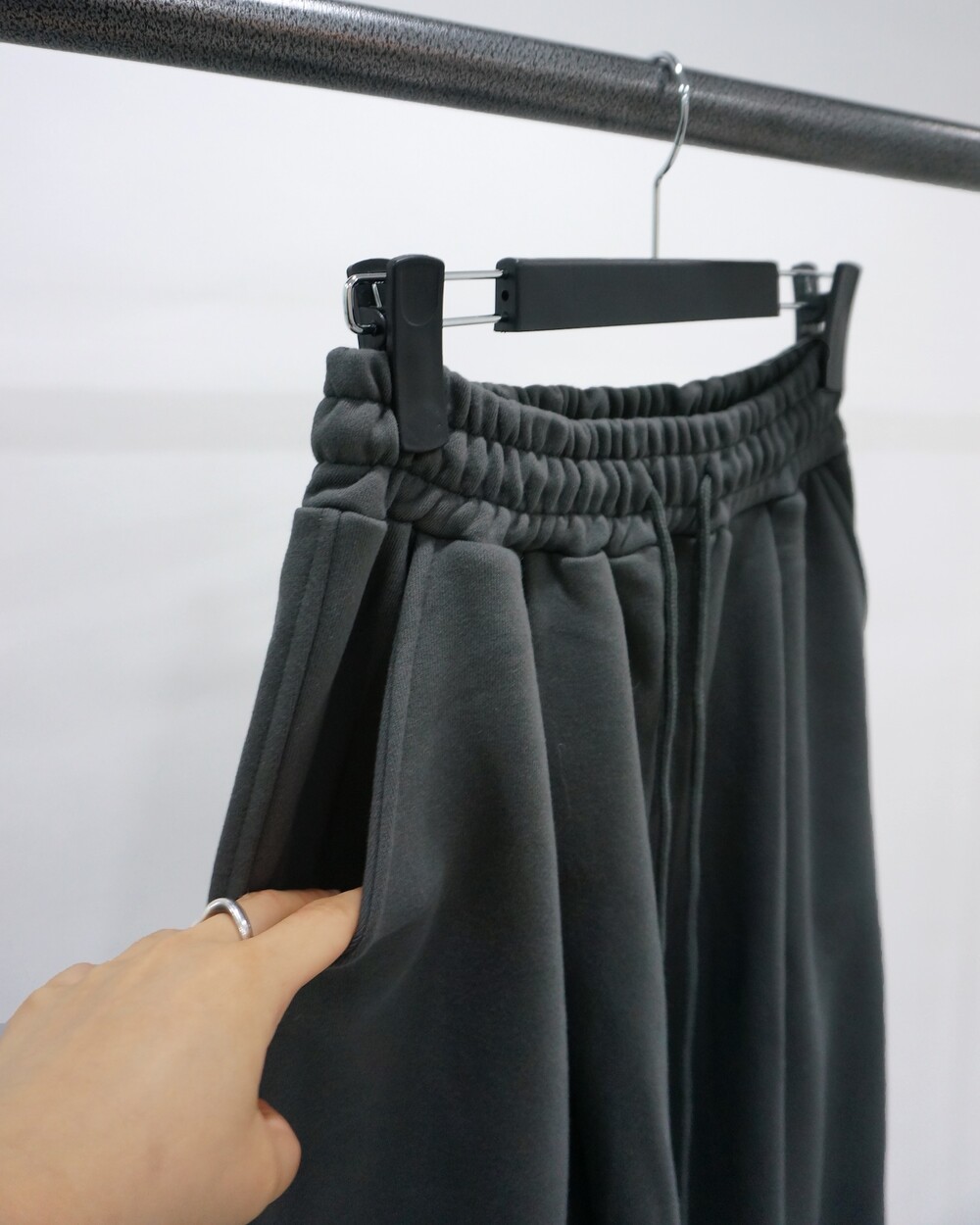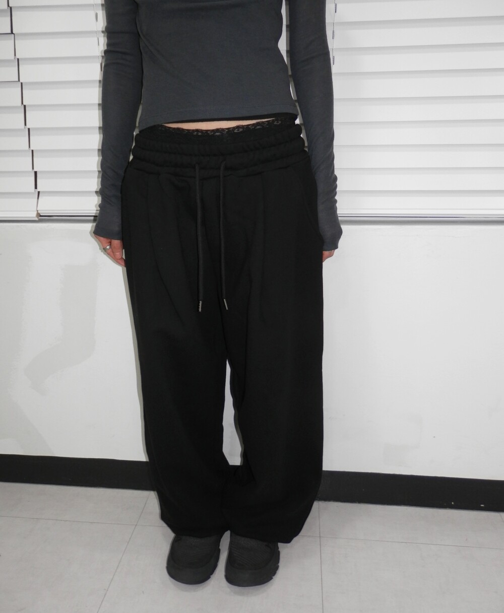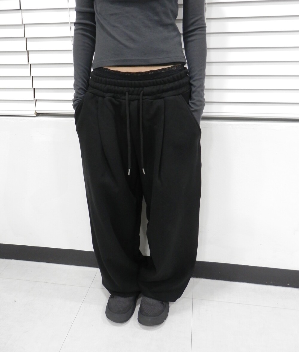 - 허리 핀턱 디테일의 조거팬츠.