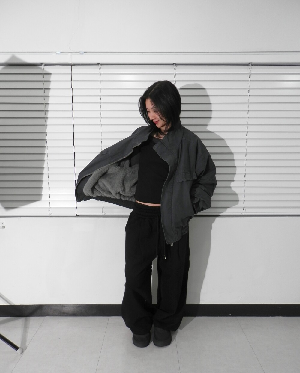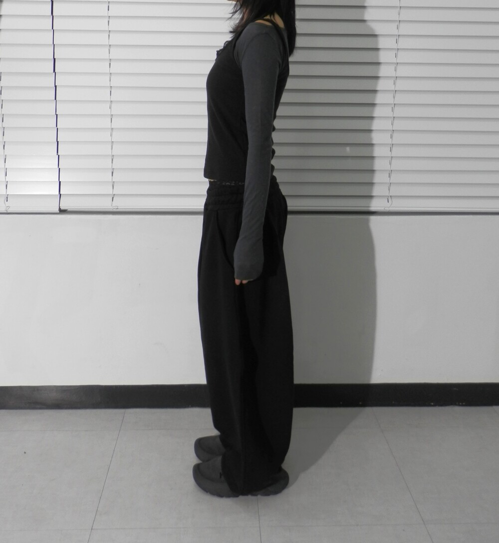 - 허리핀턱과 밑단밴딩으로 너무 오버스럽지 않게 흐트러짐 없는 핏.