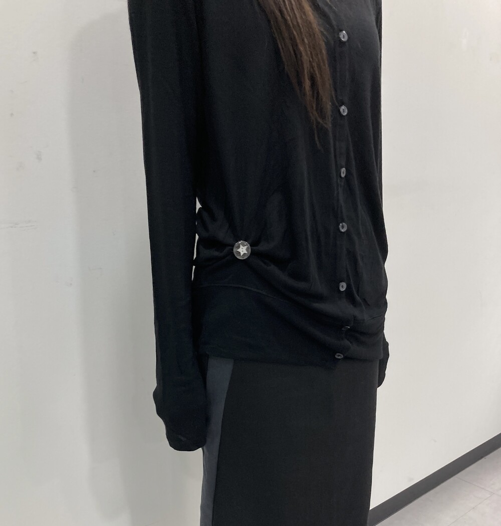 - 밑단 디테일로 골반에 걸치면 주름지듯 흘러내리는 실루엣.