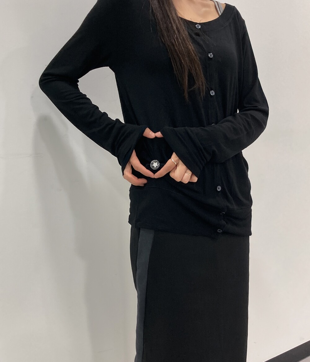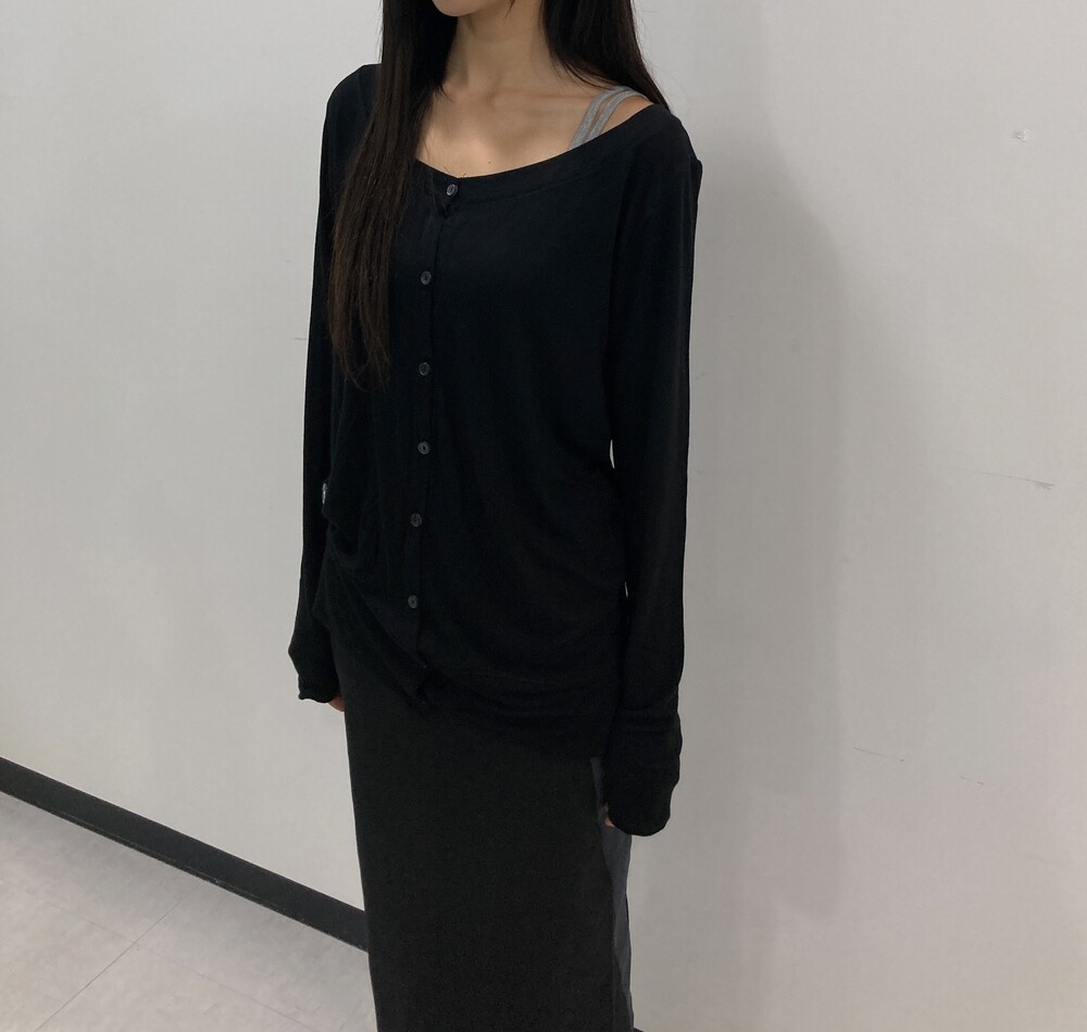 - 깊은 유넥라인으로 레이어드하기 좋은 가디건.